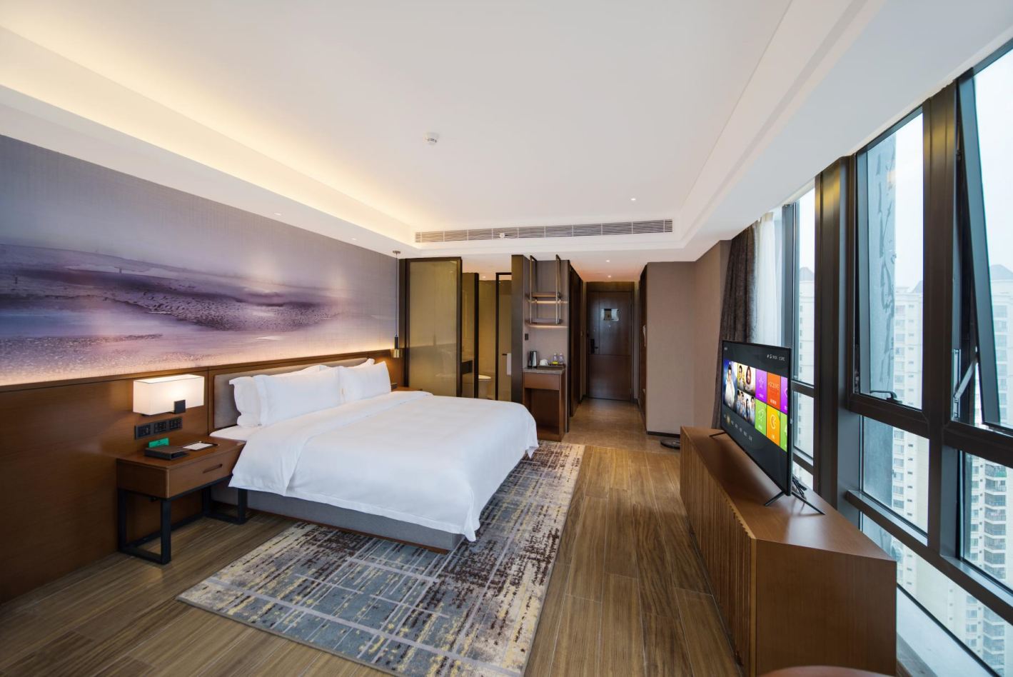 豪华大床房(mini小冰箱+全景落地窗+浴缸+星级床品)