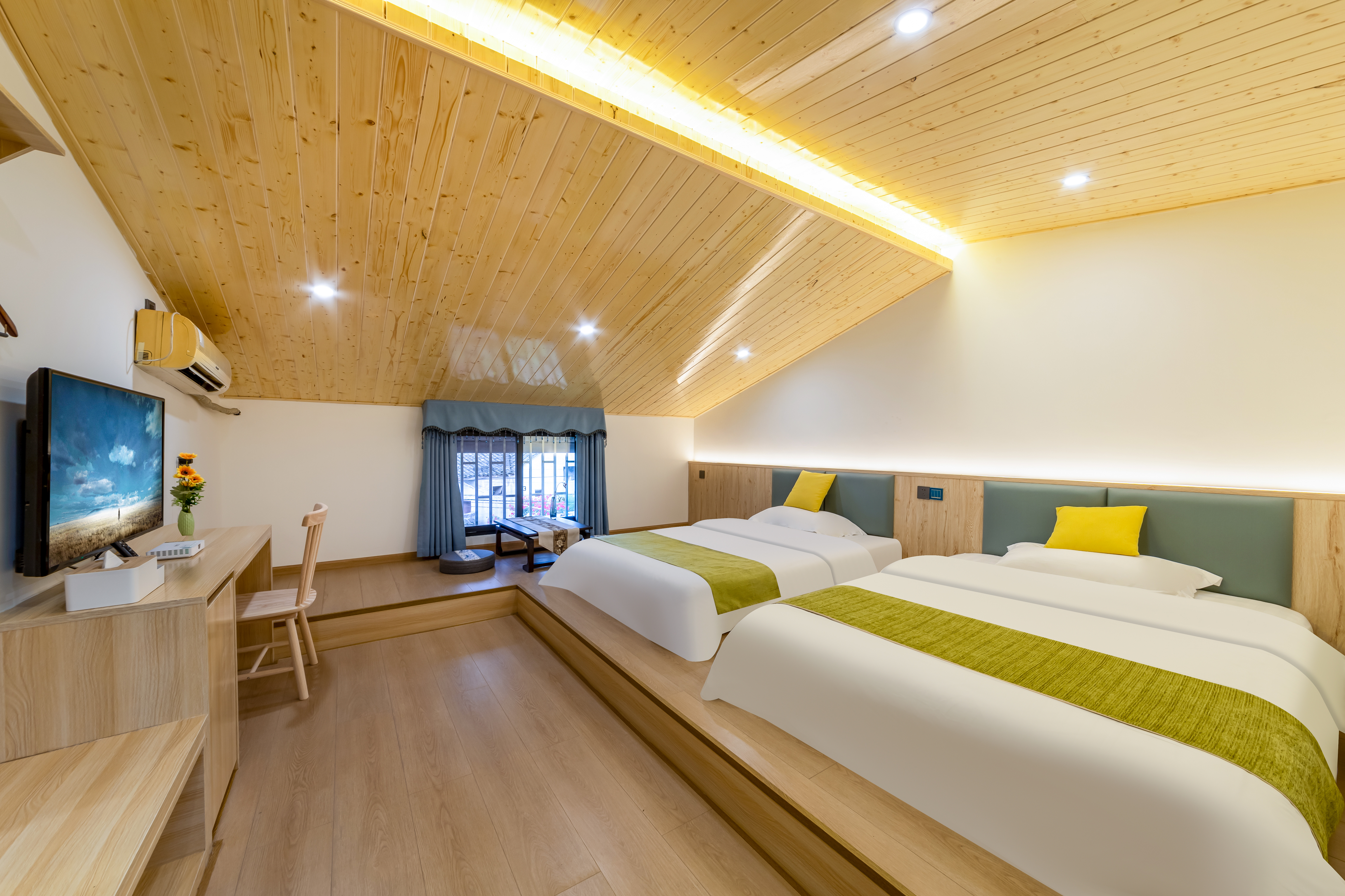 雅静阁楼榻榻米双床房【超安静+特色斜顶+乳胶床垫】