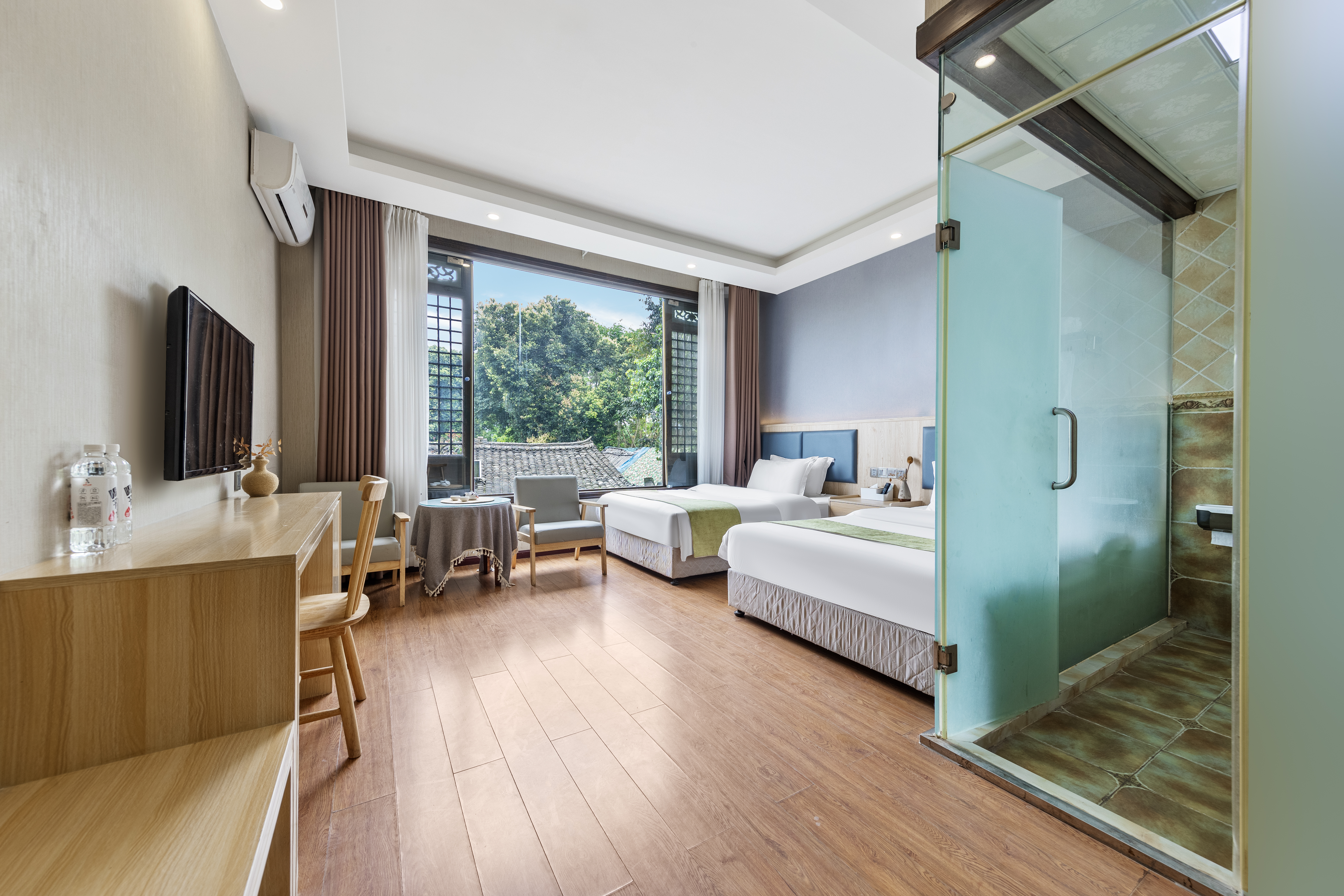 川西民居阳光双床房【乳胶床垫+180o落地窗】