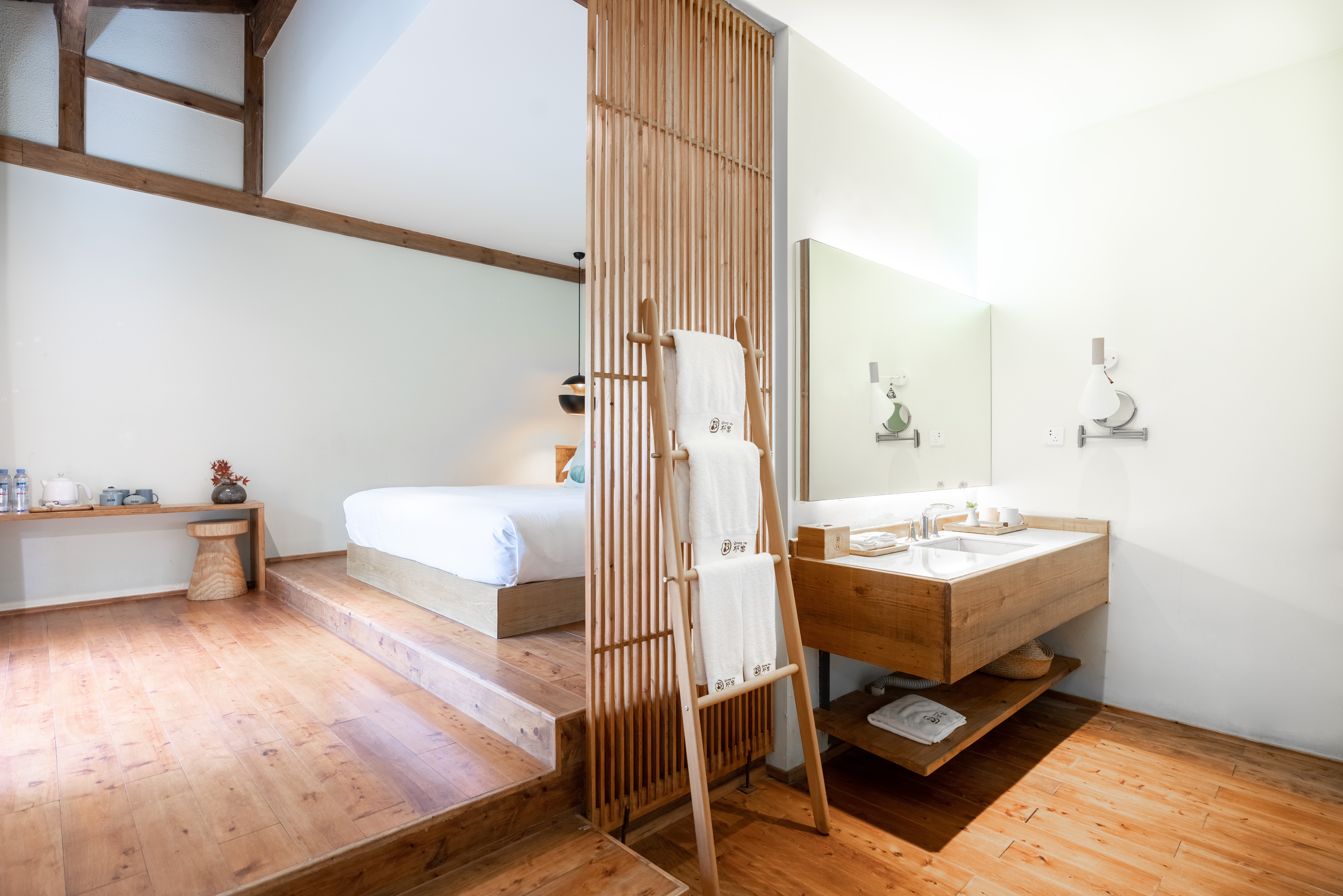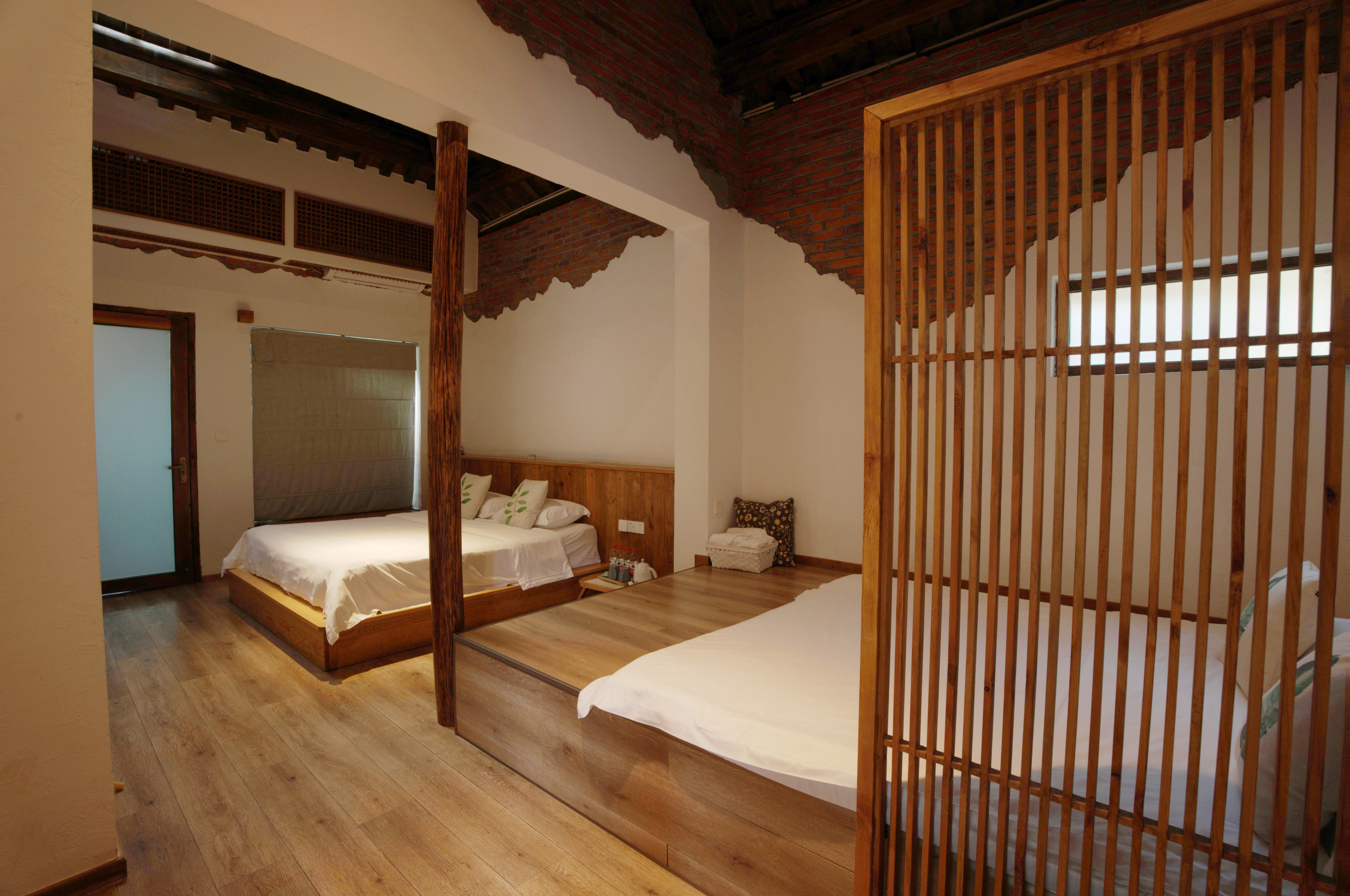 岸上·榻榻米双床房丨闹中取静丨远离尘嚣丨温馨原木