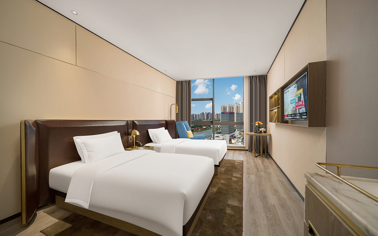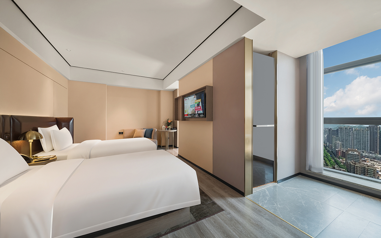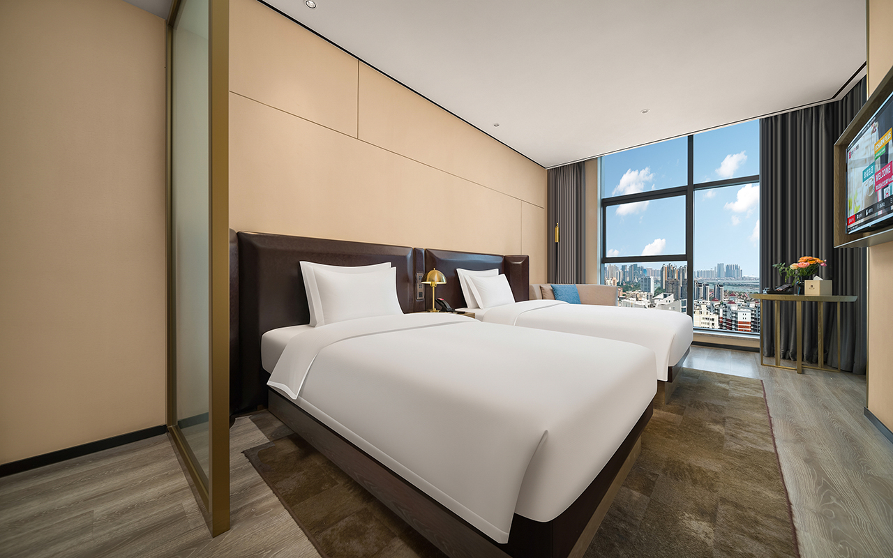 豪华城景双床房〖北欧风情+小冰箱+远山近景+全棉床品〗