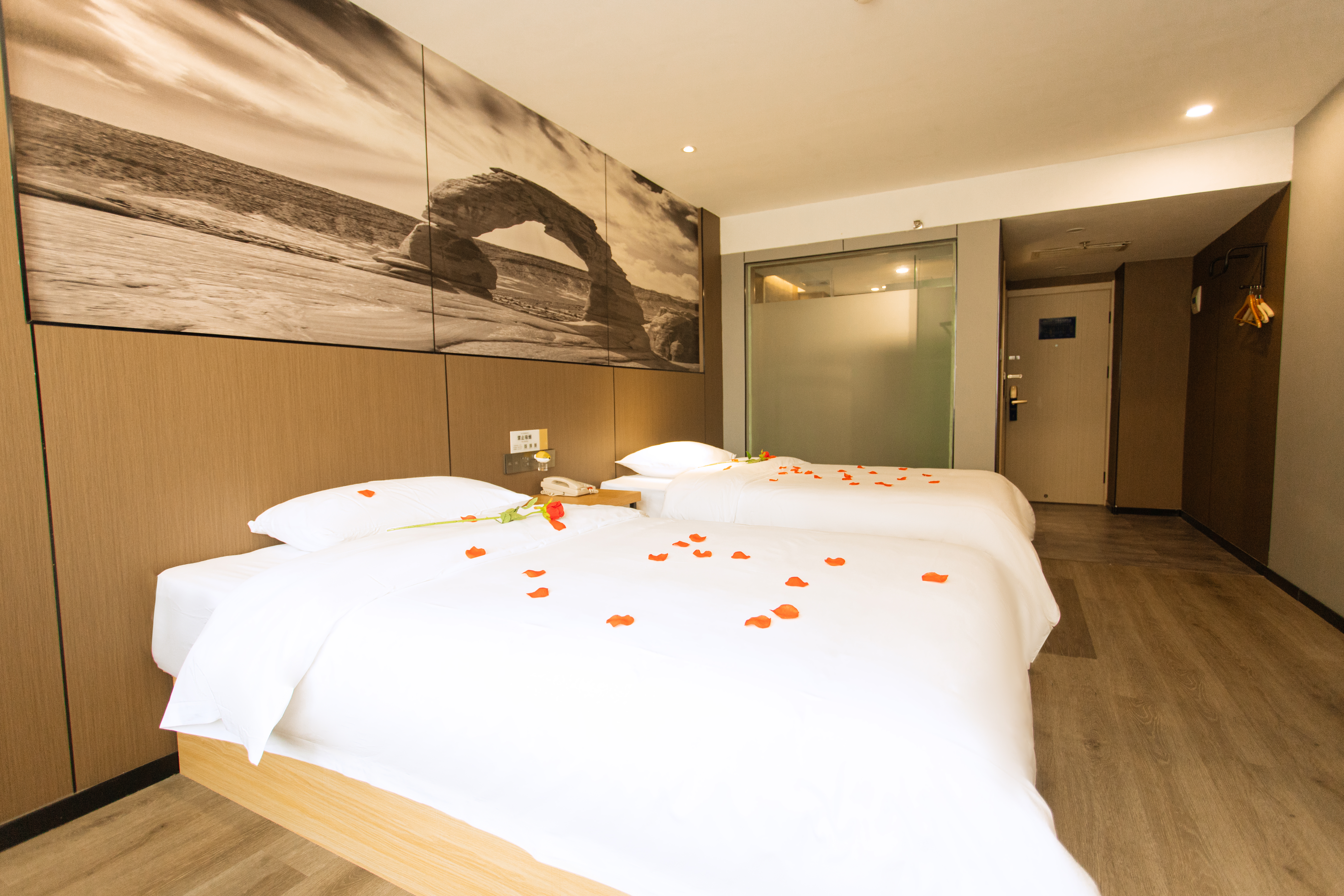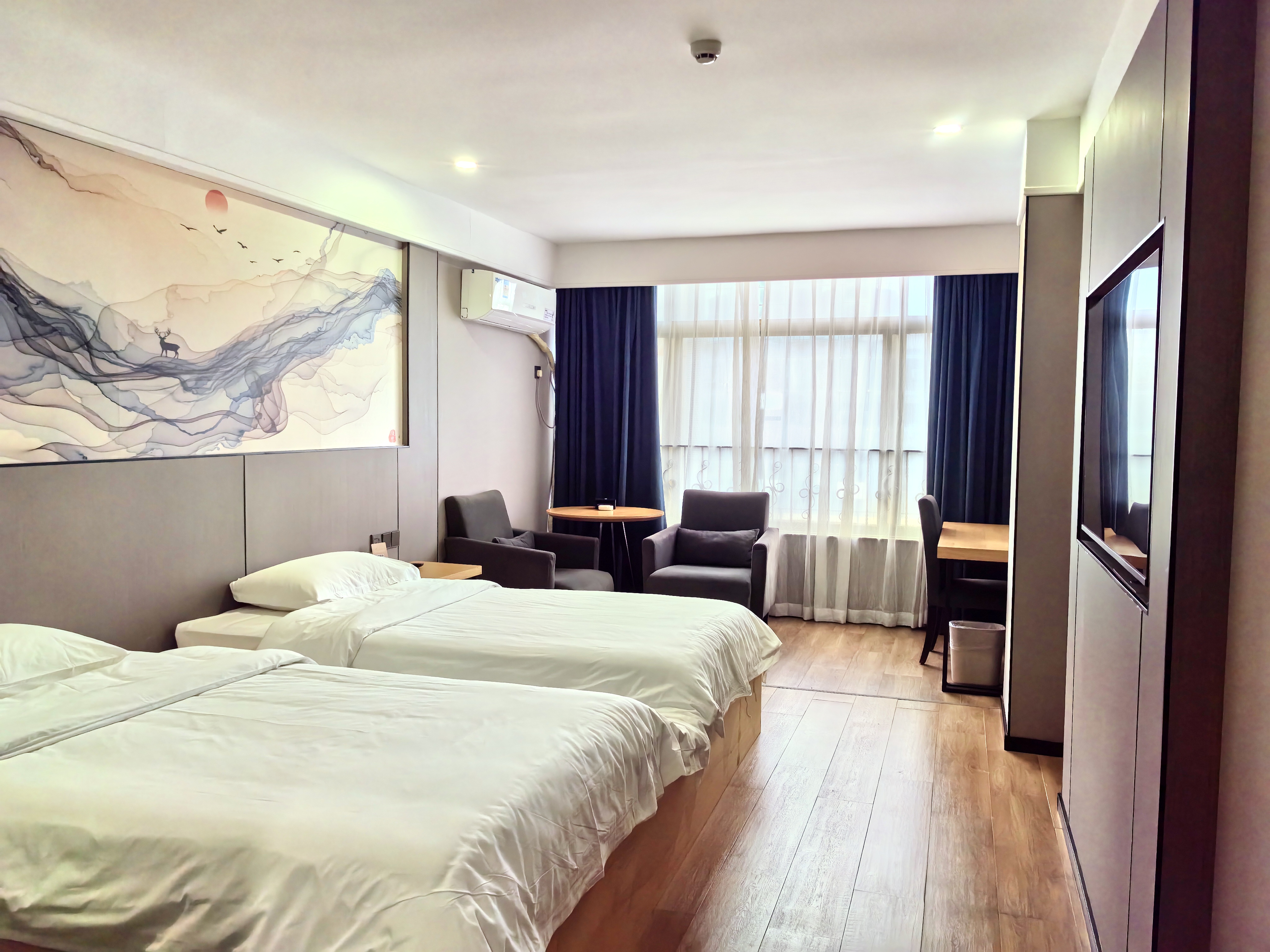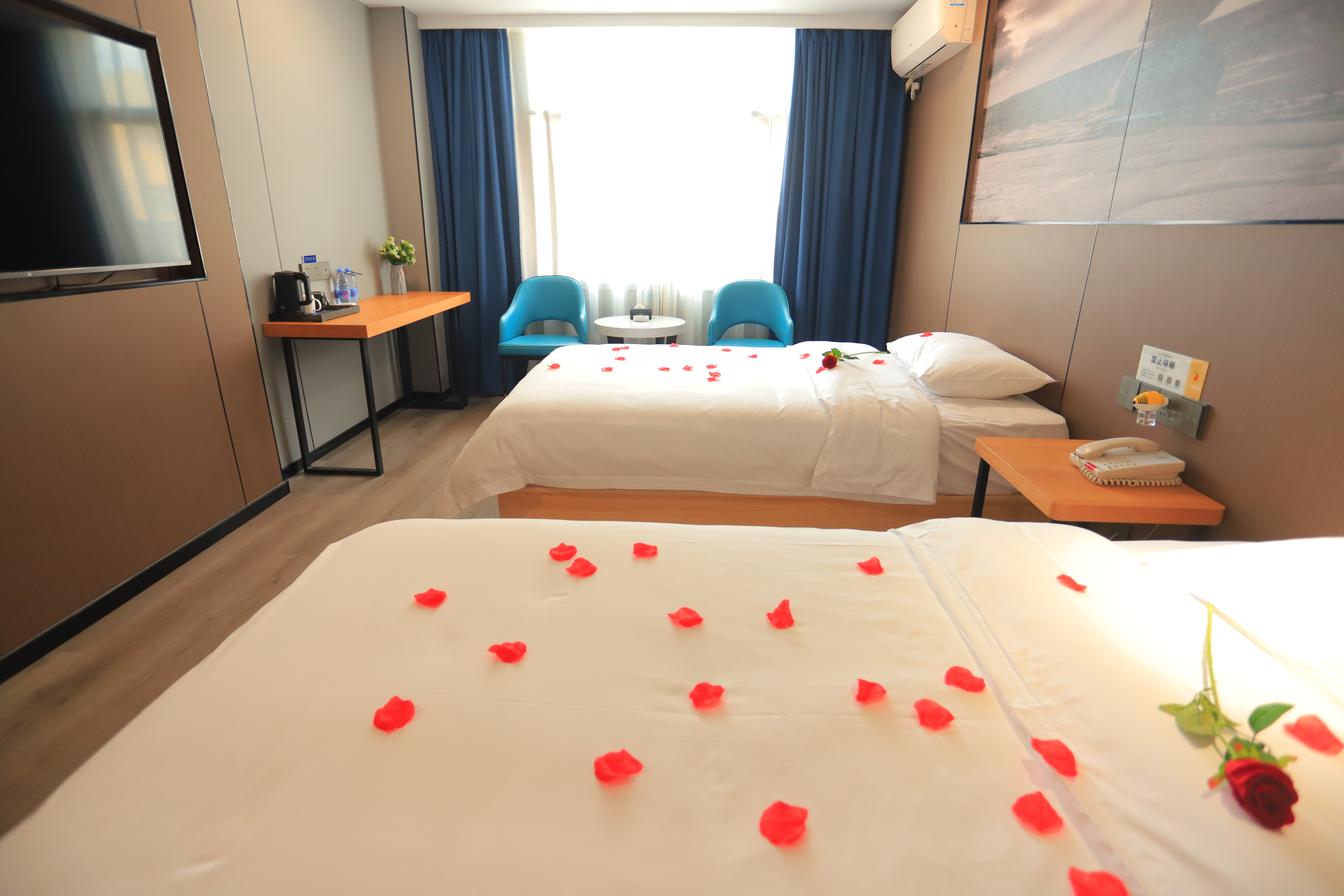 雲悦雙床房(55寸小米手機投屏大電視+商務書桌+兩瓶水)