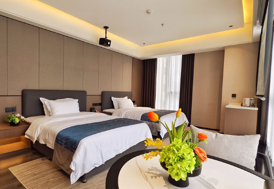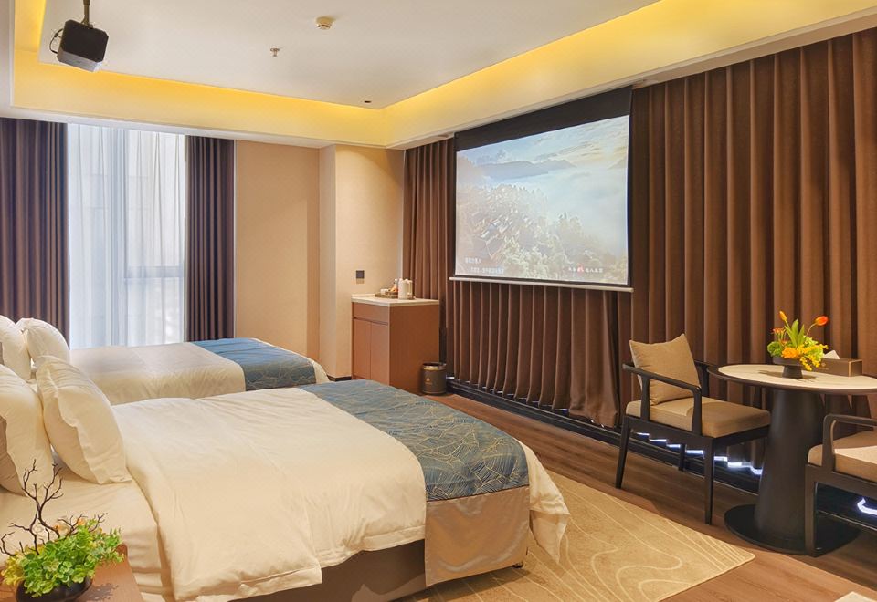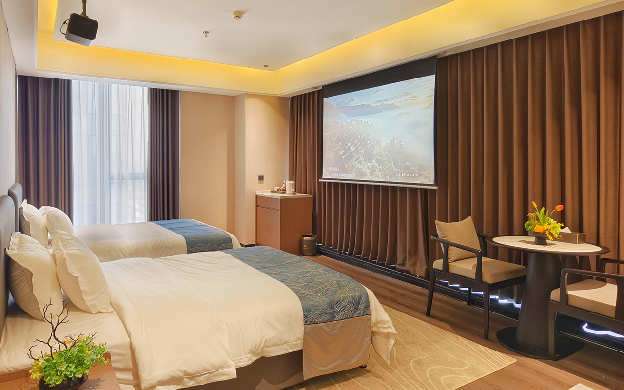 投影豪华双床房(日出观景落地窗+自助洗衣房)