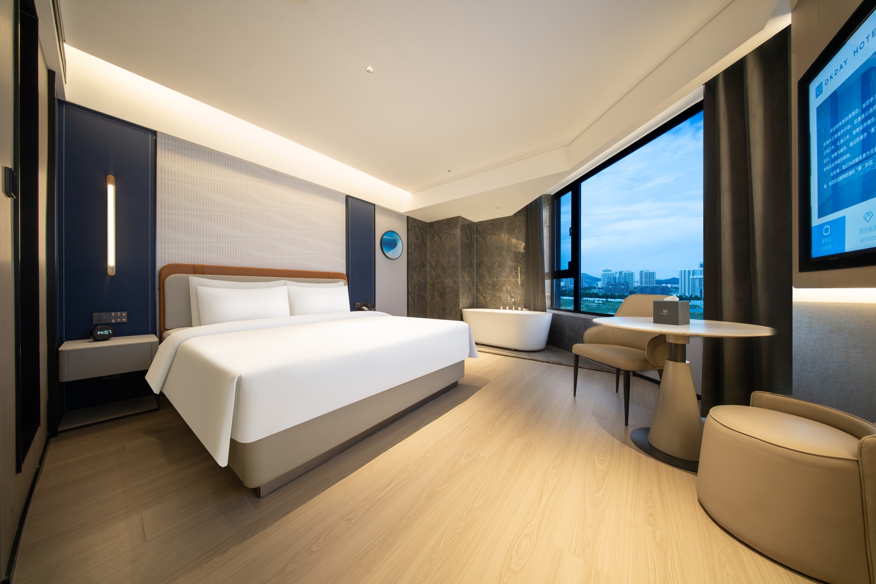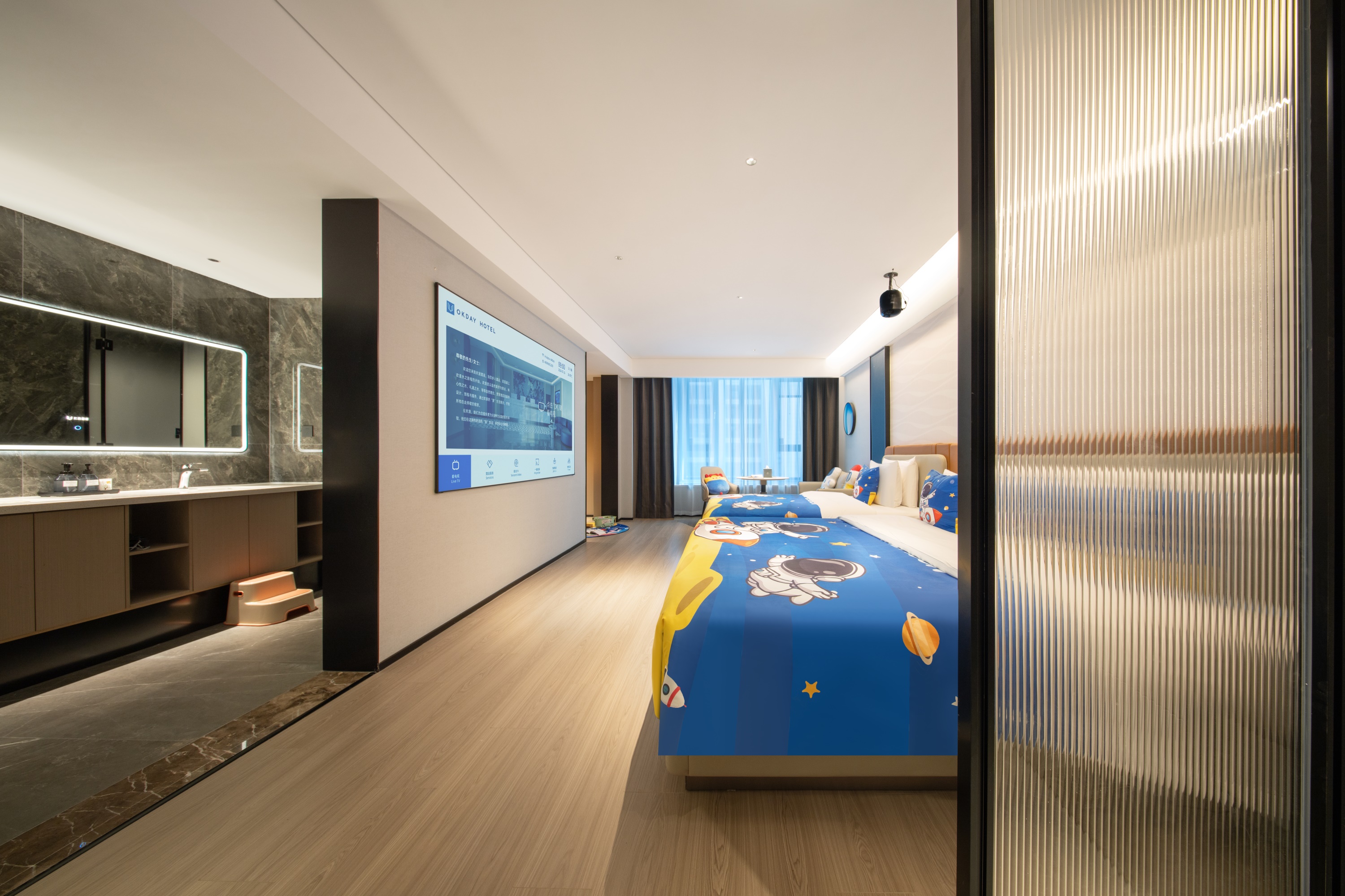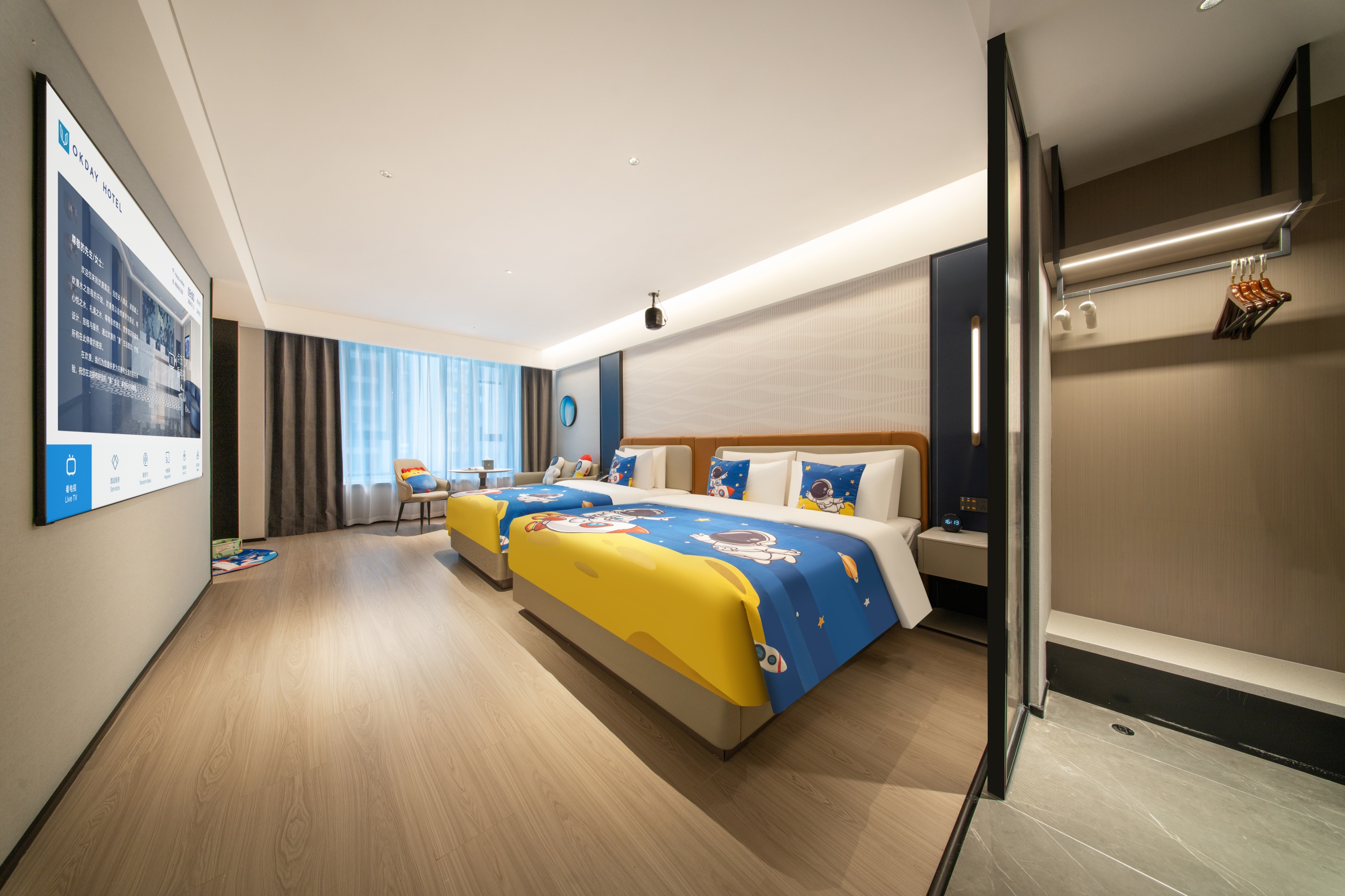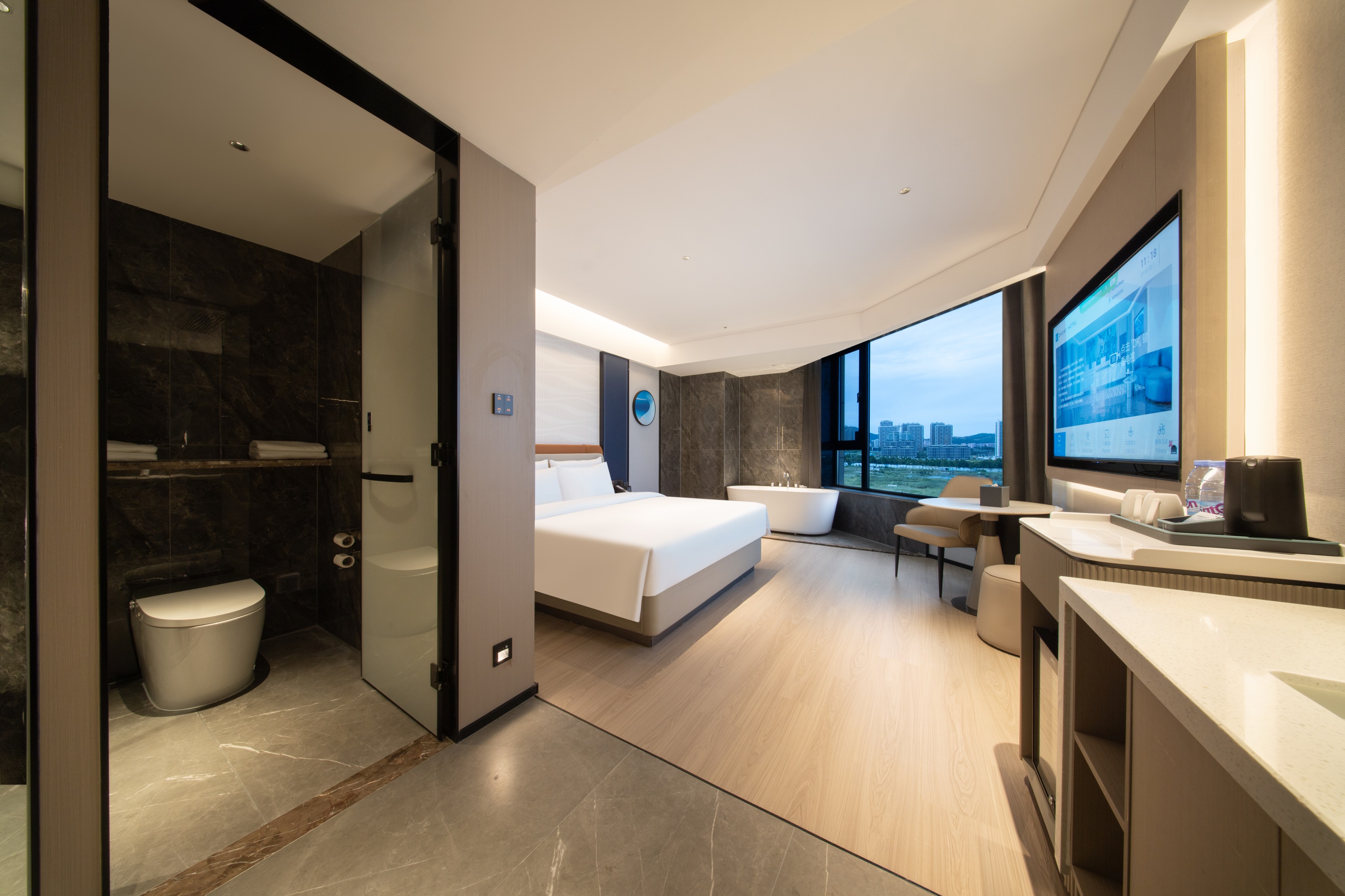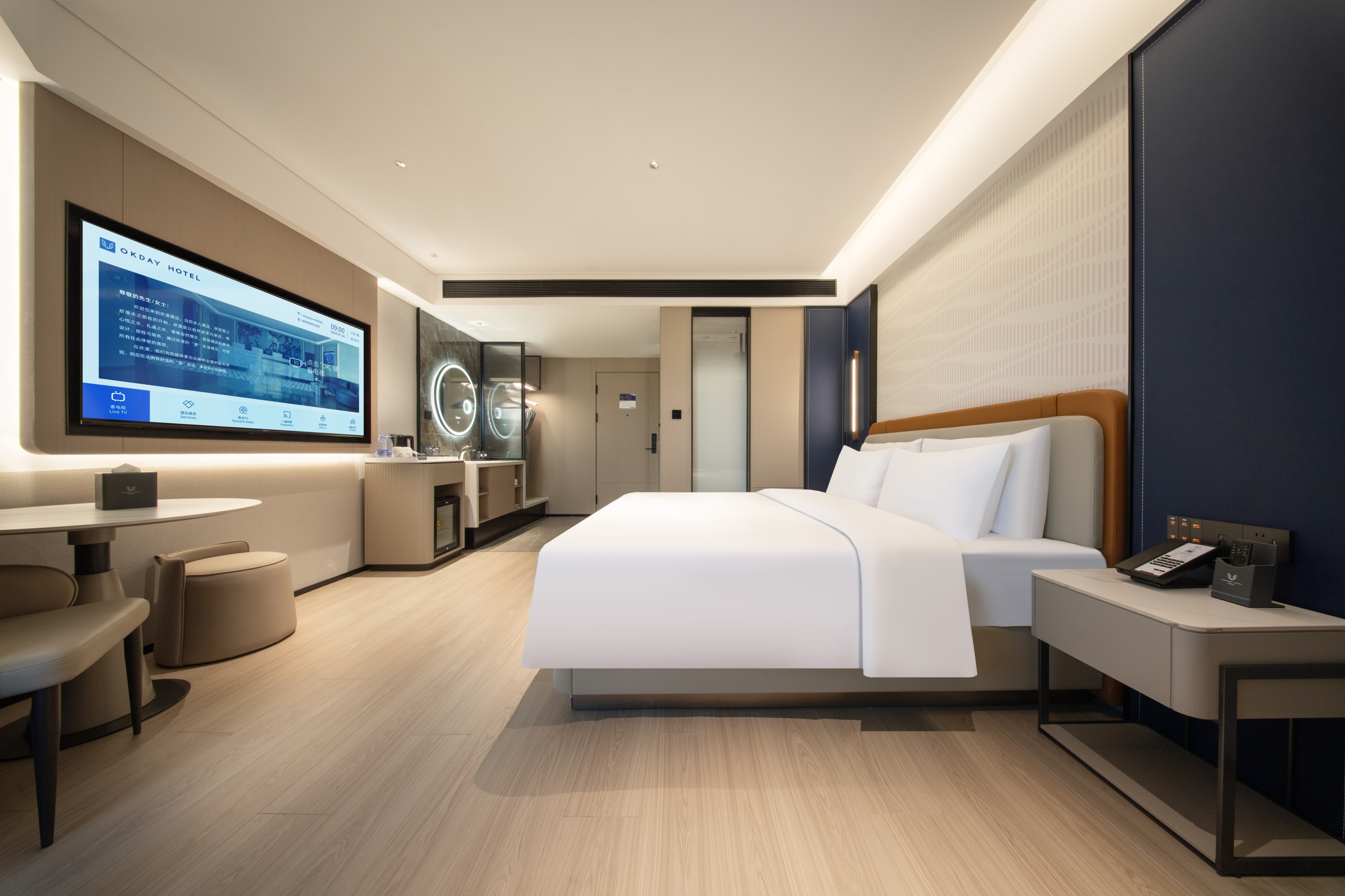 Deluxe Double Bed Room With Bath, Mini Fridge, 65-Inch Tv, Xiaodu Smart Control, Smart Toilet