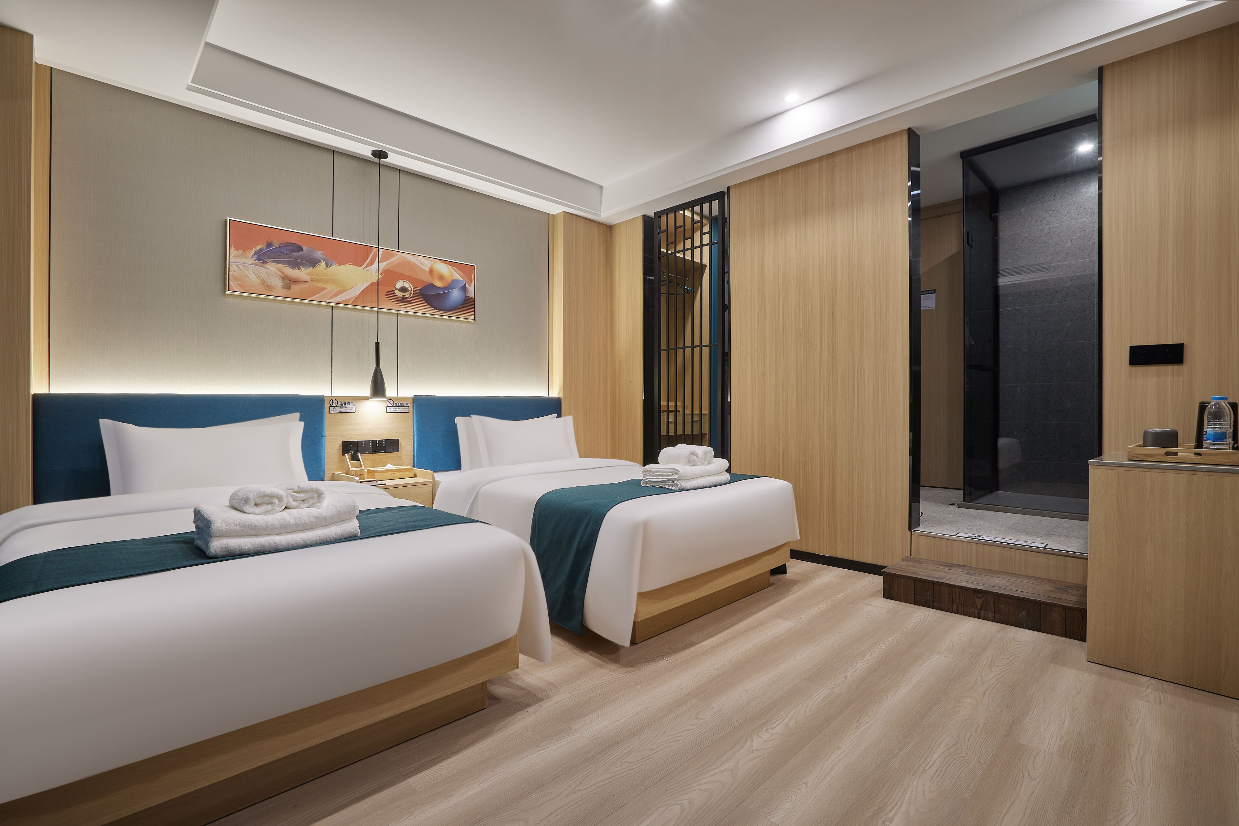 原木丨舒适双床房|新中式|乾湿分离