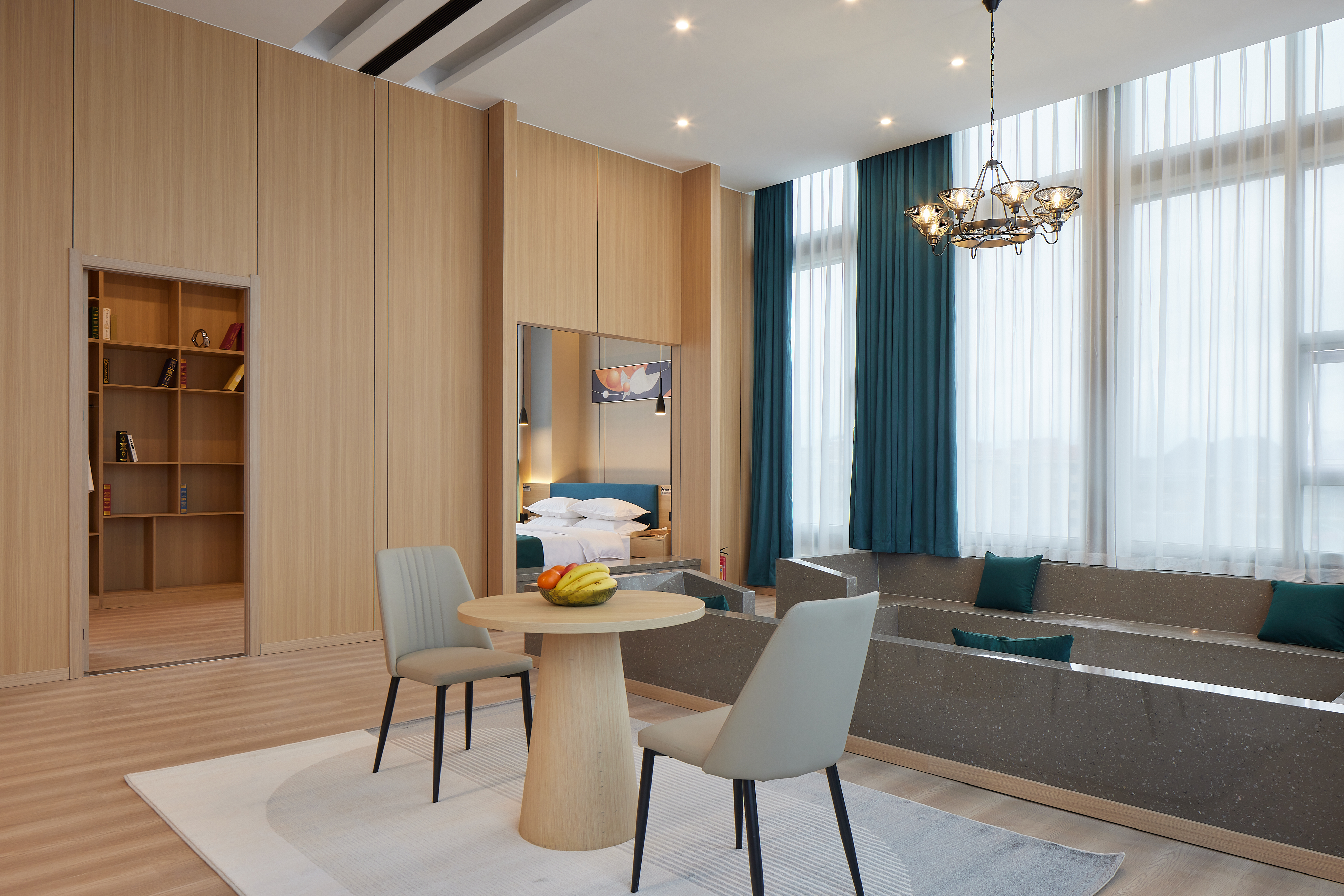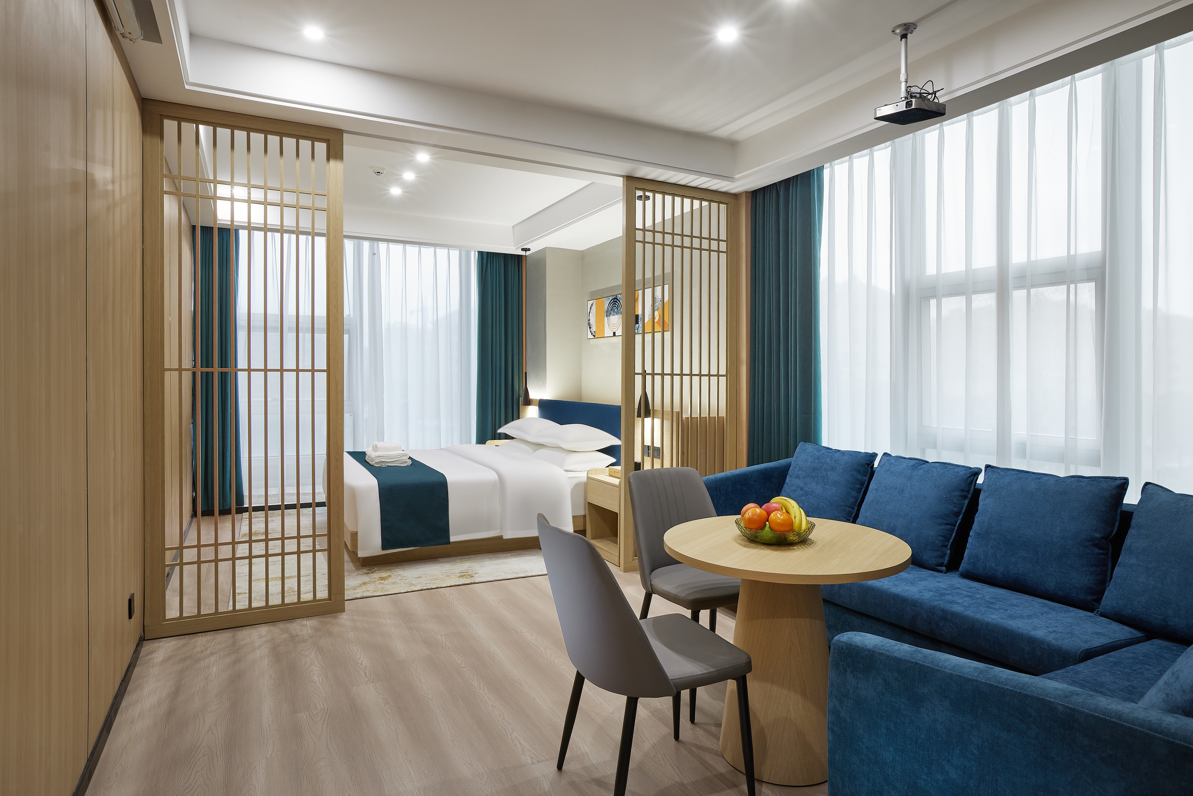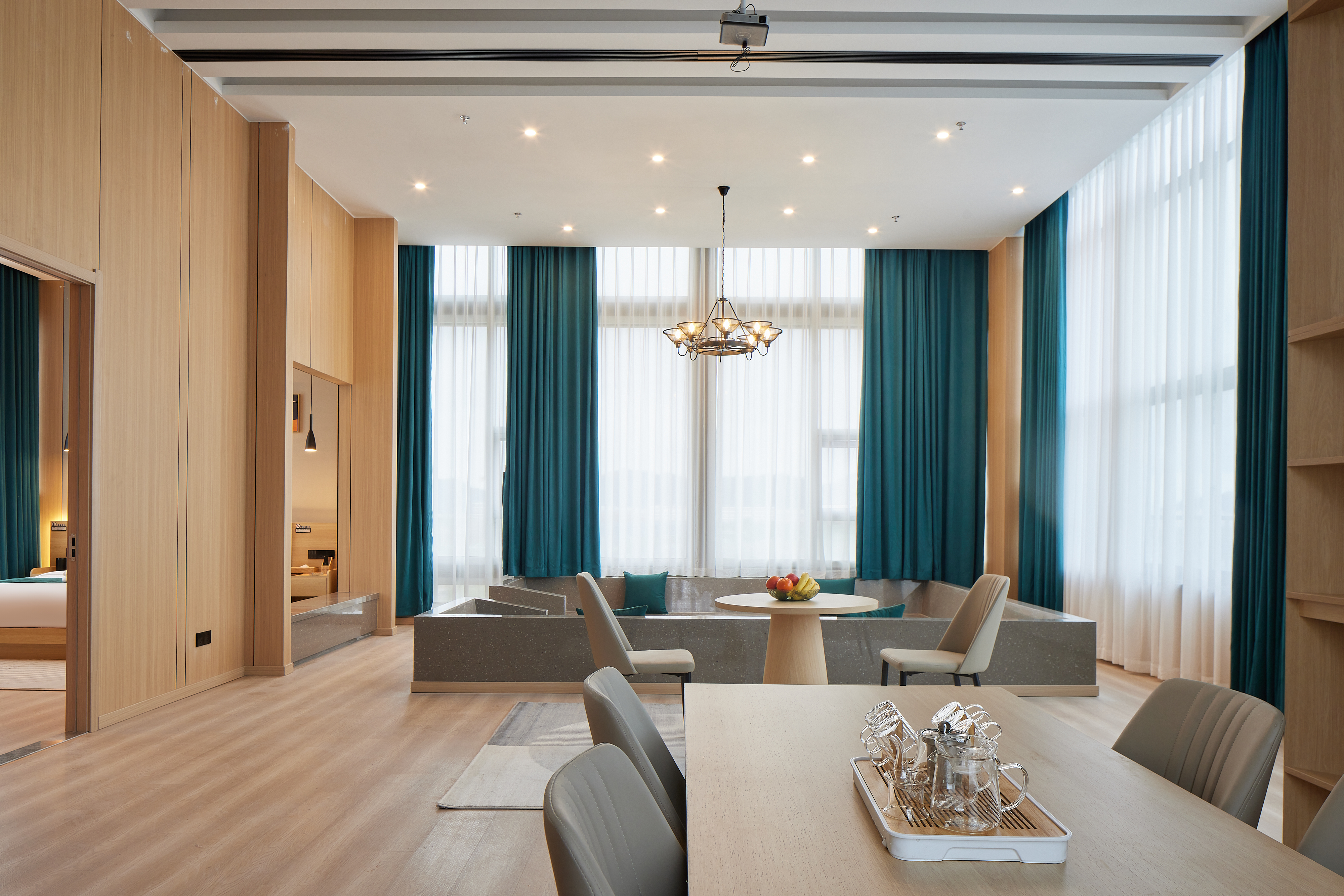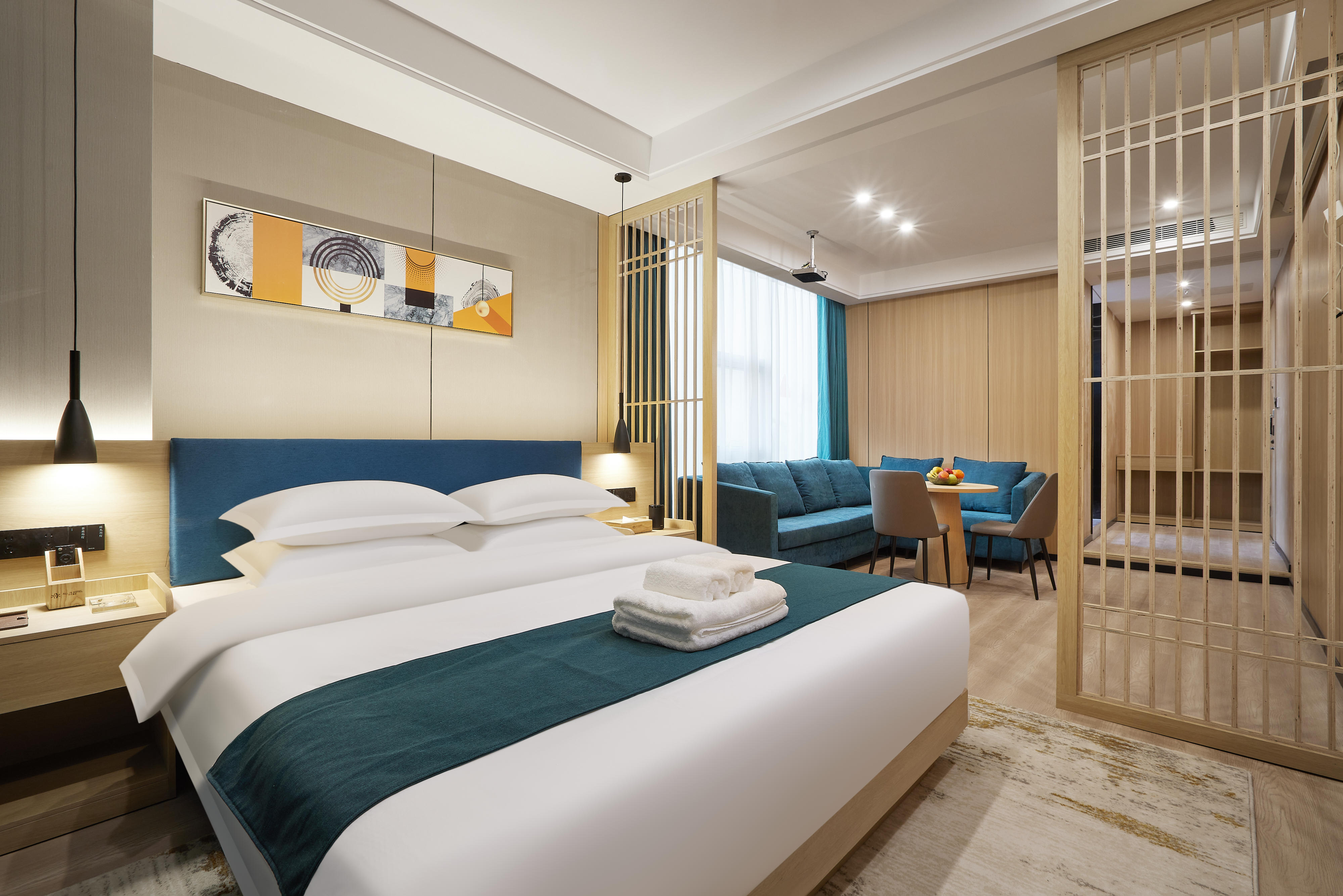逸境丨落地全景茶韵双空间大床房|会客厅|投影仪