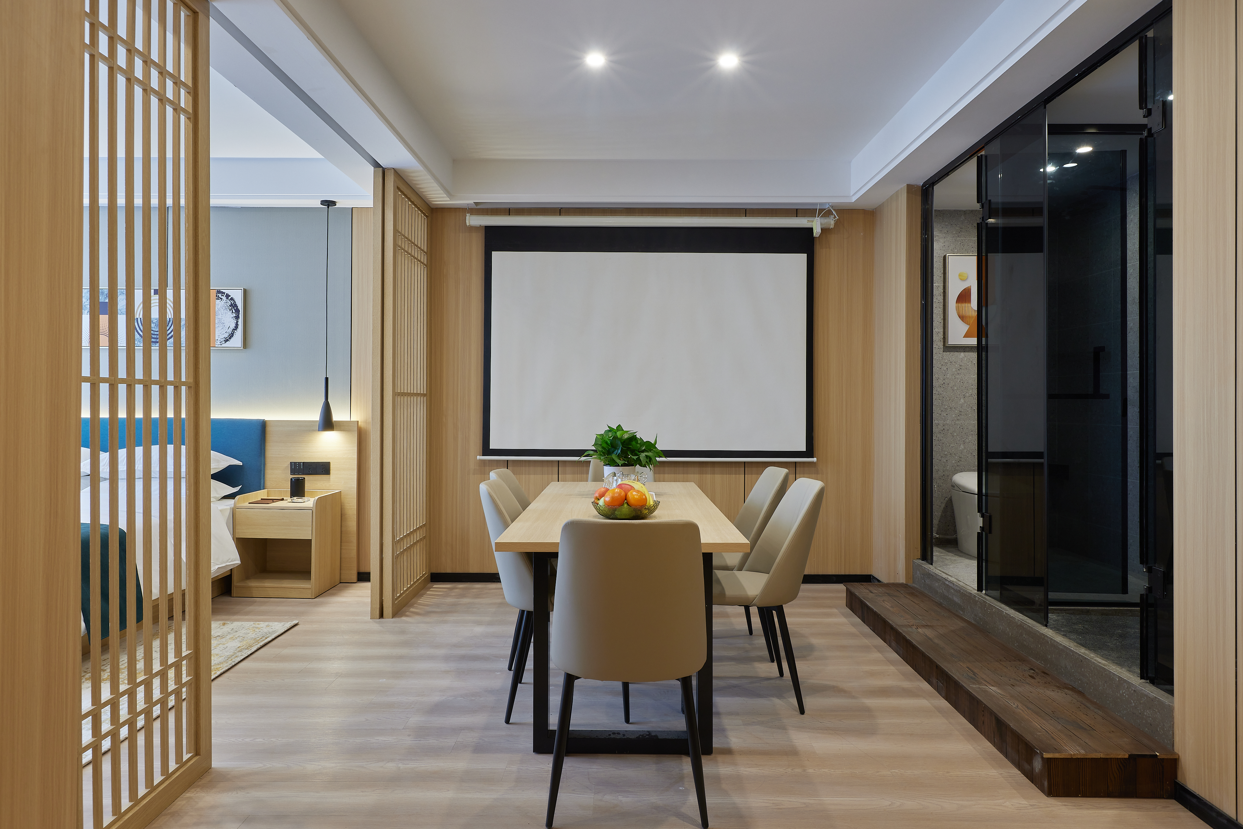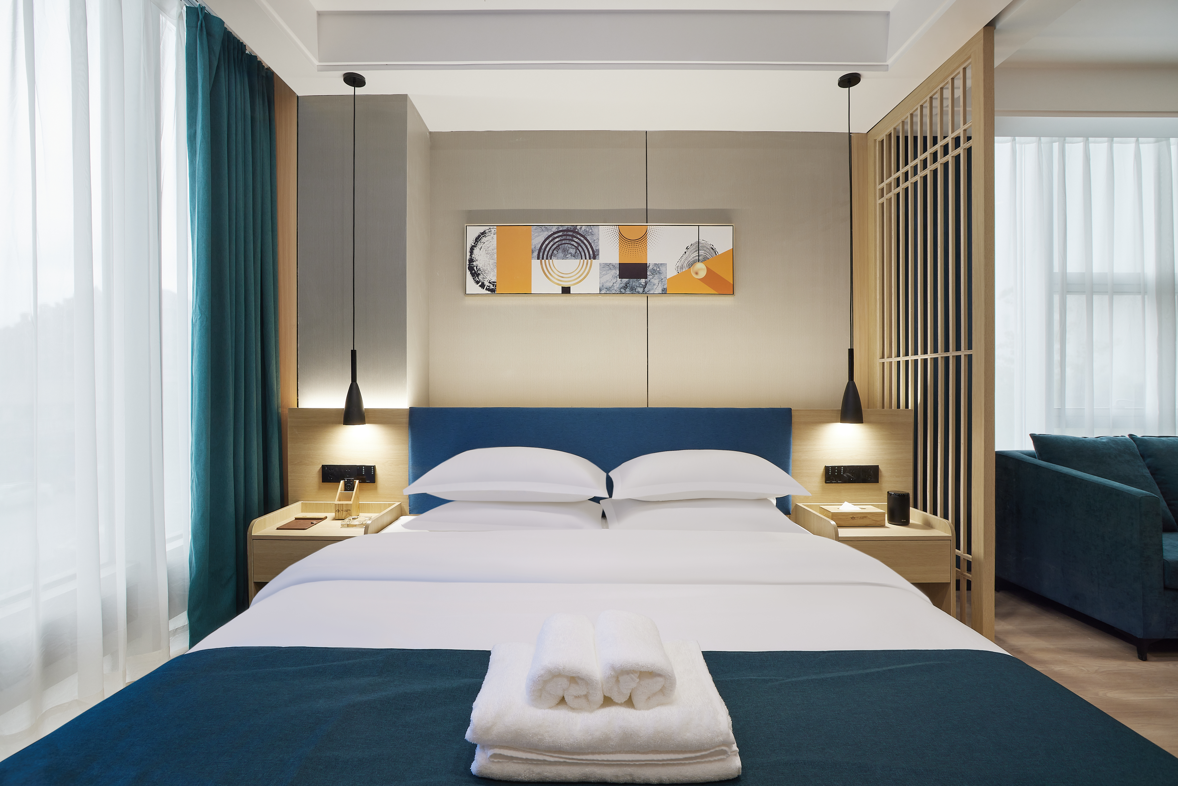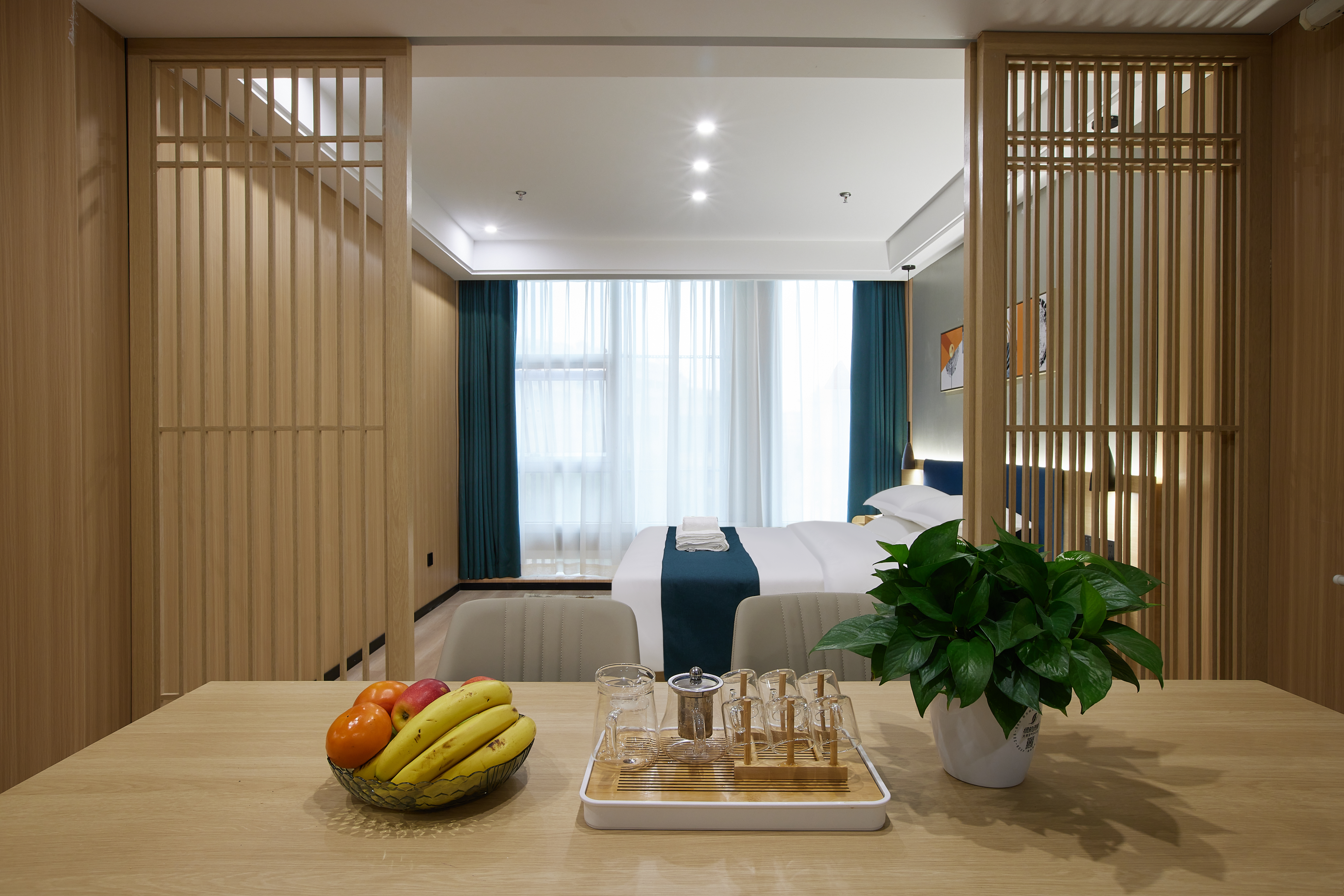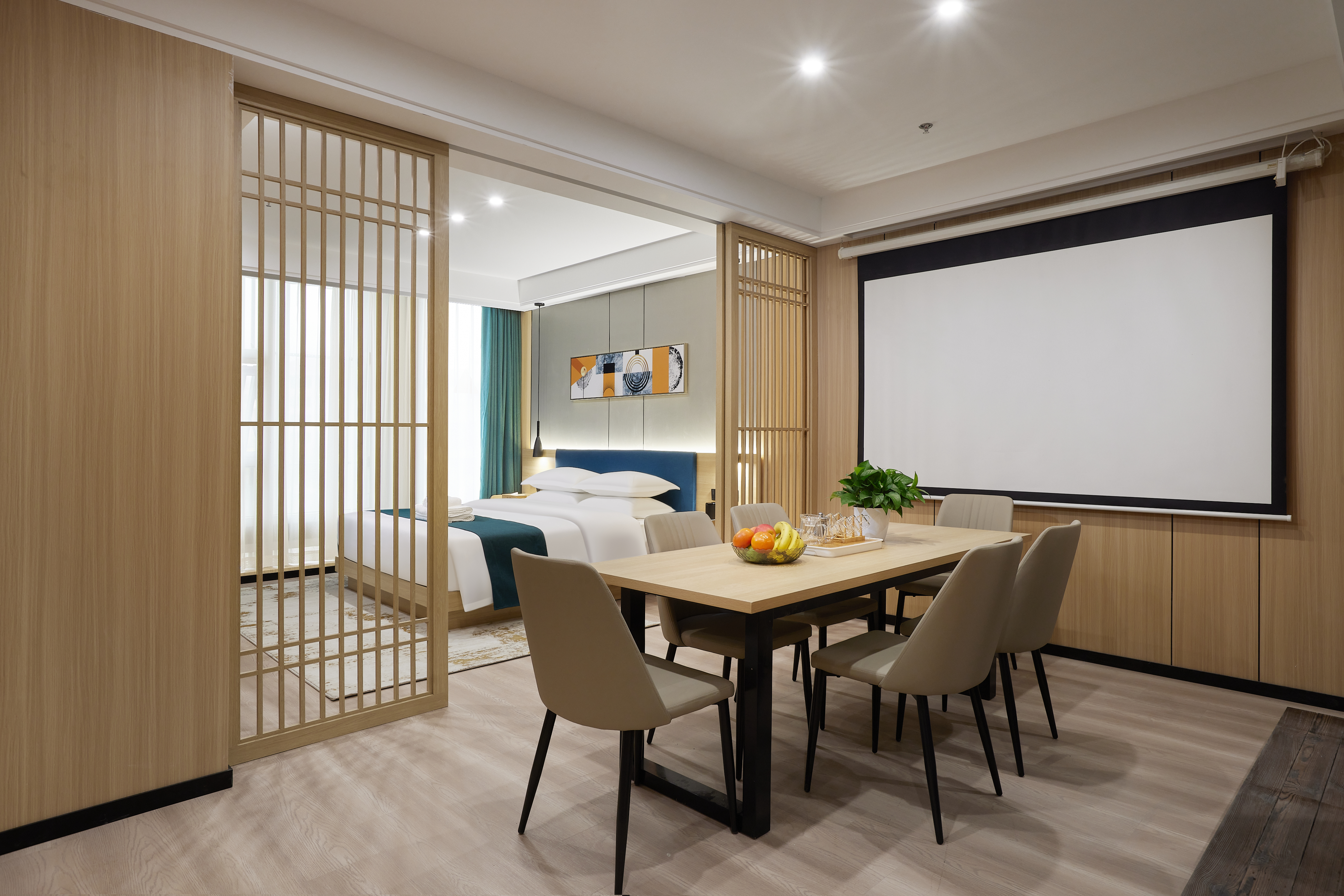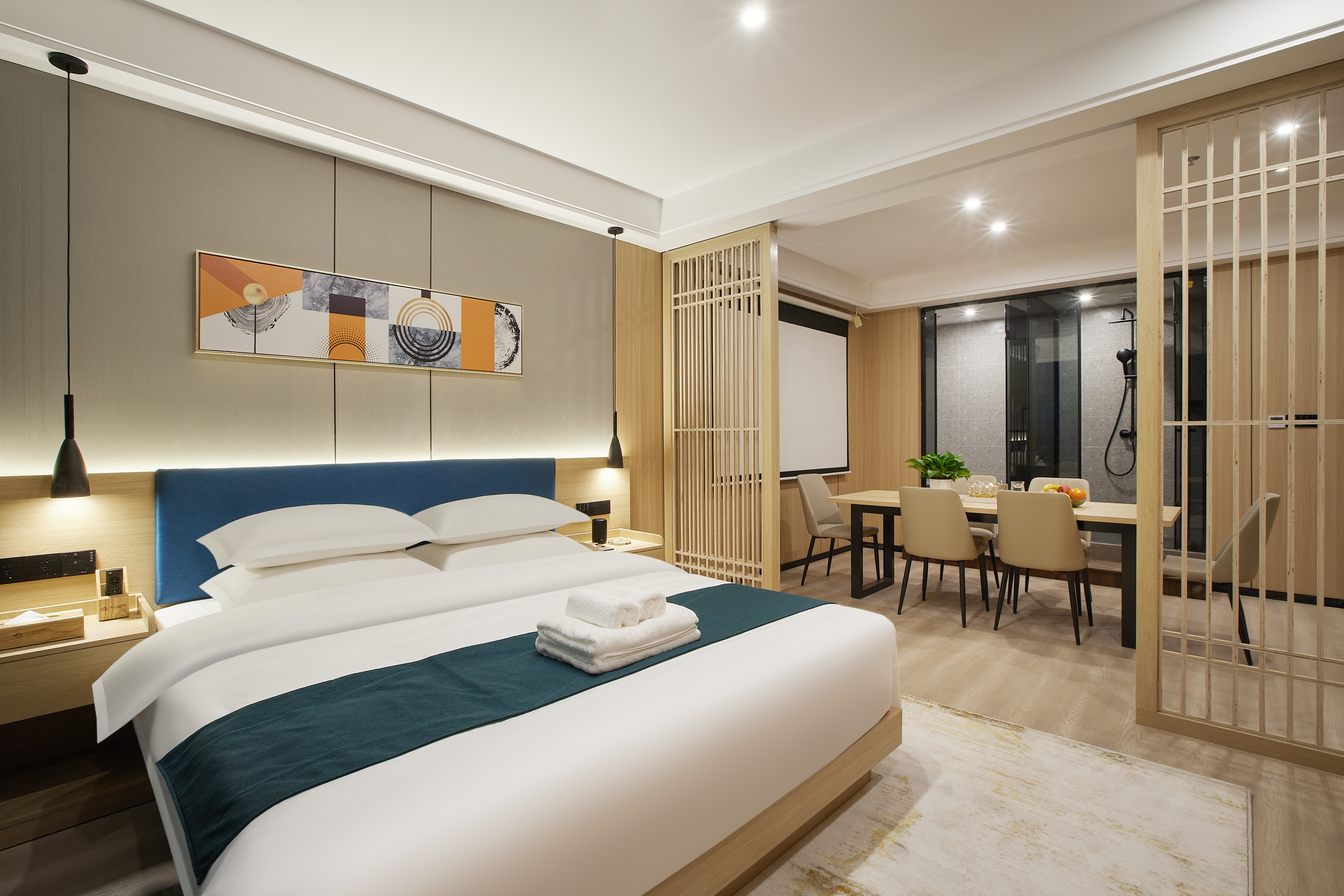 逸境丨落地全景茶韵双空间大床房|会客厅|投影仪