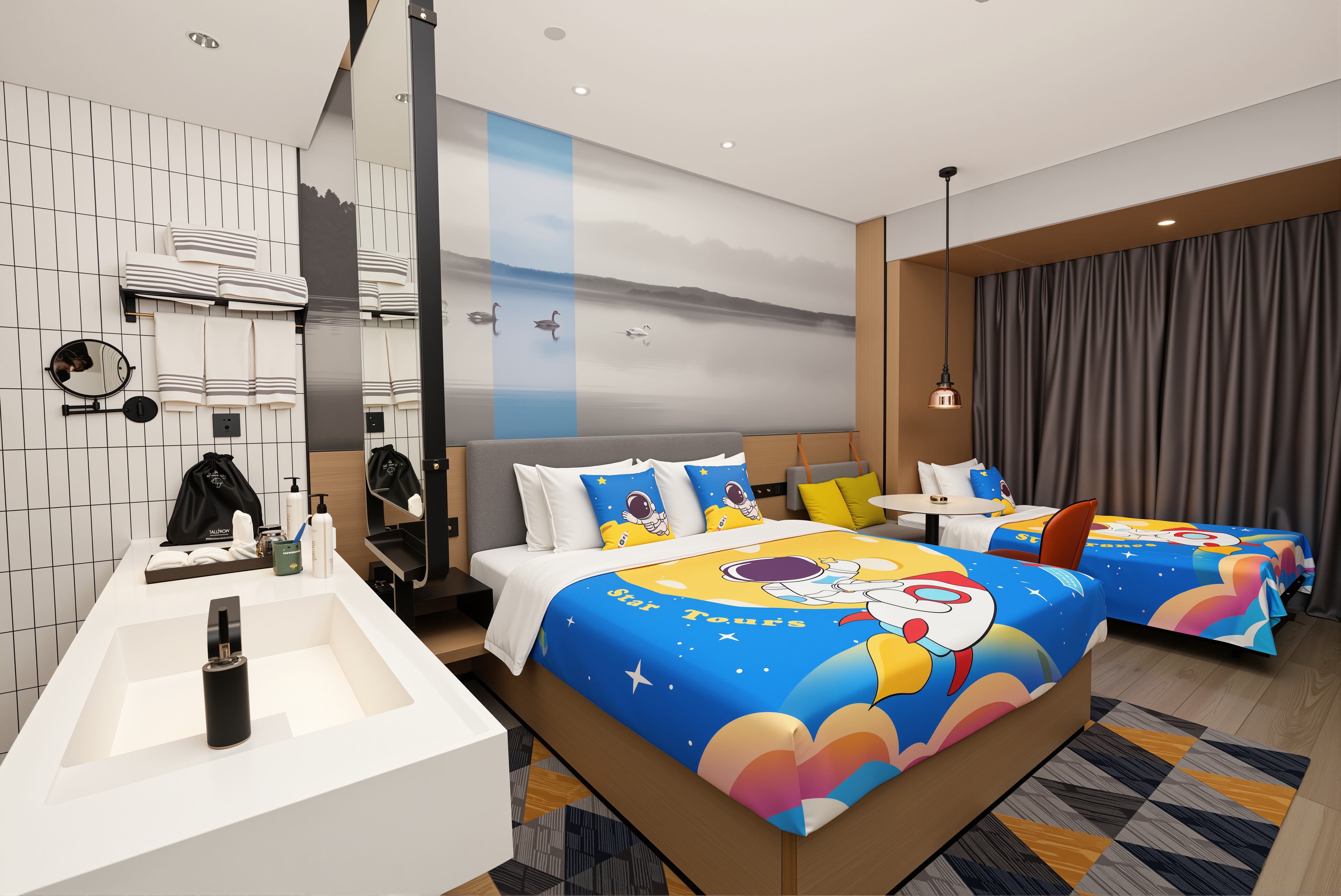 小小宇航员家庭亲子房(景观落地窗+智能投屏)