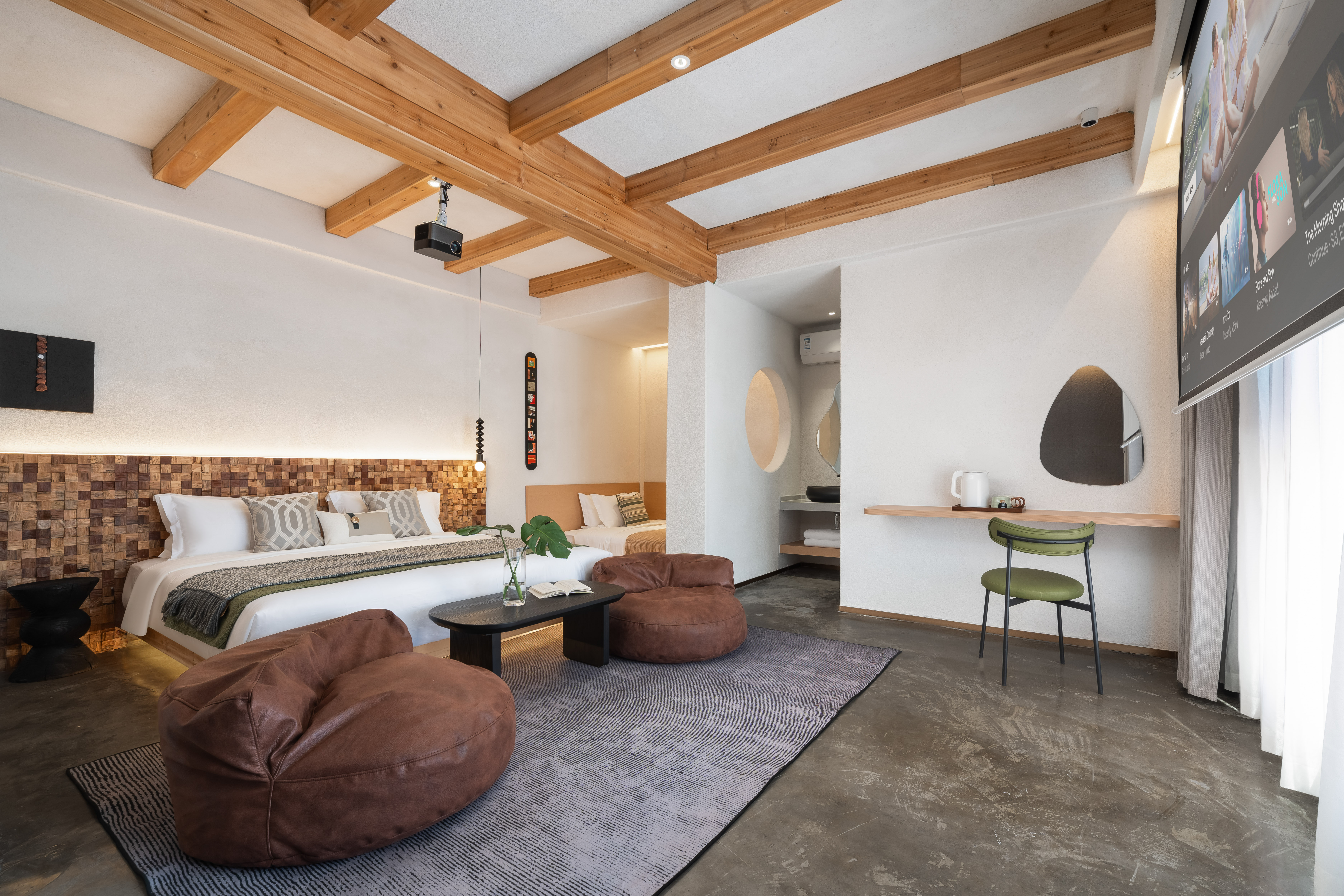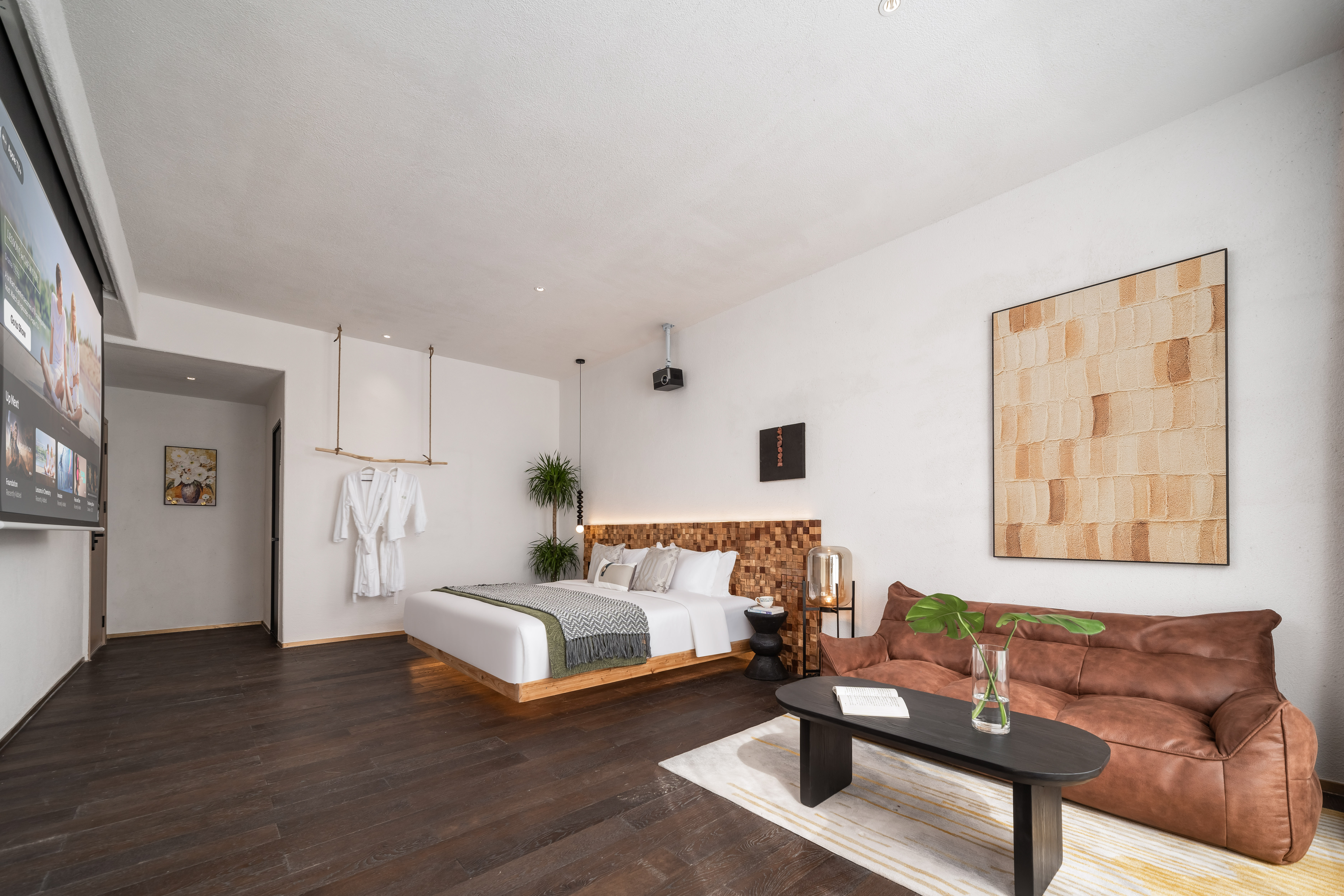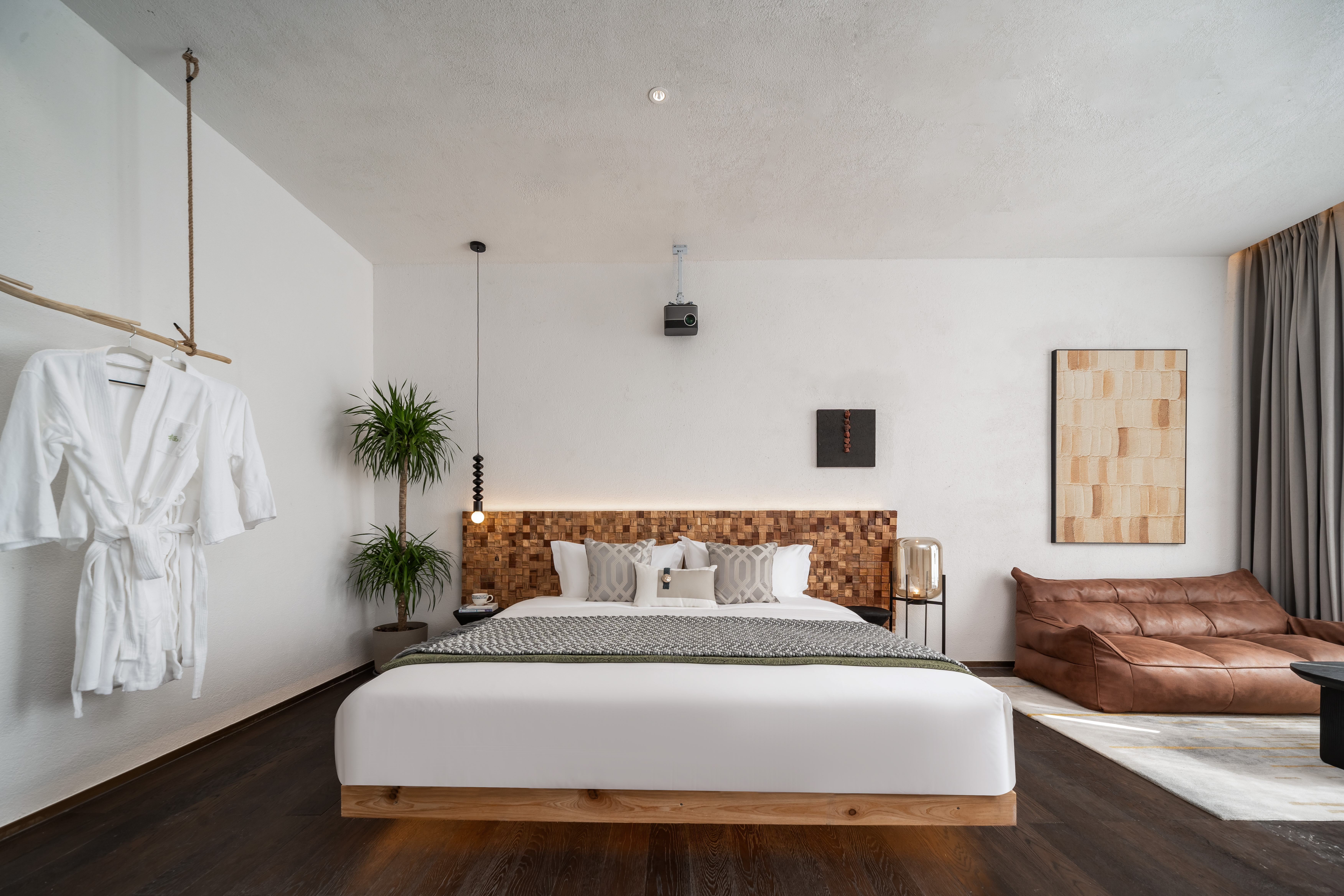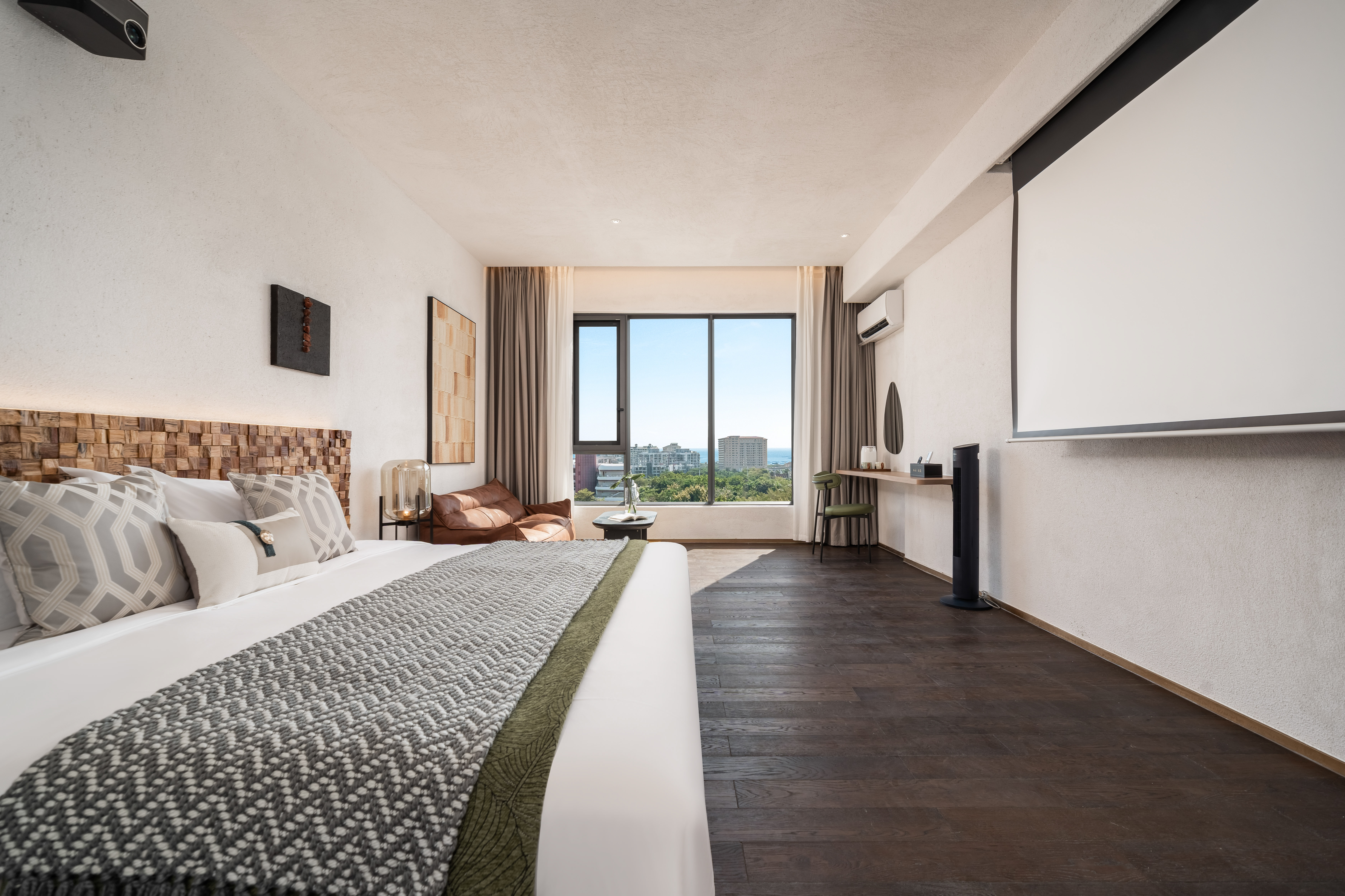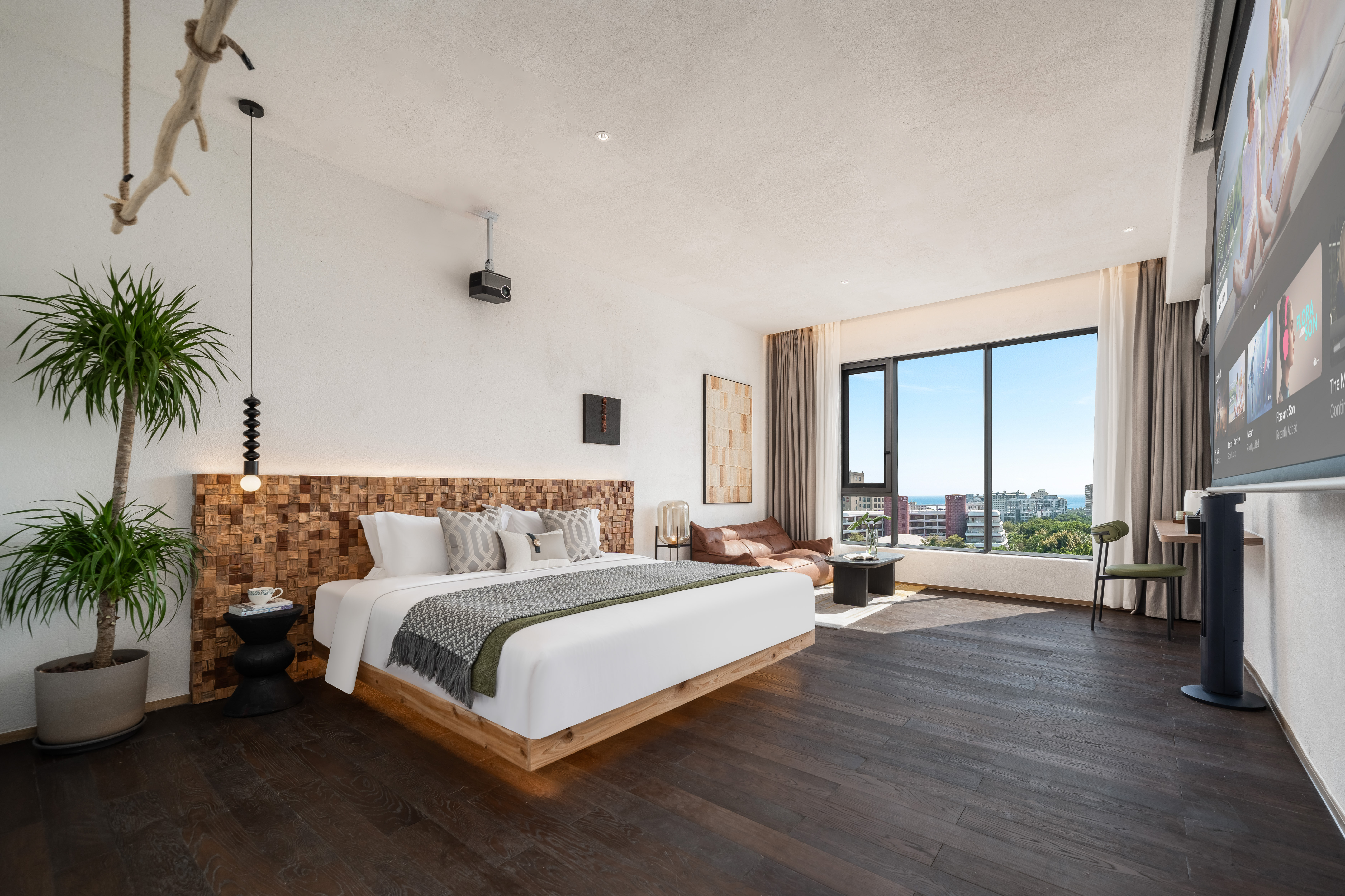 私密空中花園大床房「隔音窗户+品牌床墊+100寸投影+遠眺海景」