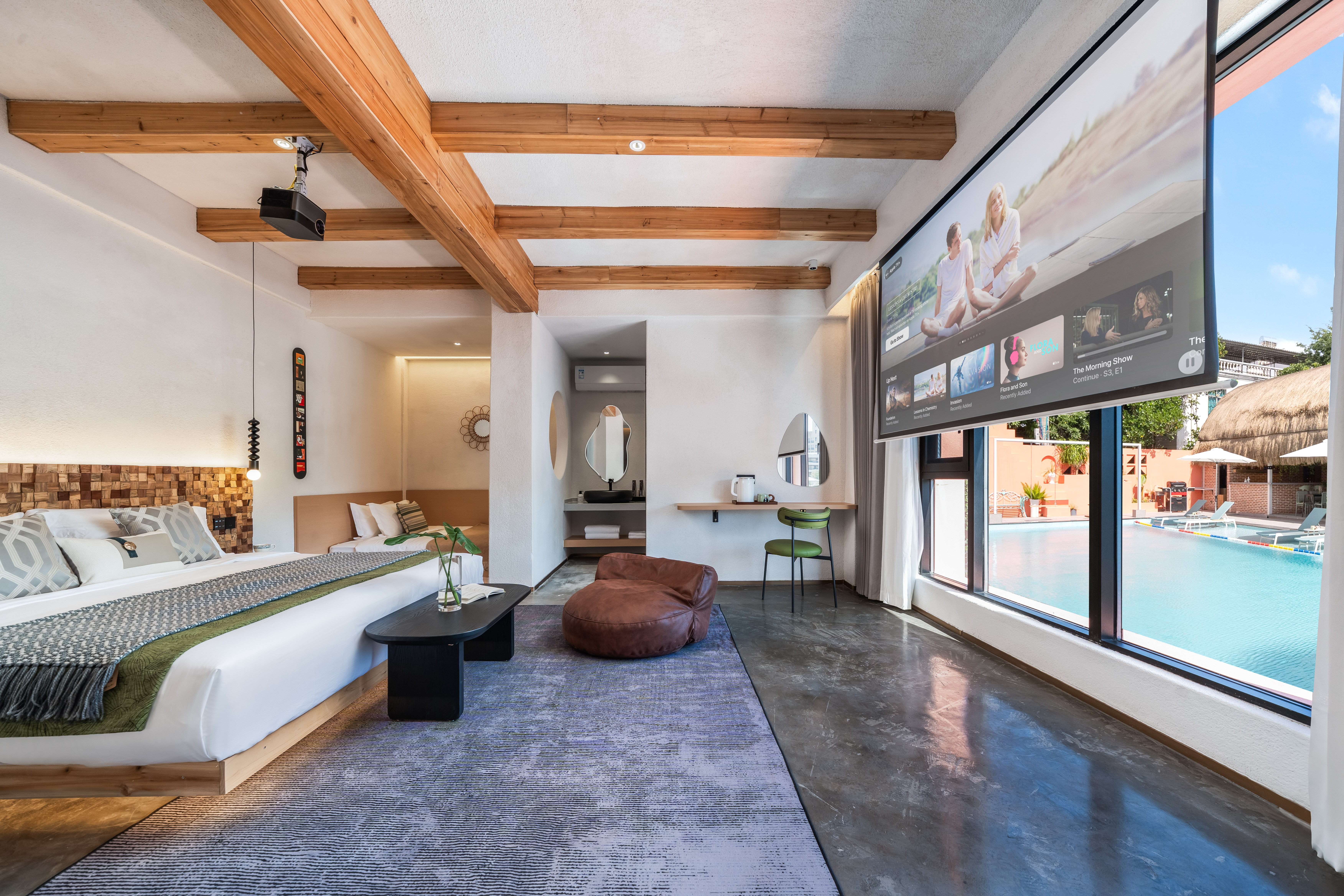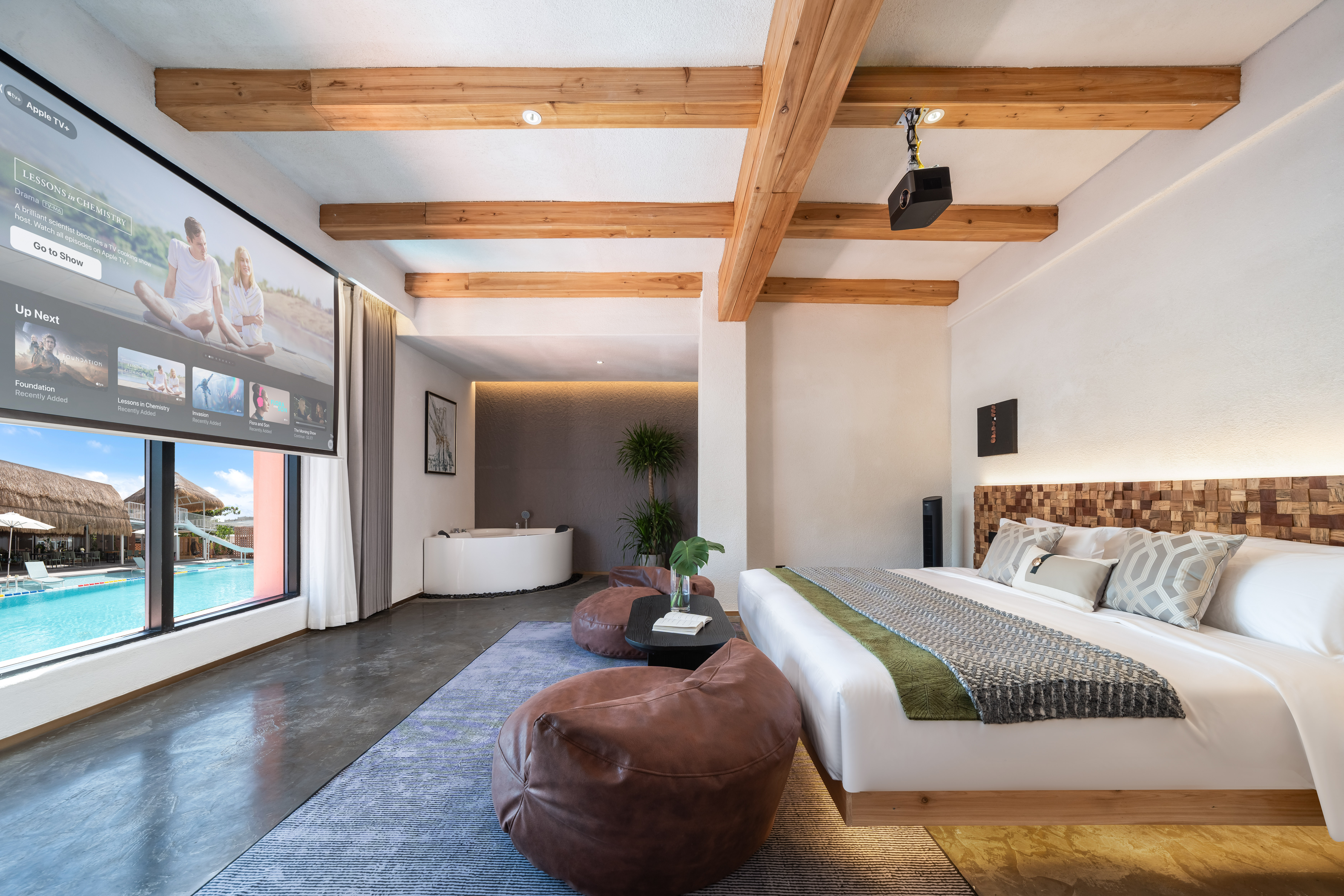 池畔浴缸家庭房「隔音窗户+100寸投影+浴缸+池景」