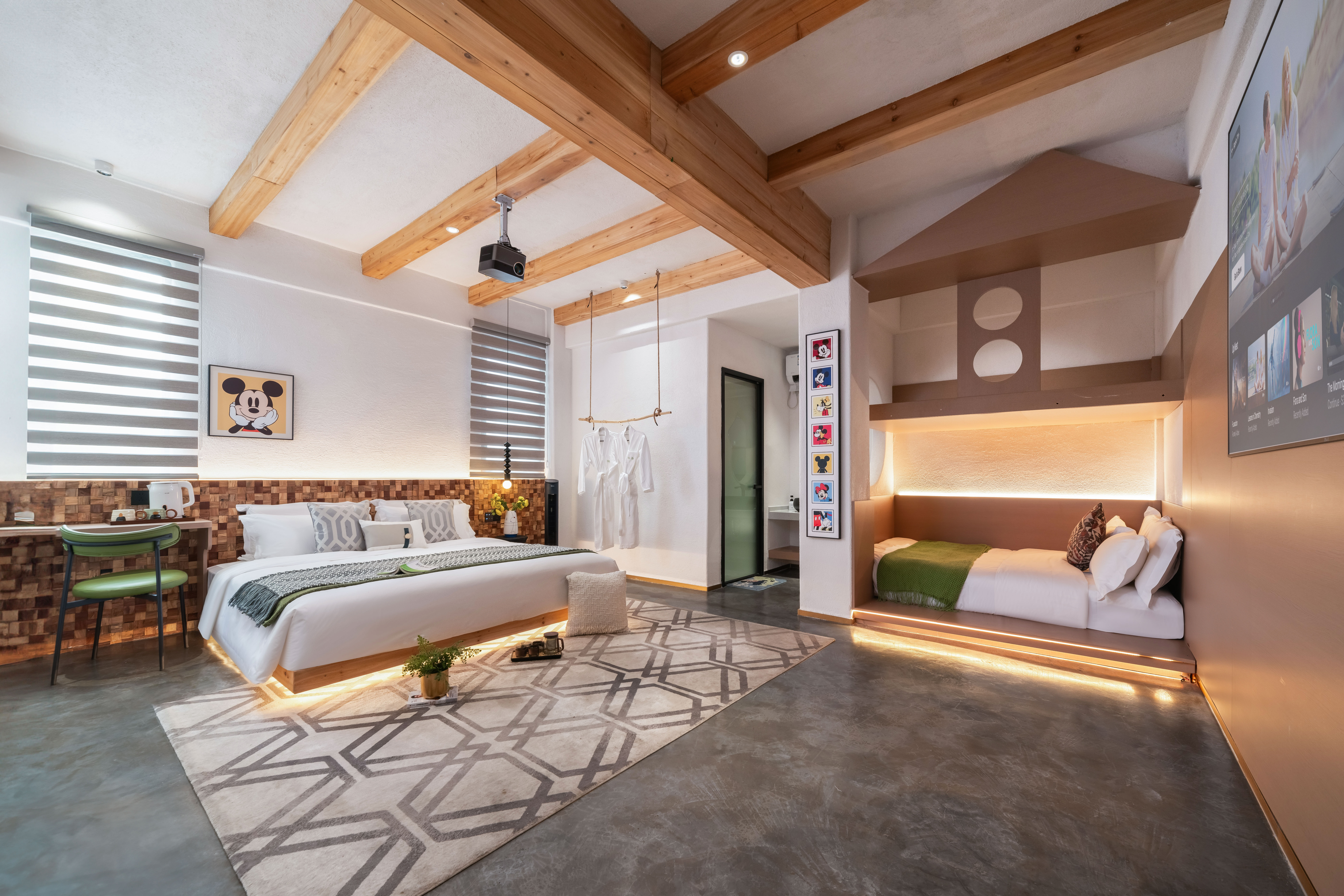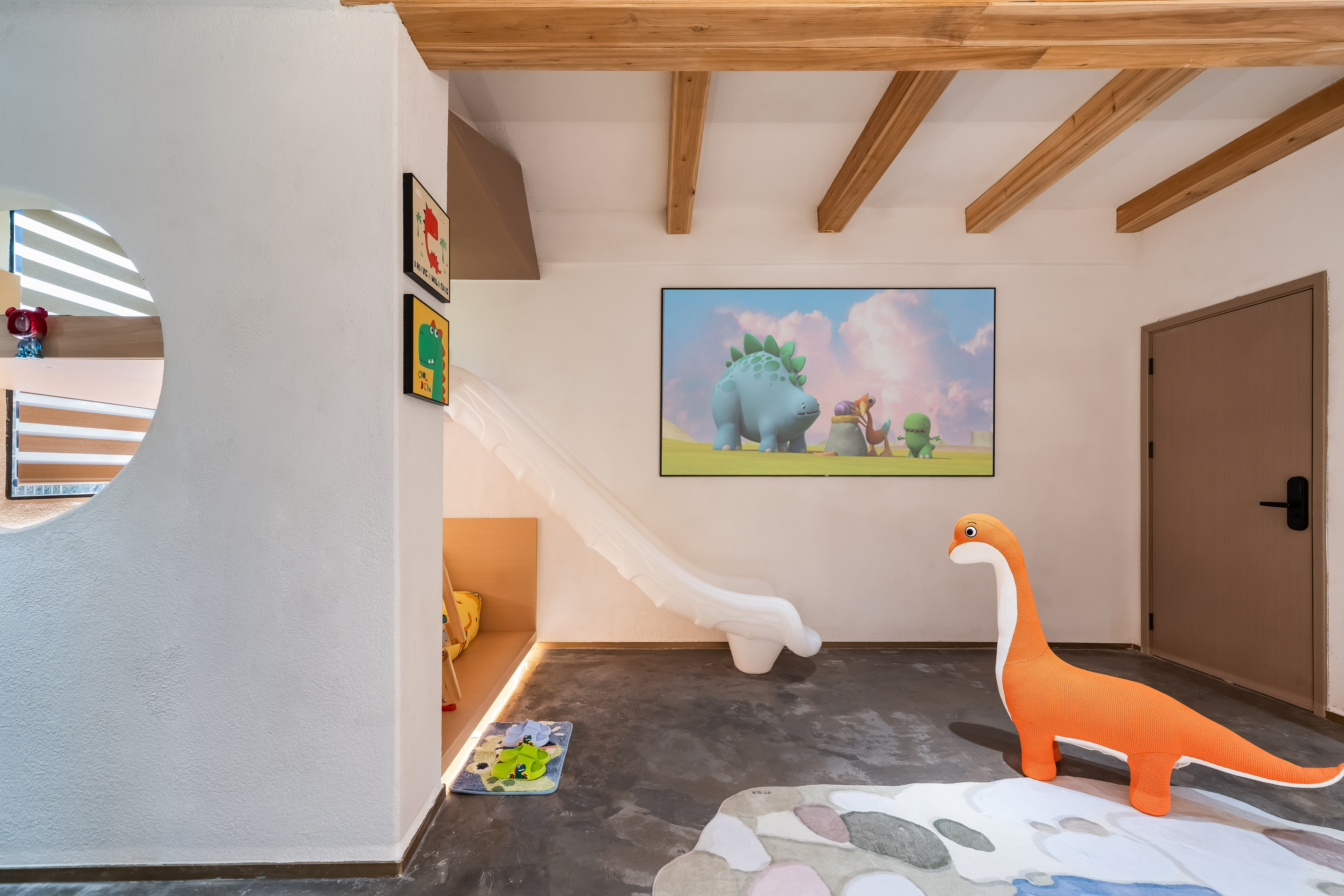 恐龍木屋滑梯親子房「品牌床墊+100寸投影+木屋滑梯」