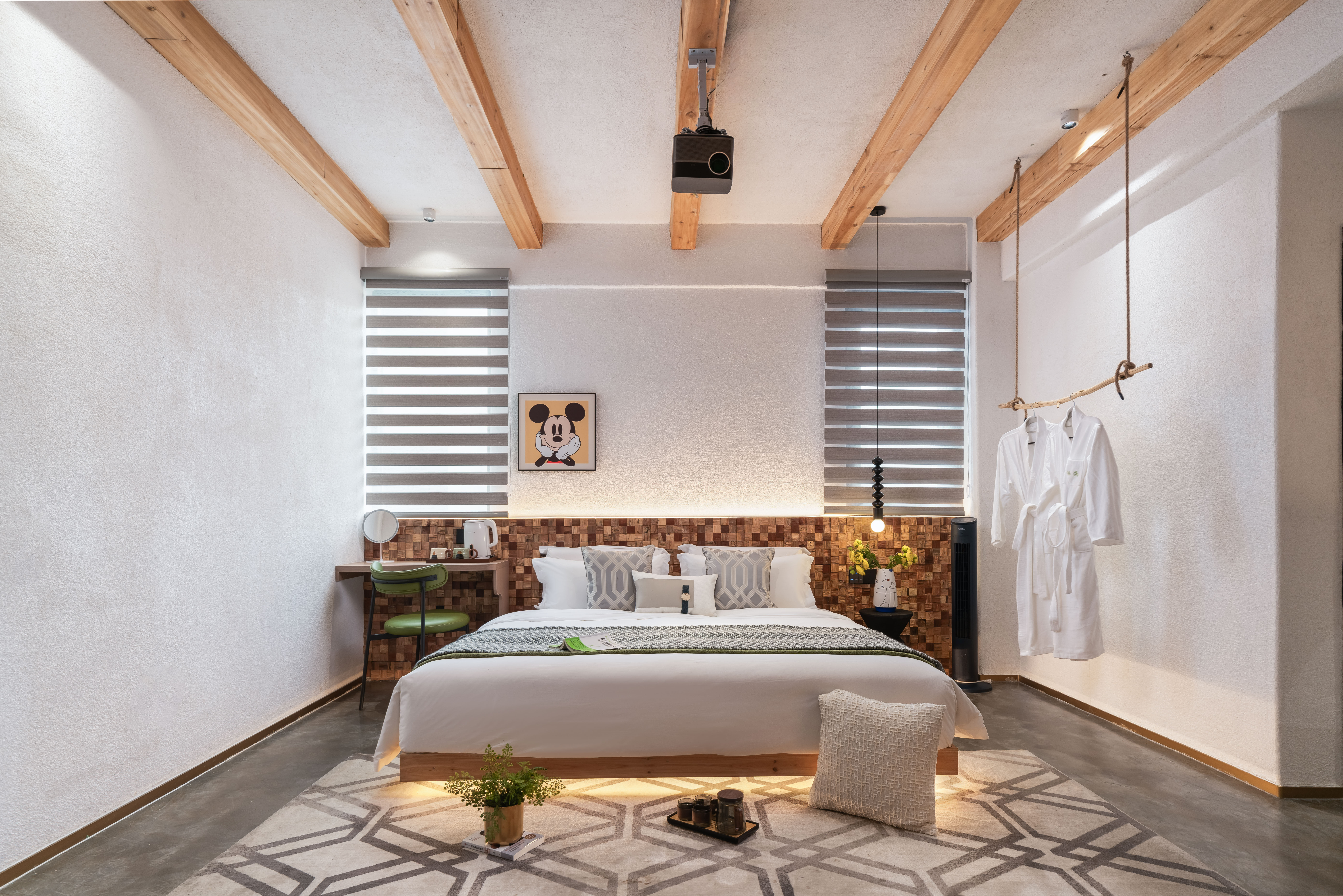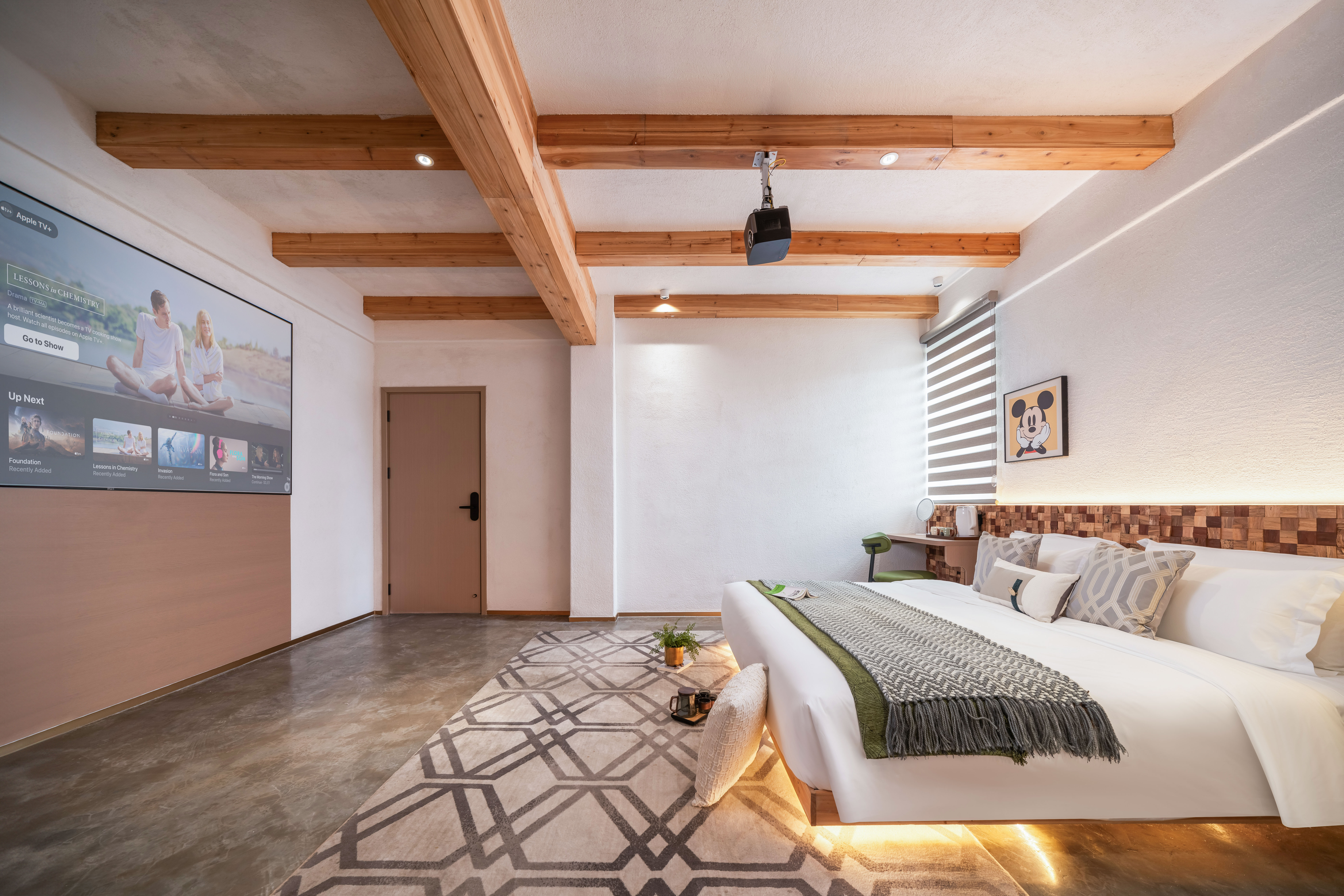 巨幕投影大床房「隔音窗户+品牌床墊+100寸投影」