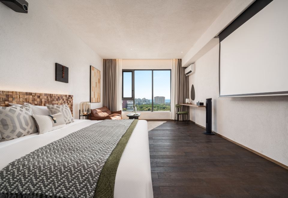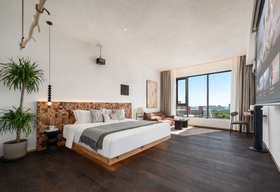私密空中花園大床房「隔音窗户+品牌床墊+100寸投影+遠眺海景」