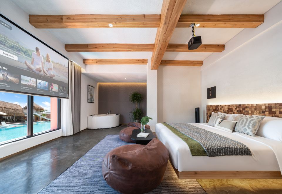 池畔浴缸家庭房「隔音窗户+100寸投影+浴缸+池景」
