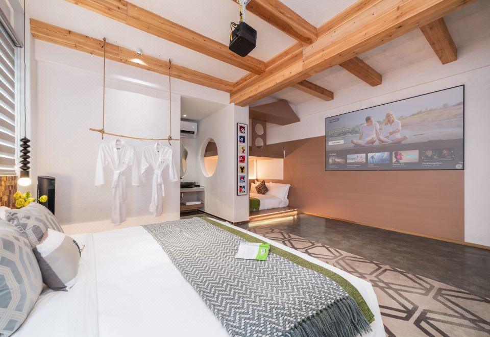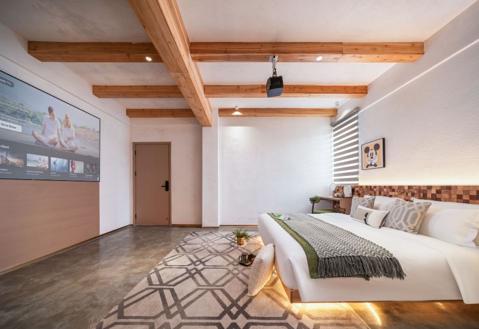 巨幕投影大床房「隔音窗户+品牌床墊+100寸投影」