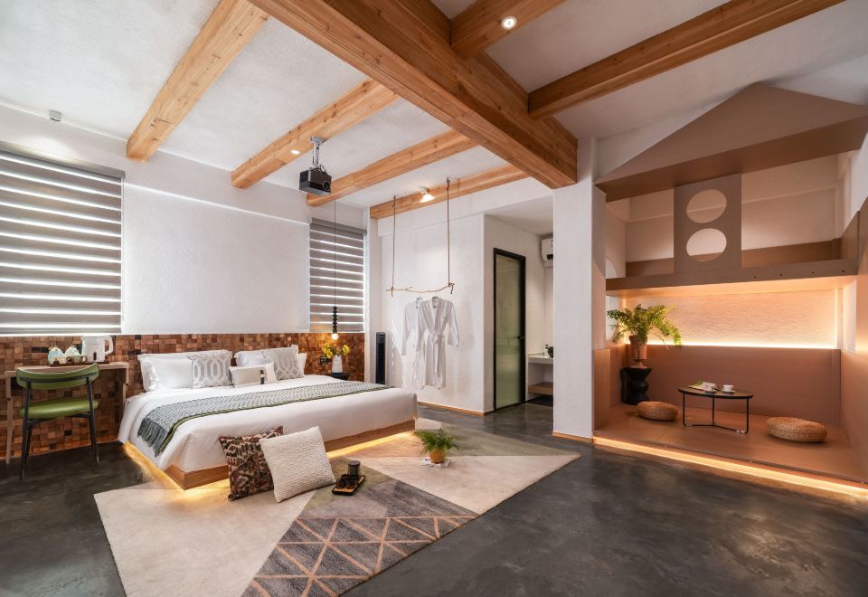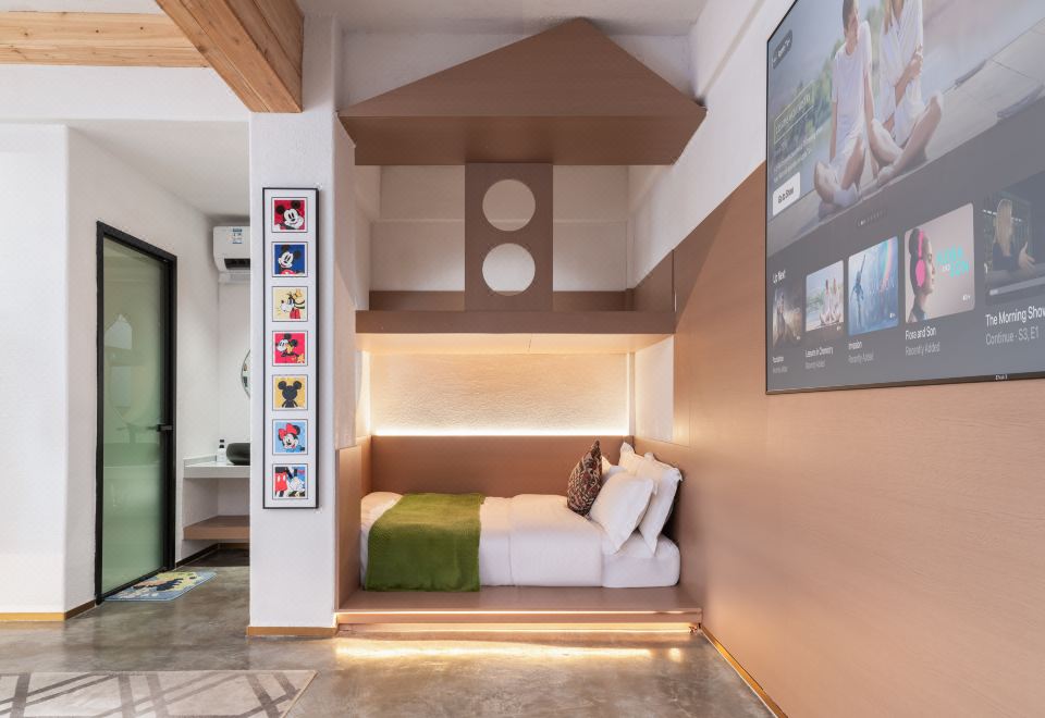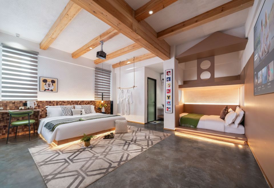 恐龍木屋滑梯親子房「品牌床墊+100寸投影+木屋滑梯」