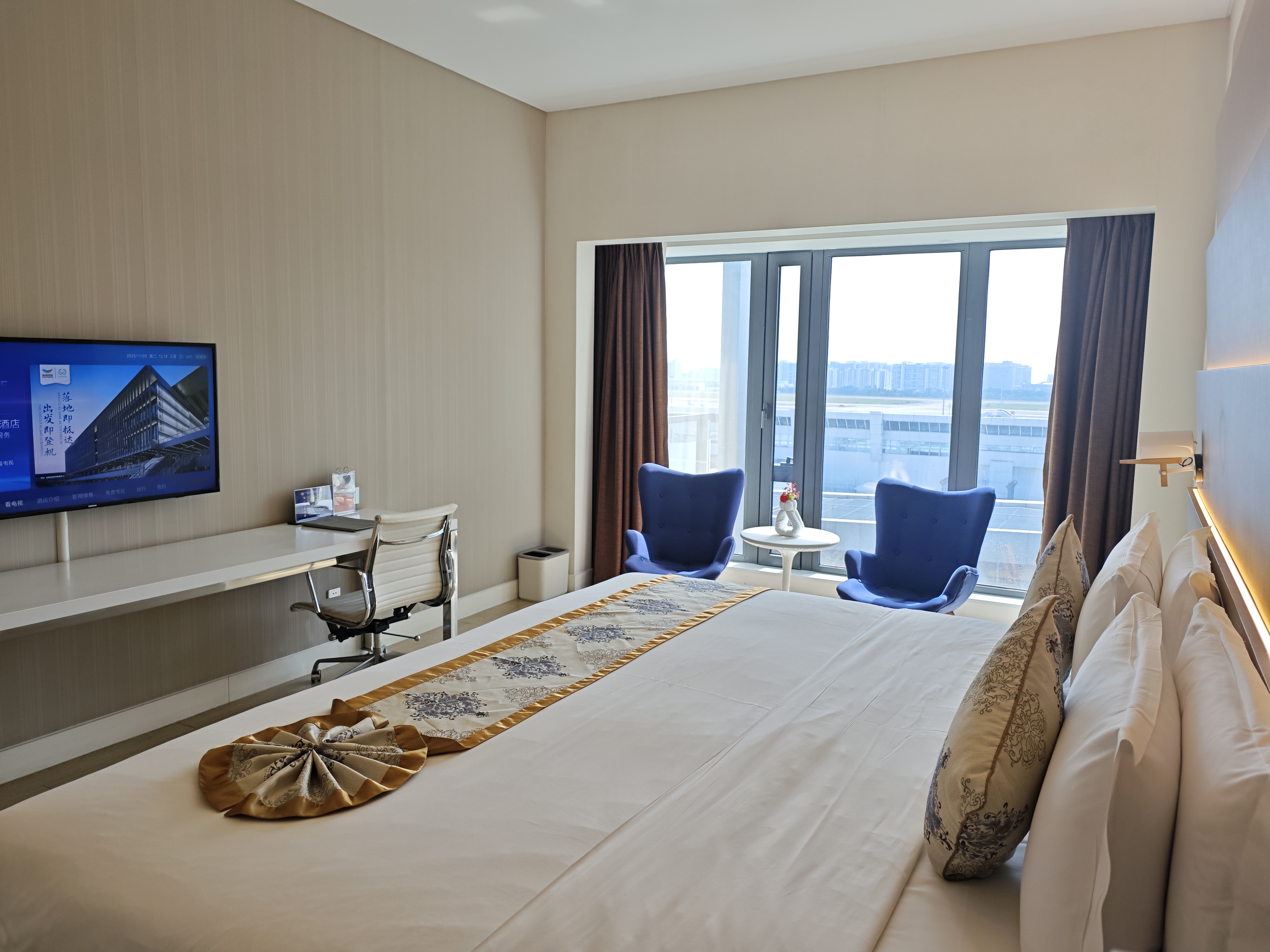 航景尊享大床房【隔音好+特大家庭床+可观赏飞机起降】