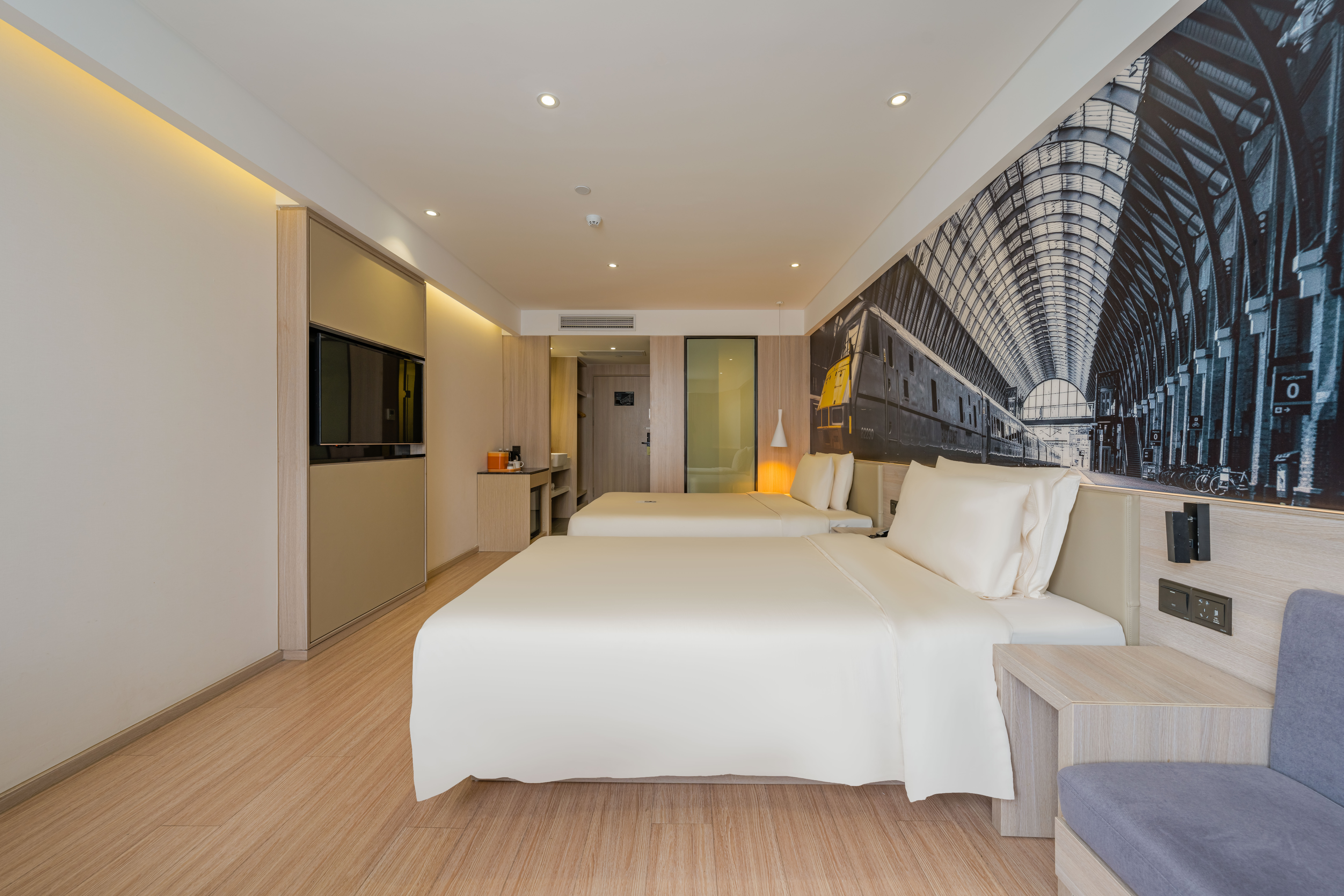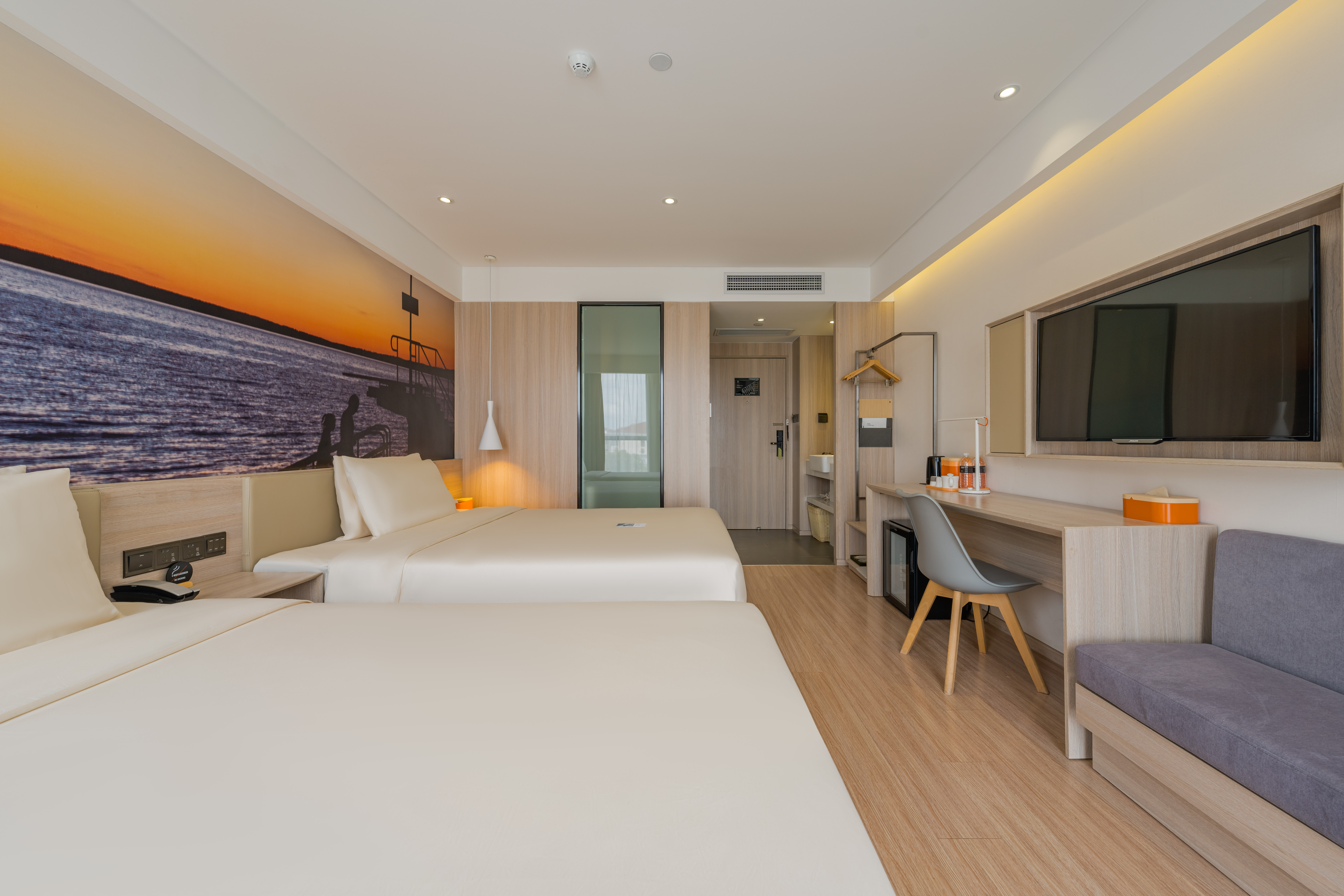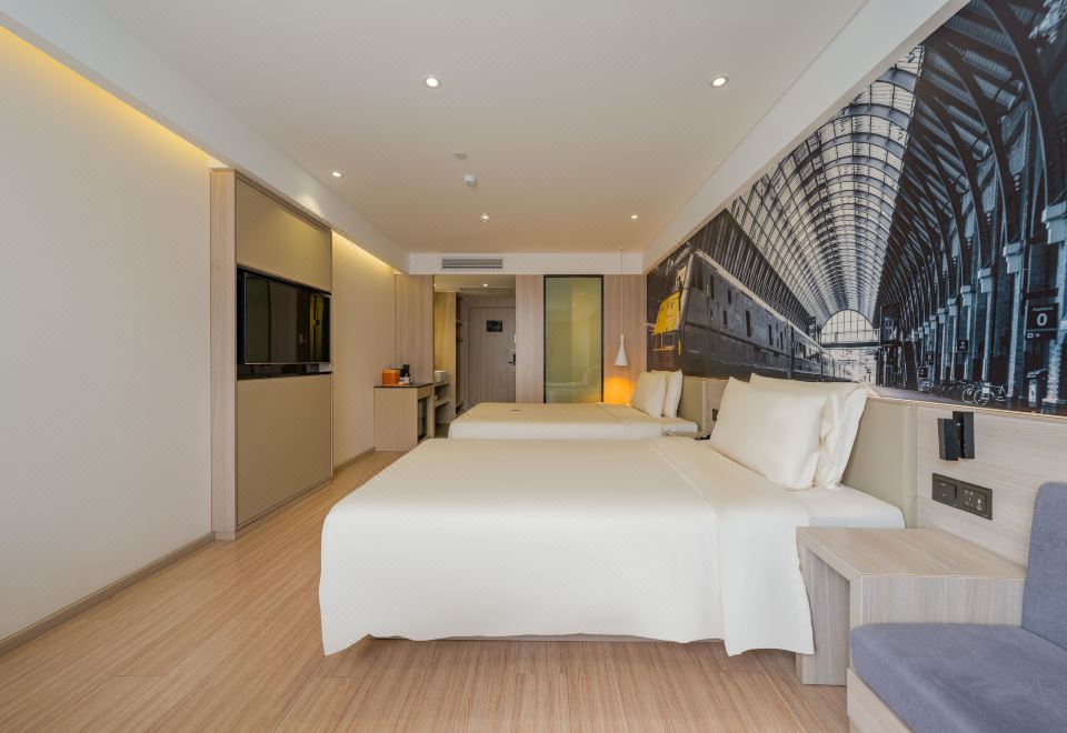 几木双床家庭房(手机投屏+小冰箱)