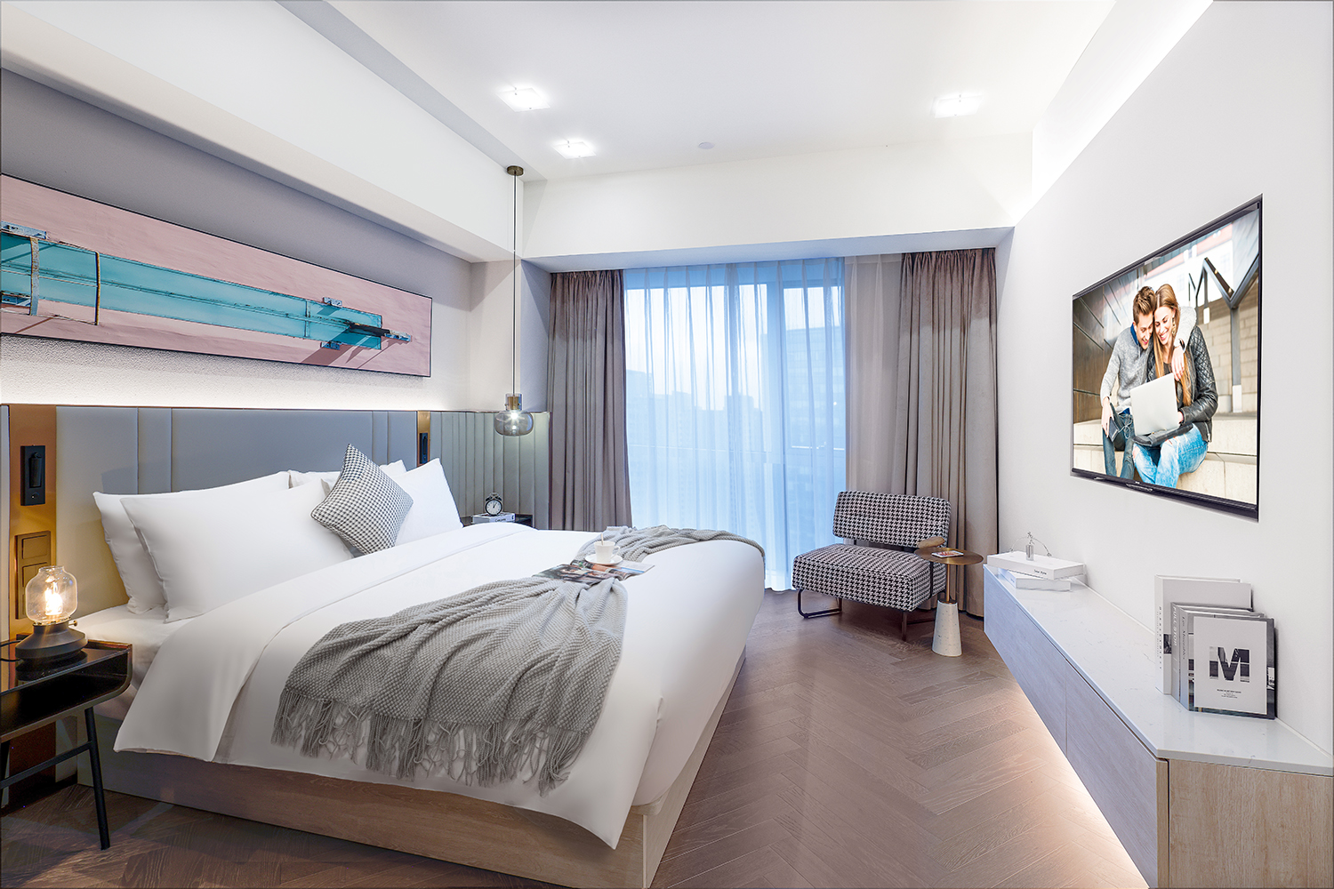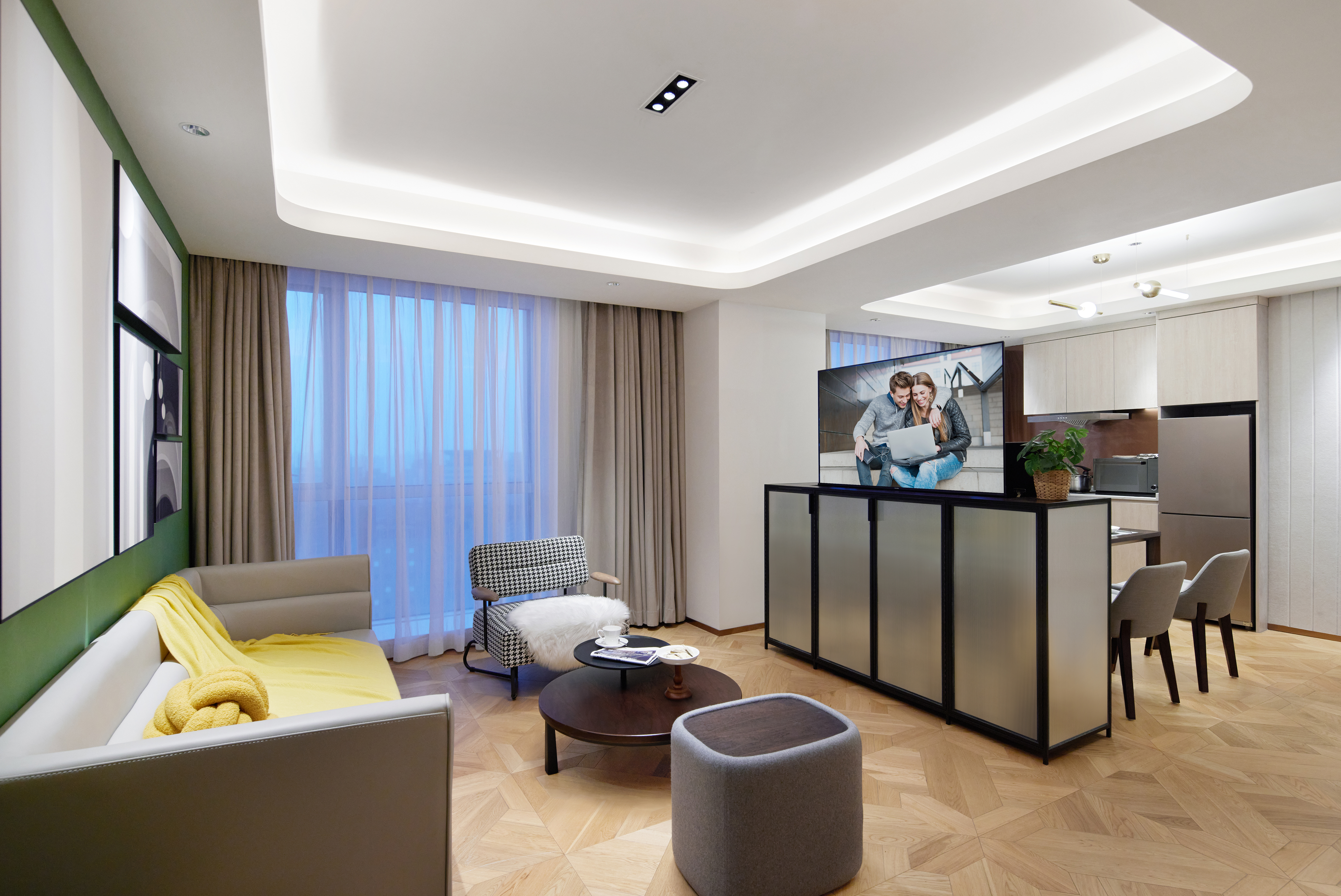 两房豪华行政套房(可投屏+冰箱+洗烘一体机+超大客厅)