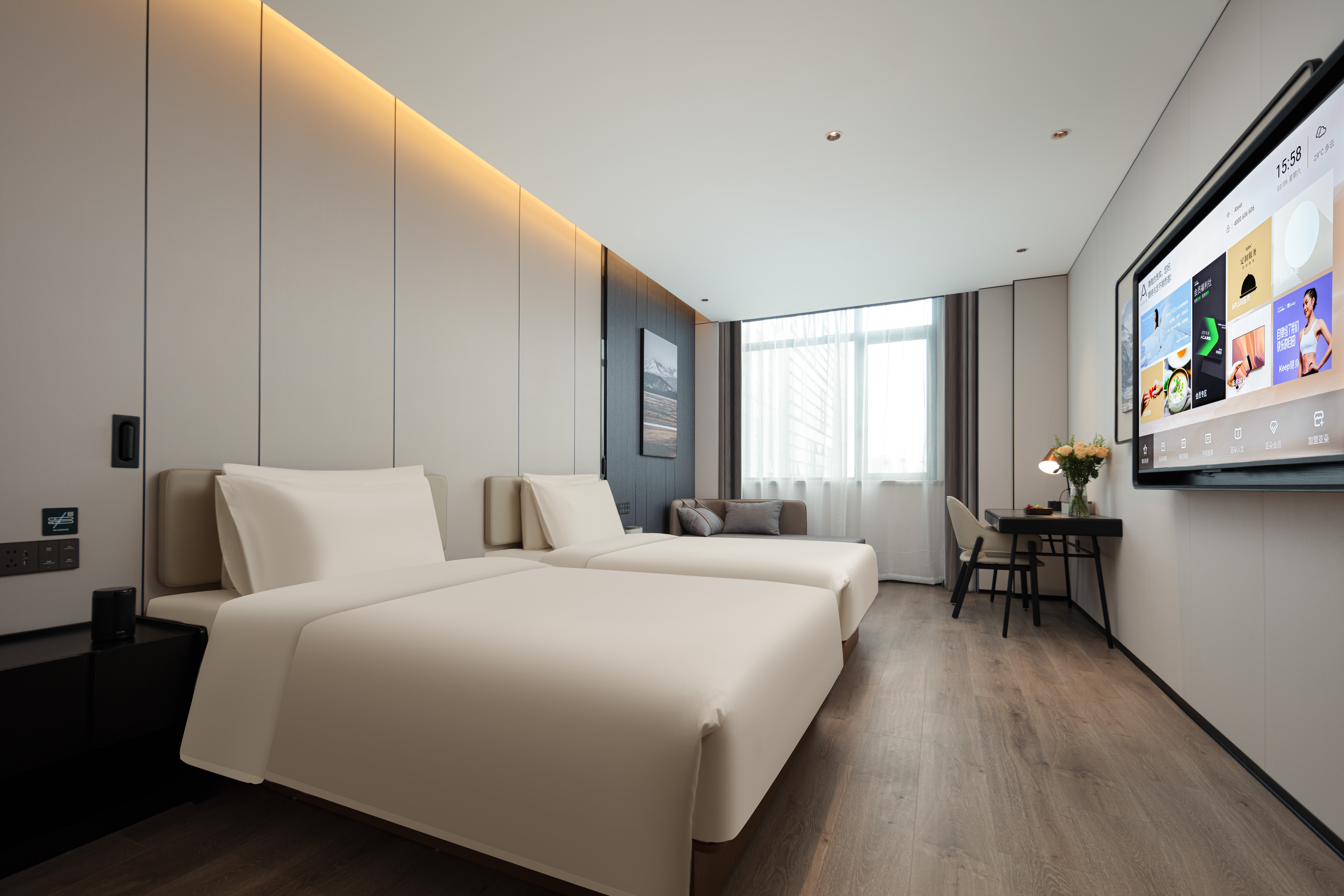 几木双床房(65寸电视投屏+冰箱+单体空调+深睡pro枕)