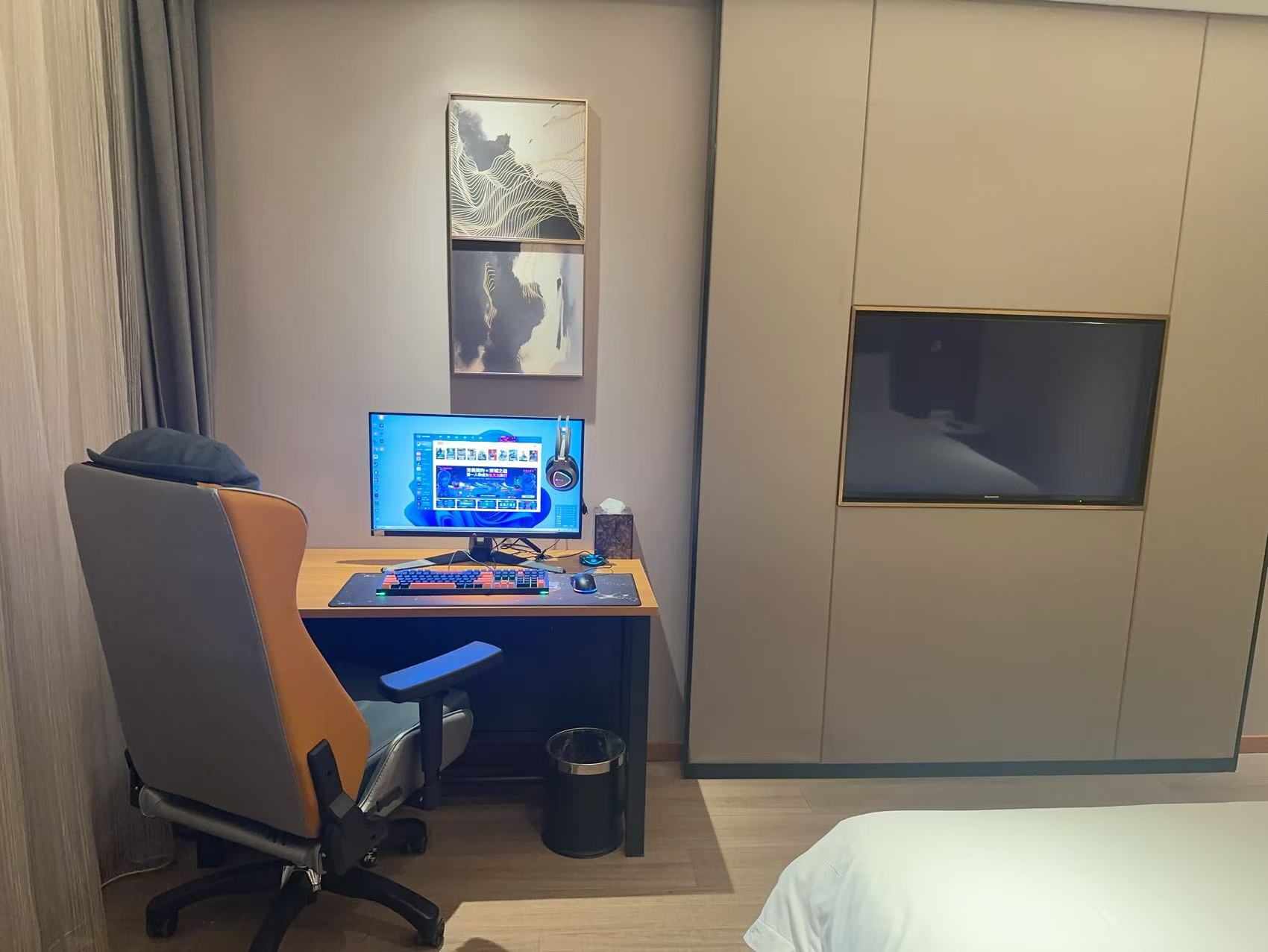 Budget Gaming Double Bed Room With One Gaming Pc (4070 + I7 + 2K180 + 32G + Black Myth Wukong Gaming Enhancer)