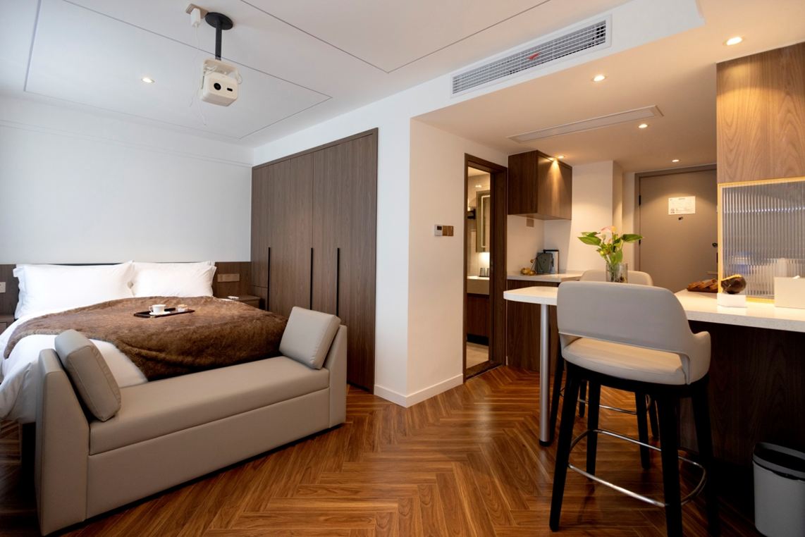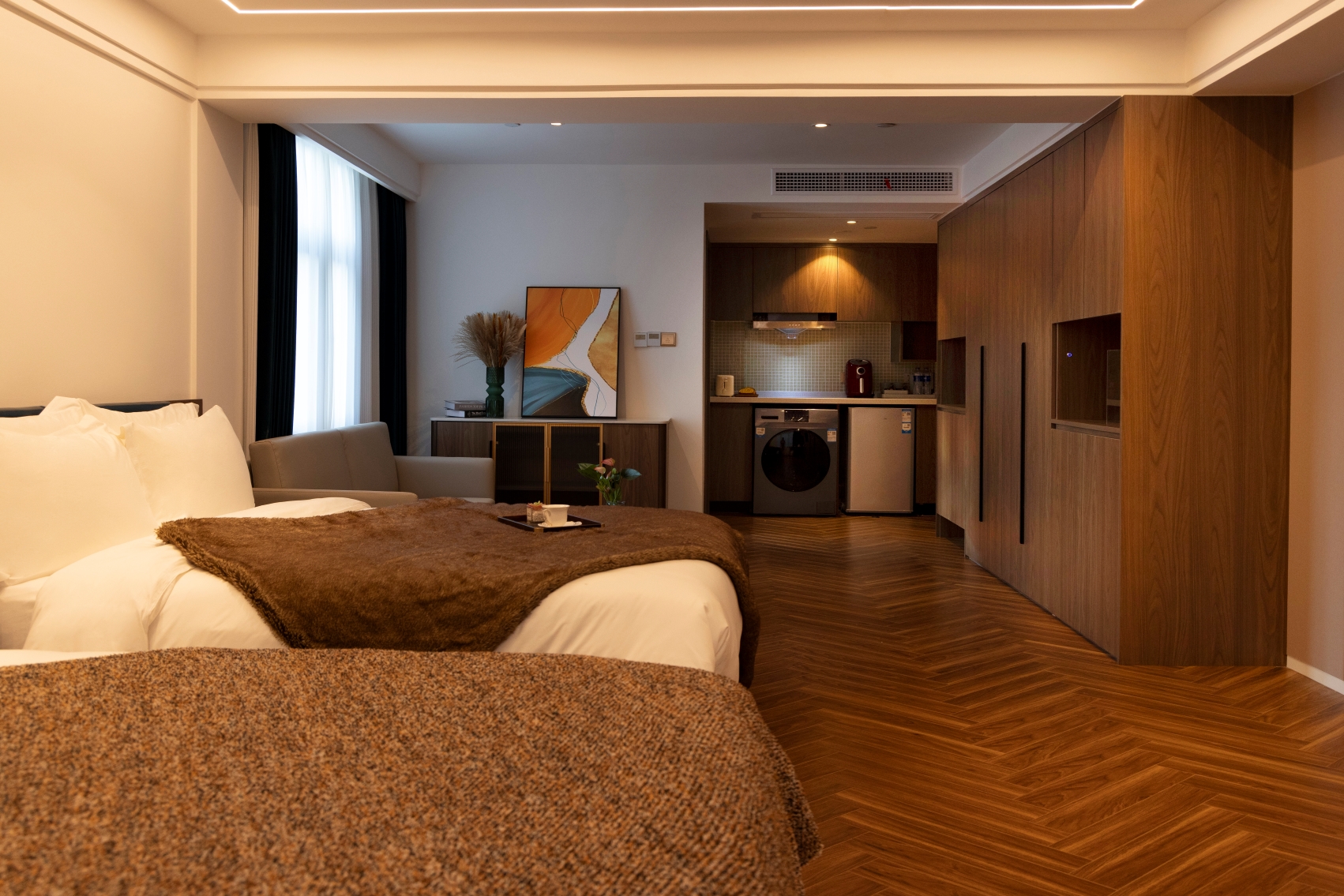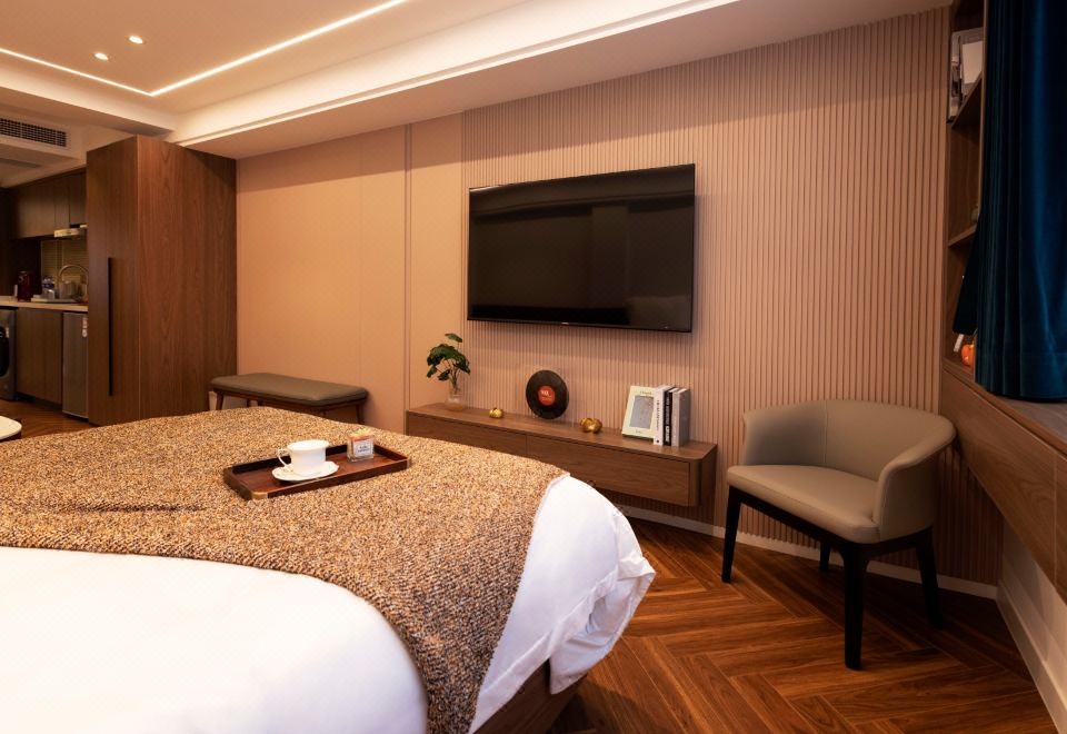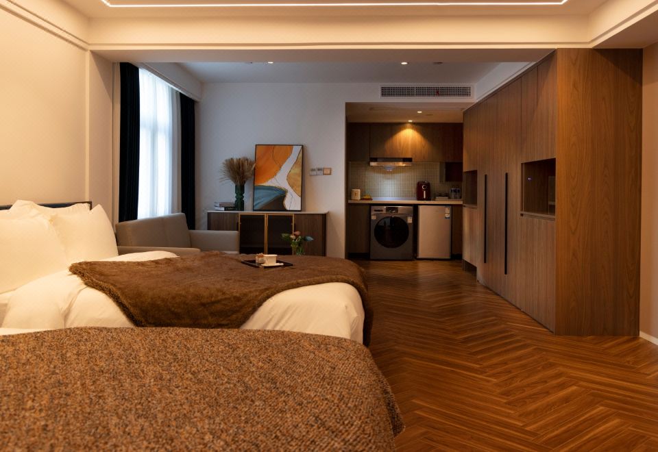 轻奢大床房(错层设计+独立厨房冰箱烘洗机)