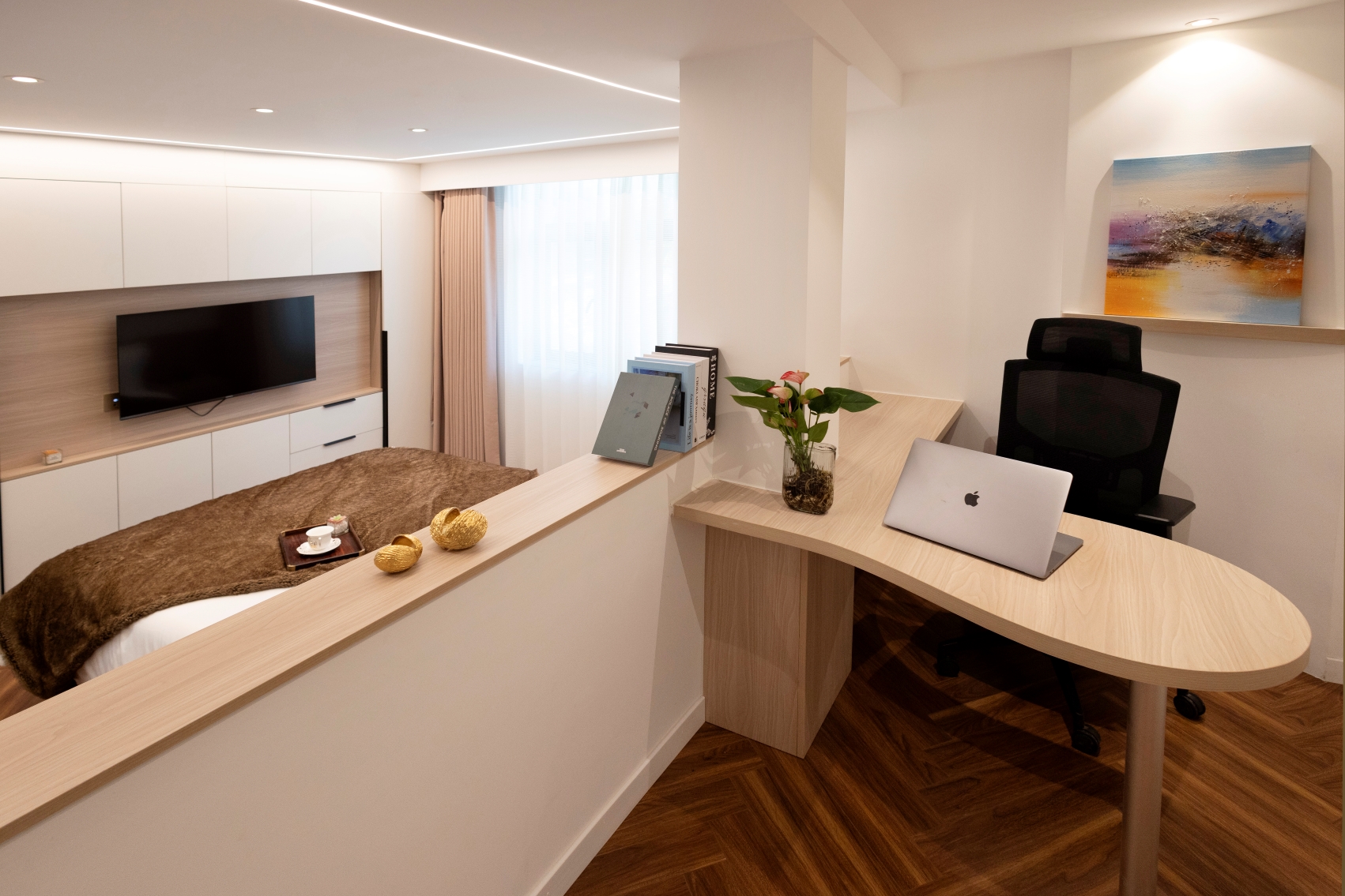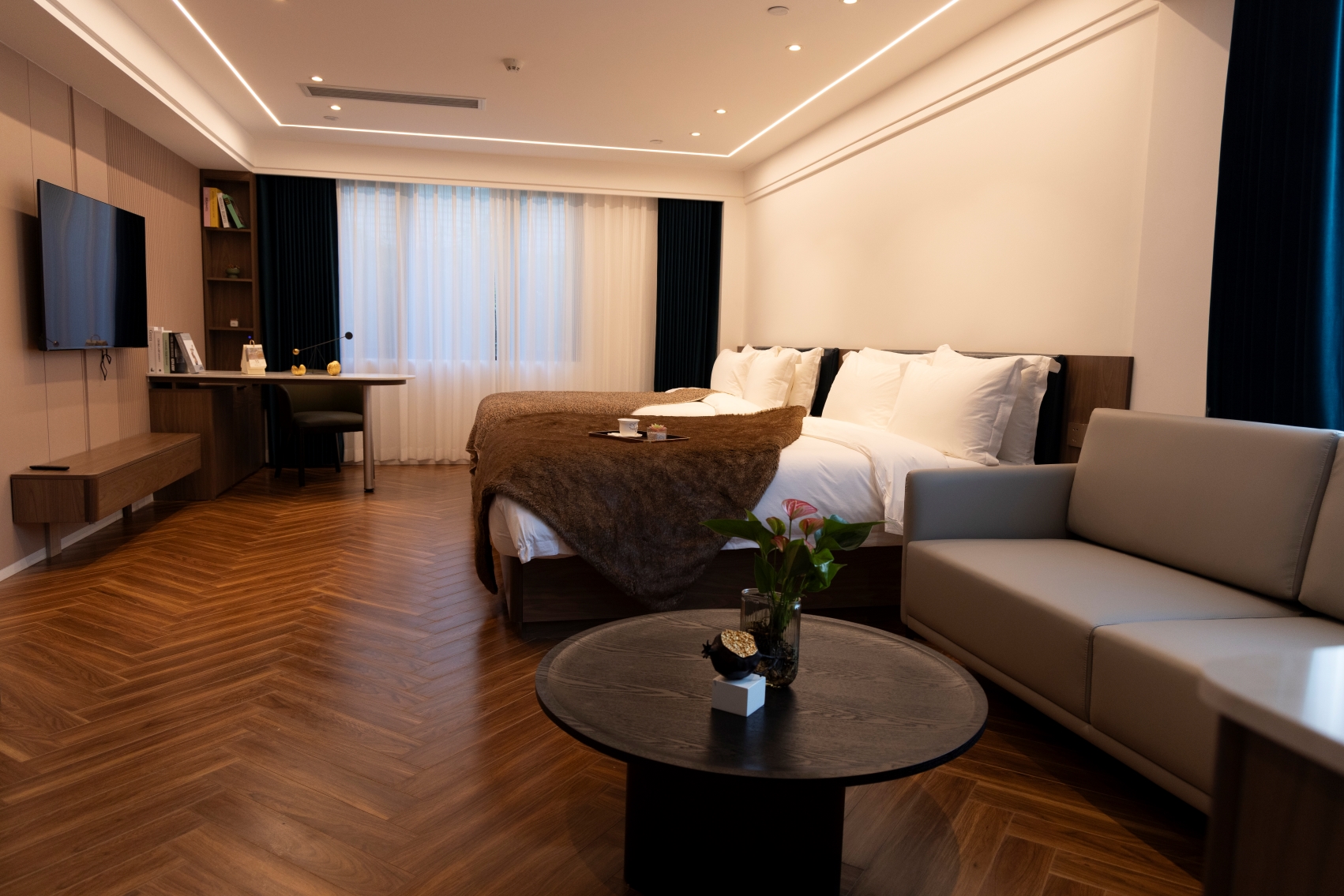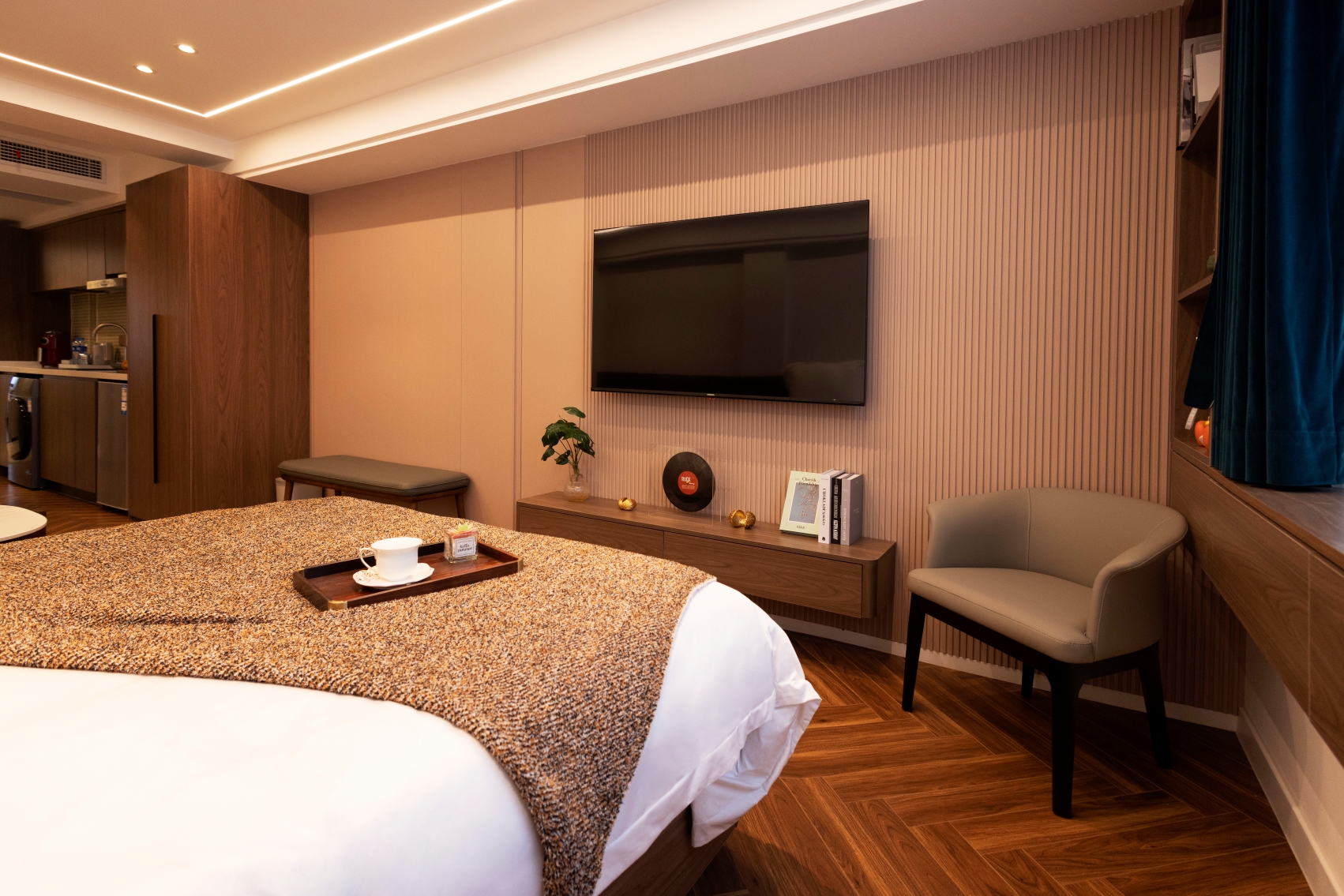 轻奢大床房(错层设计+独立厨房冰箱烘洗机)