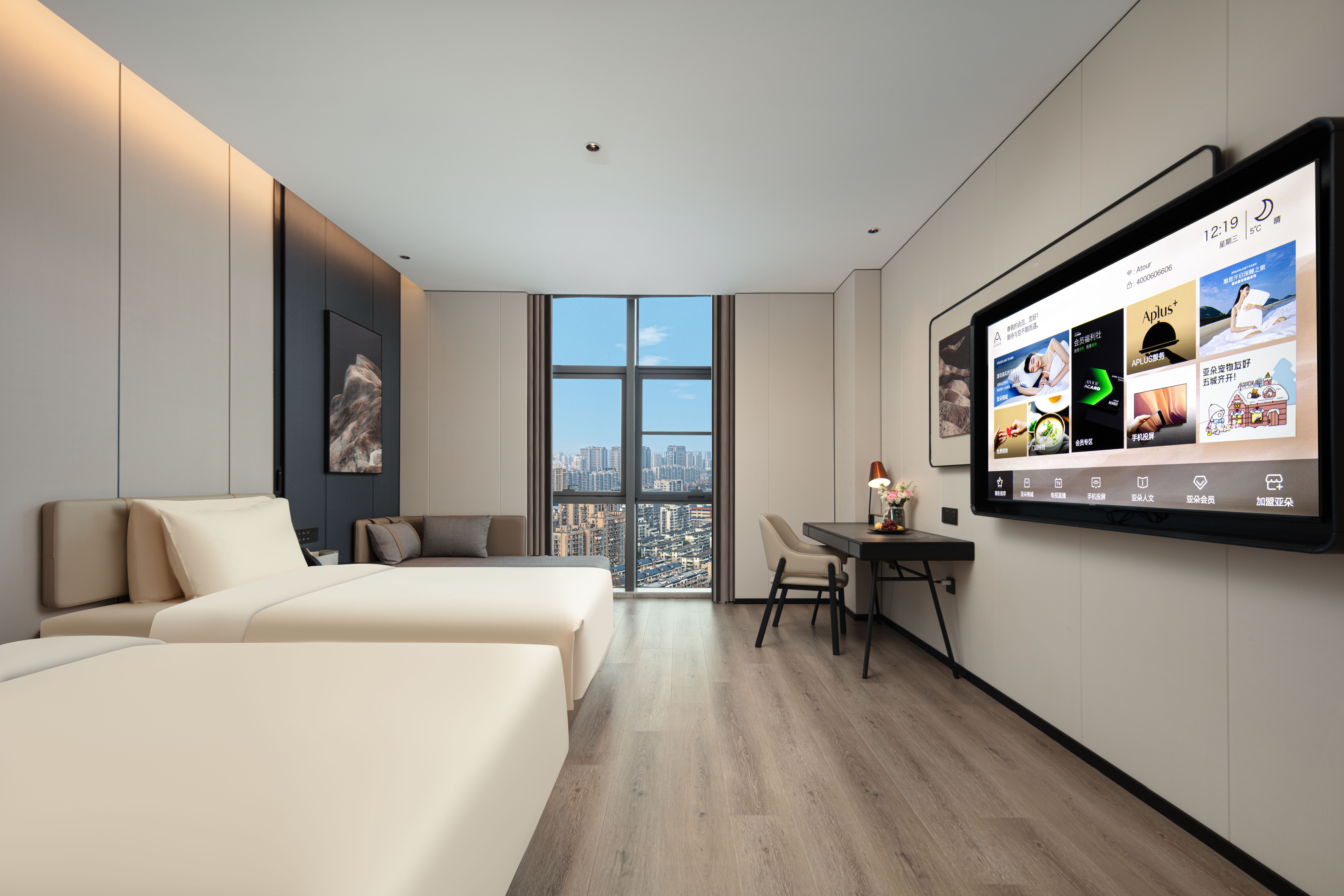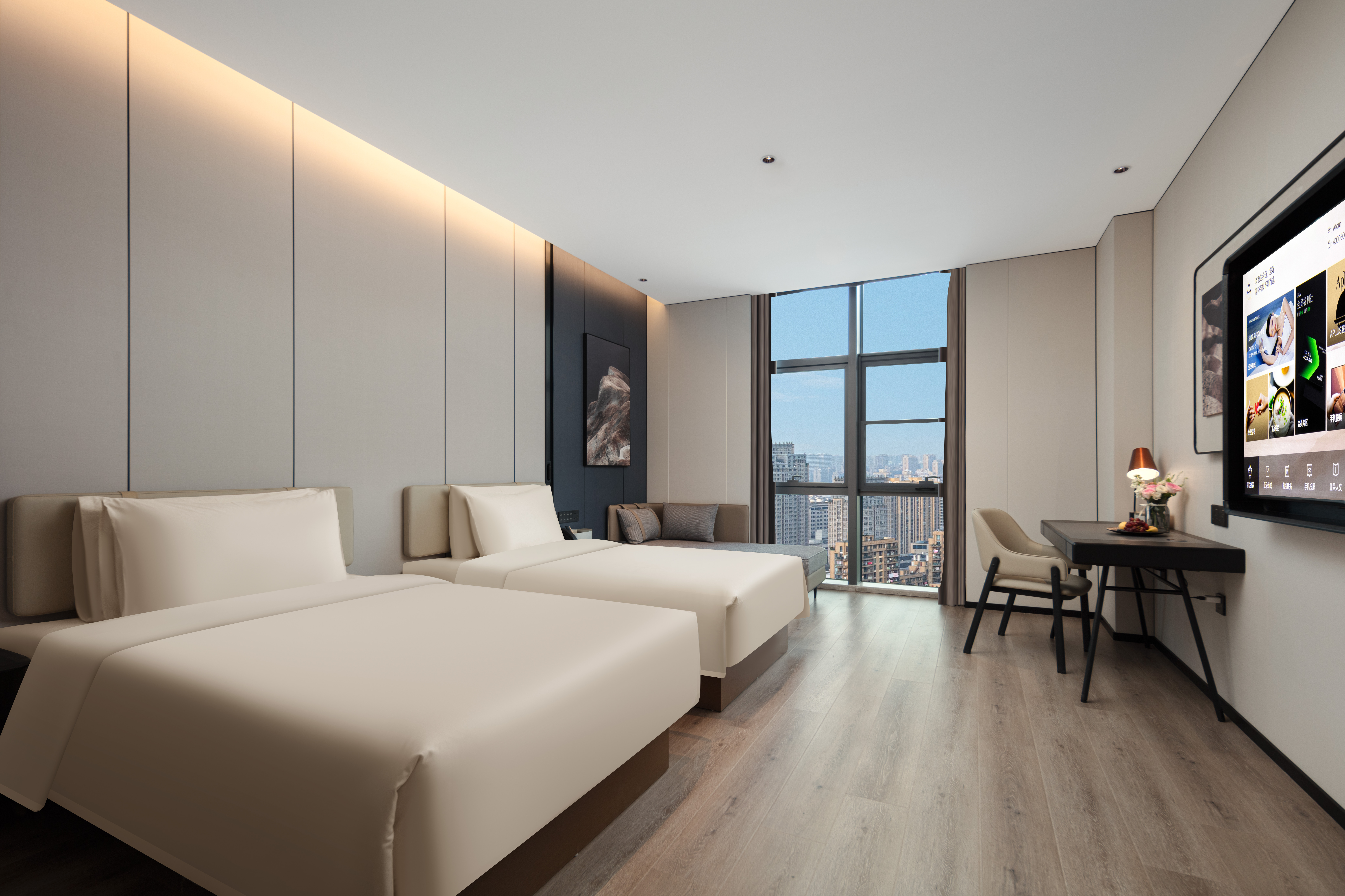 高级双床房(手机投屏+小冰箱)