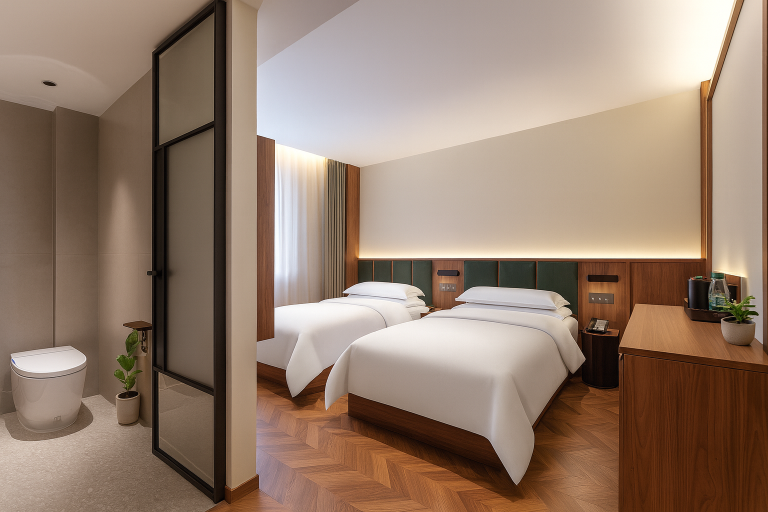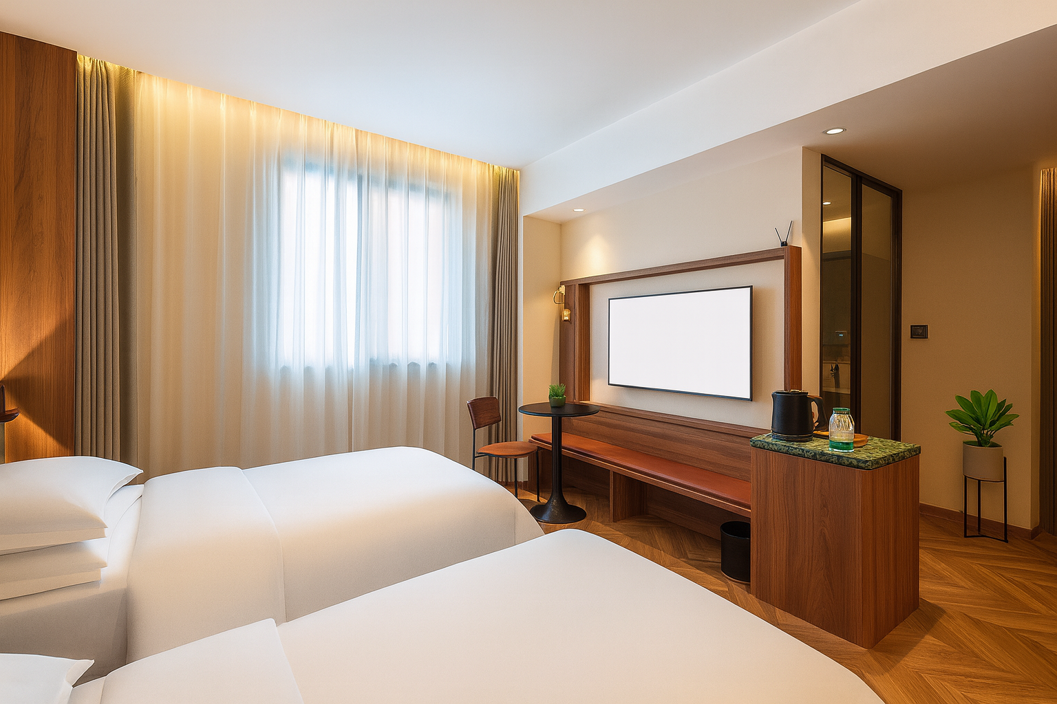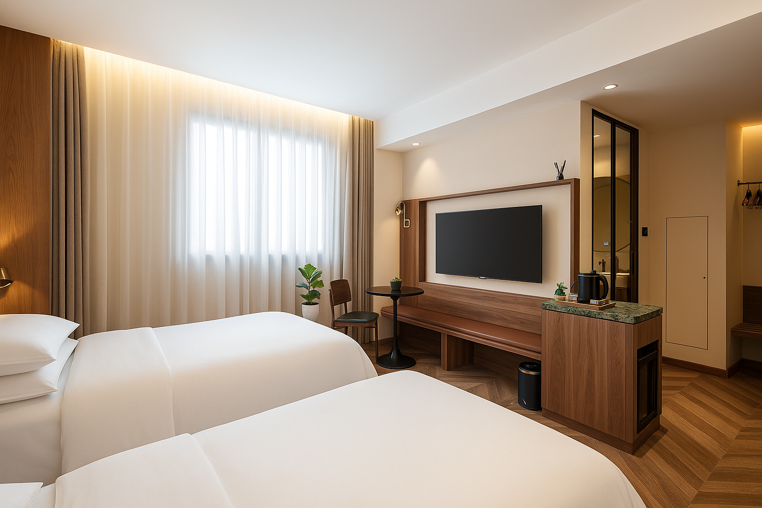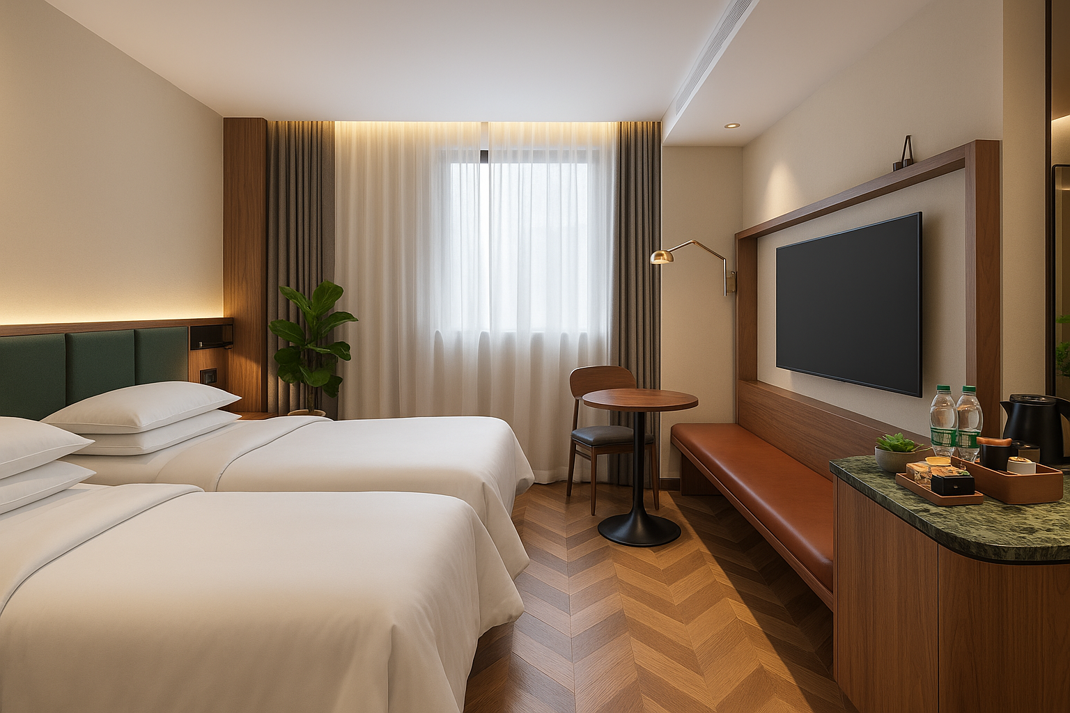 豪华阳光双床房「记忆深睡眠枕垫+迷你冰箱+办公配套」