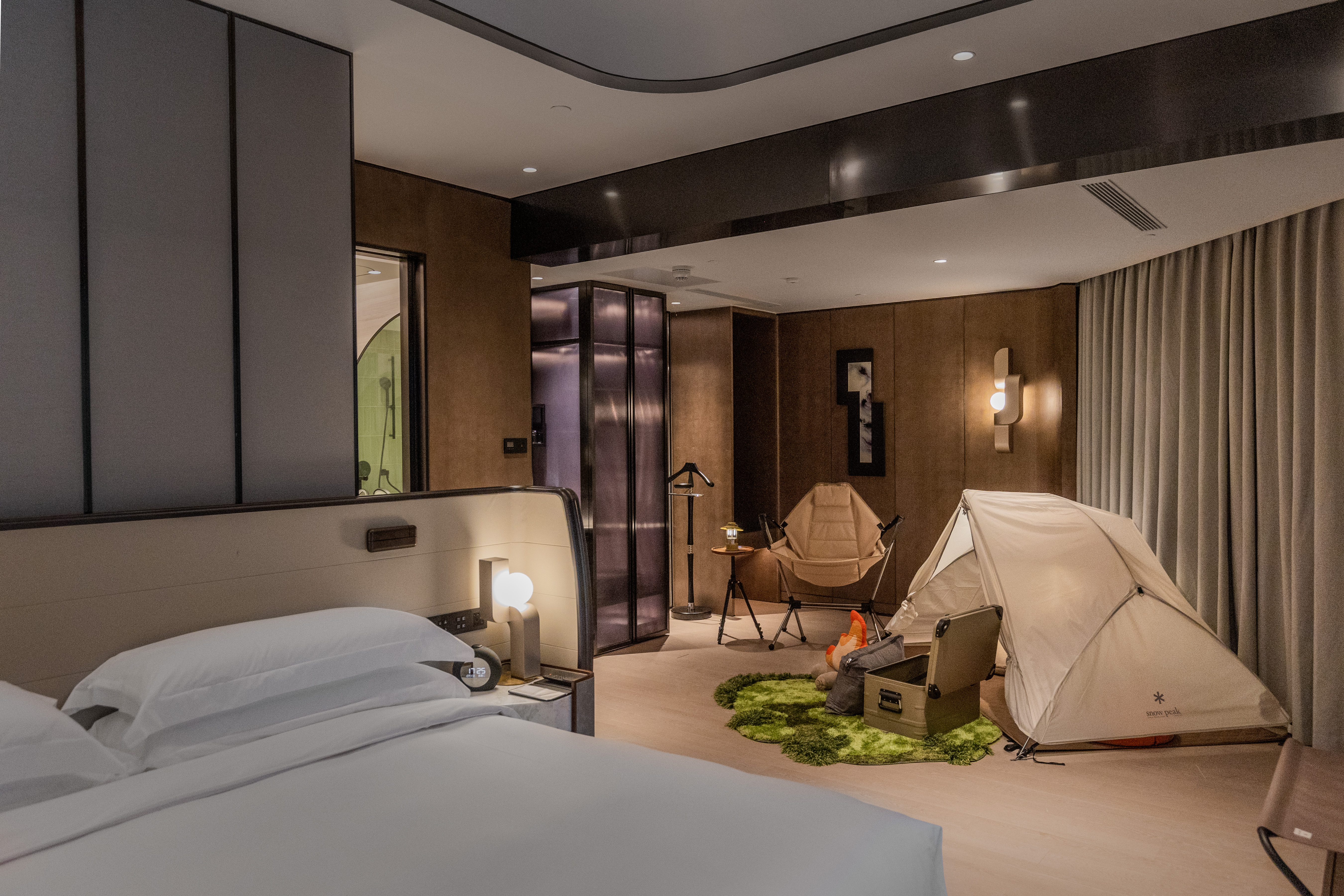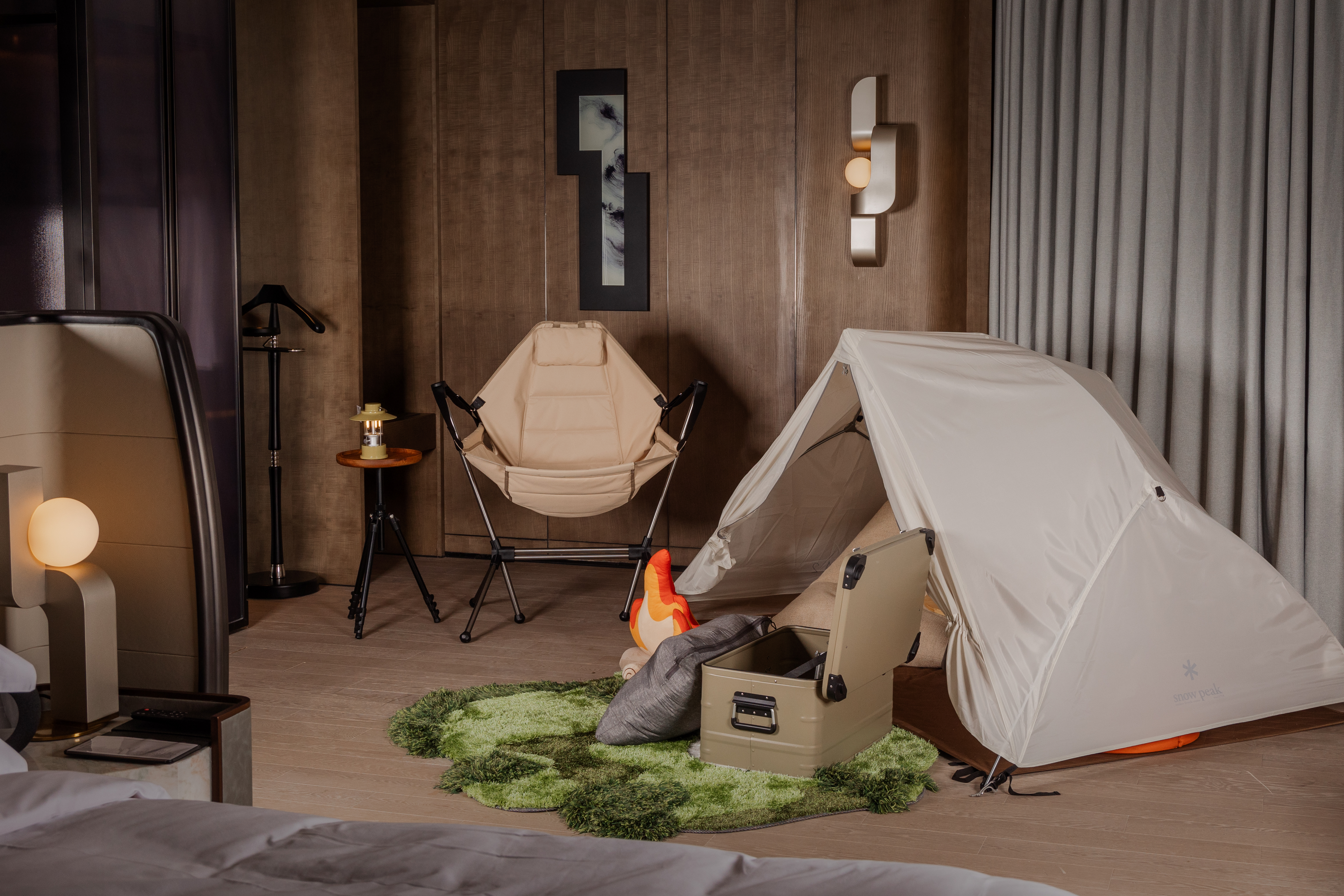 露营主题大床房 SnowPeak室内帐篷·手冲壶·户外桌椅