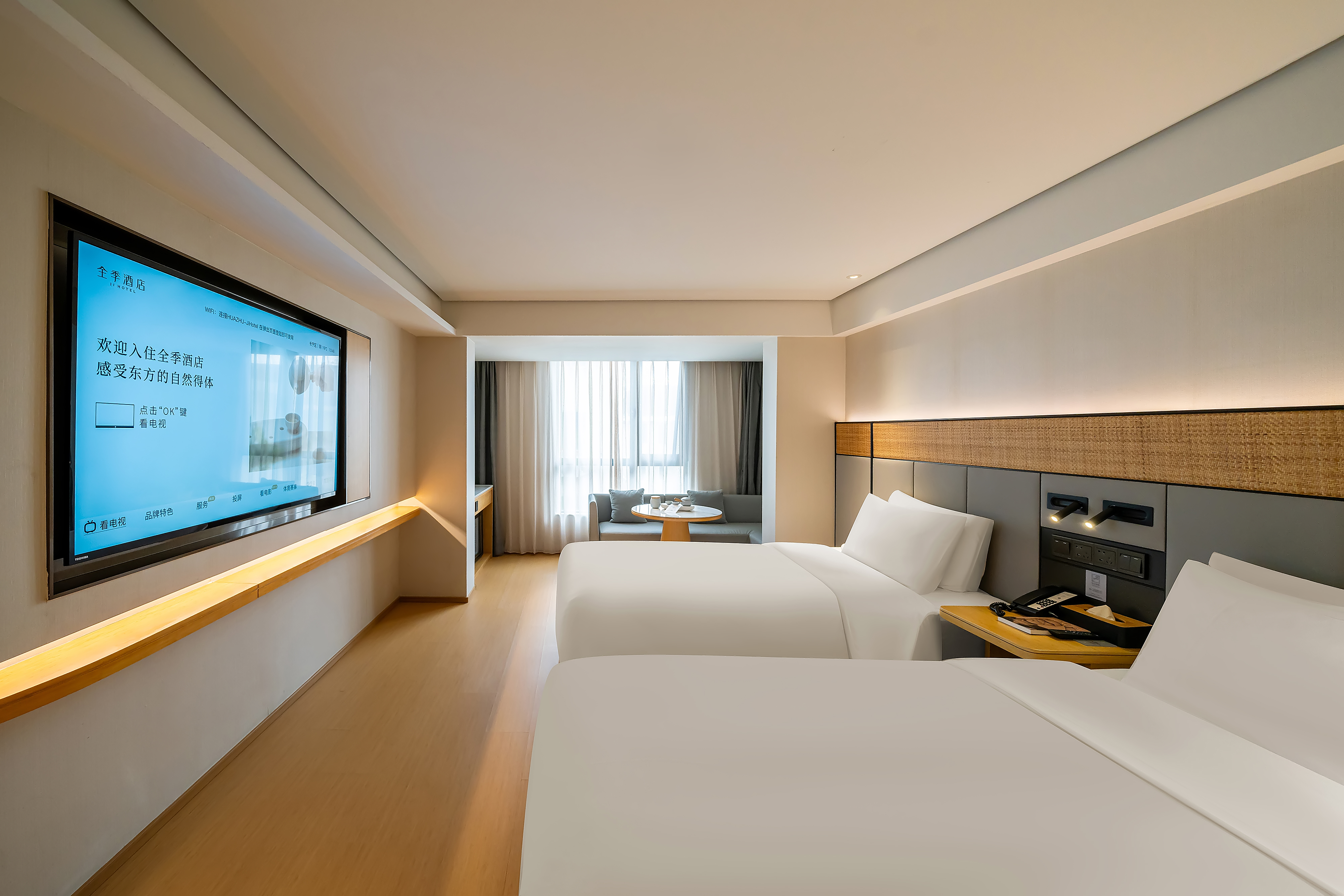 双床房(手机投屏+小冰箱)
