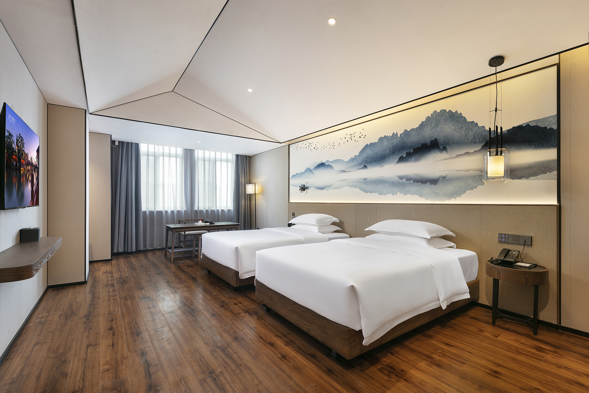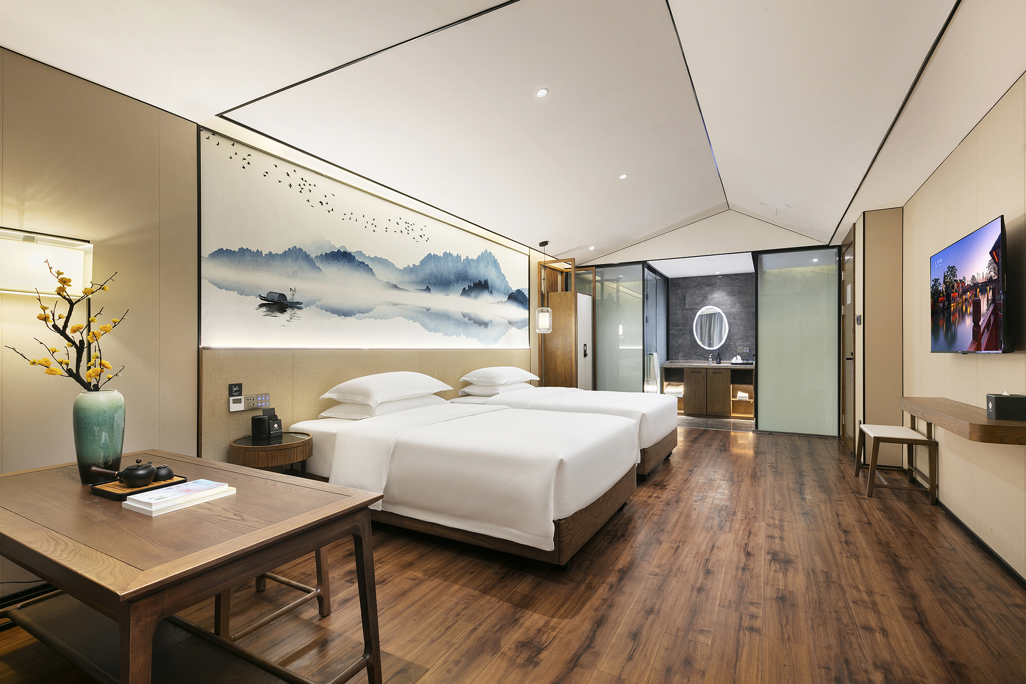 品学·江南坡顶双床房(智能客控+乾湿三分离)