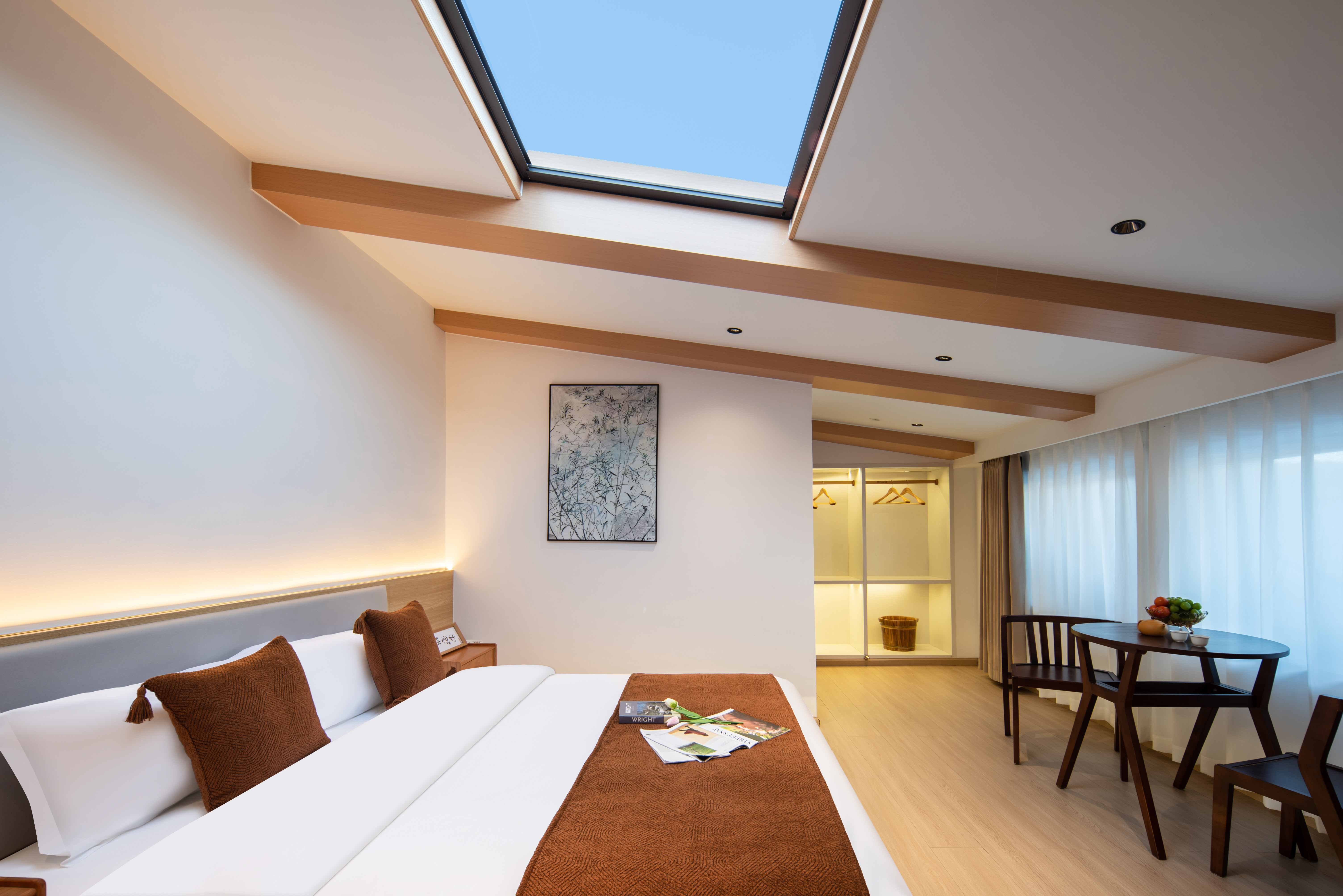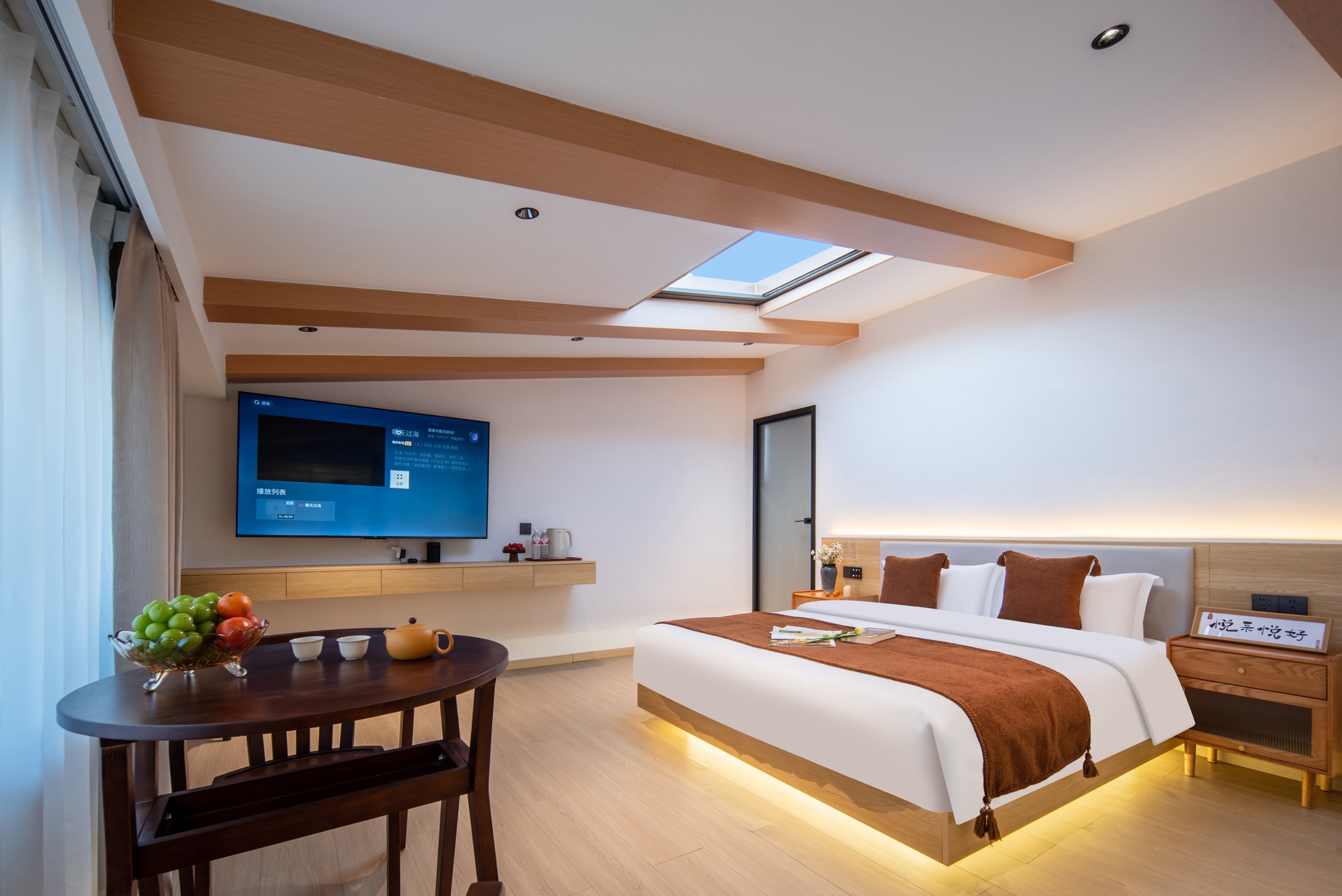 悦知·阳光浴缸豪华大床套房(智能客控丨恒温水地暖丨加湿器丨CONFU吹风机丨鼻吸式供氧丨65寸超清投屏电视丨深睡舒眠护脊乳胶床垫丨足浴桶)