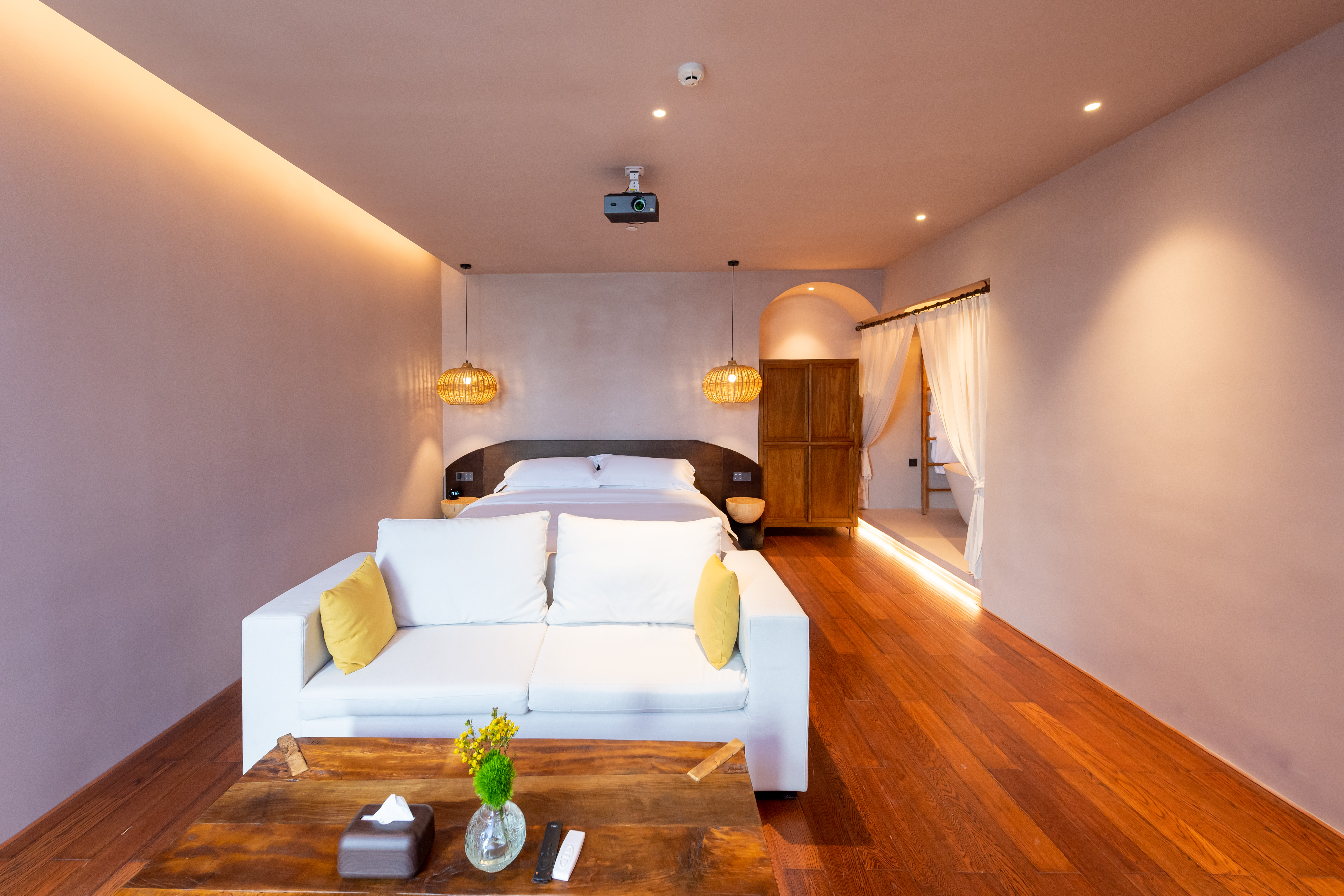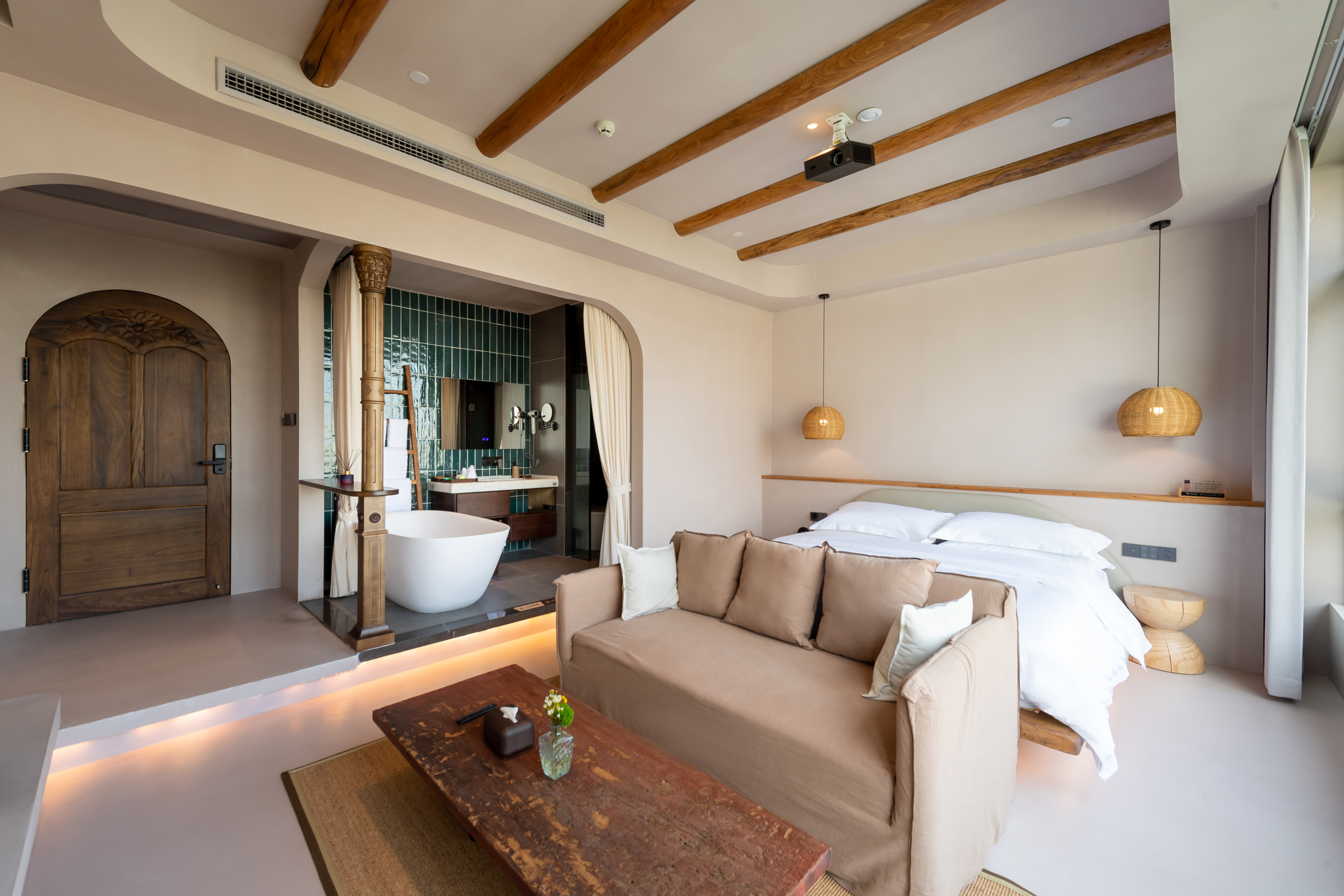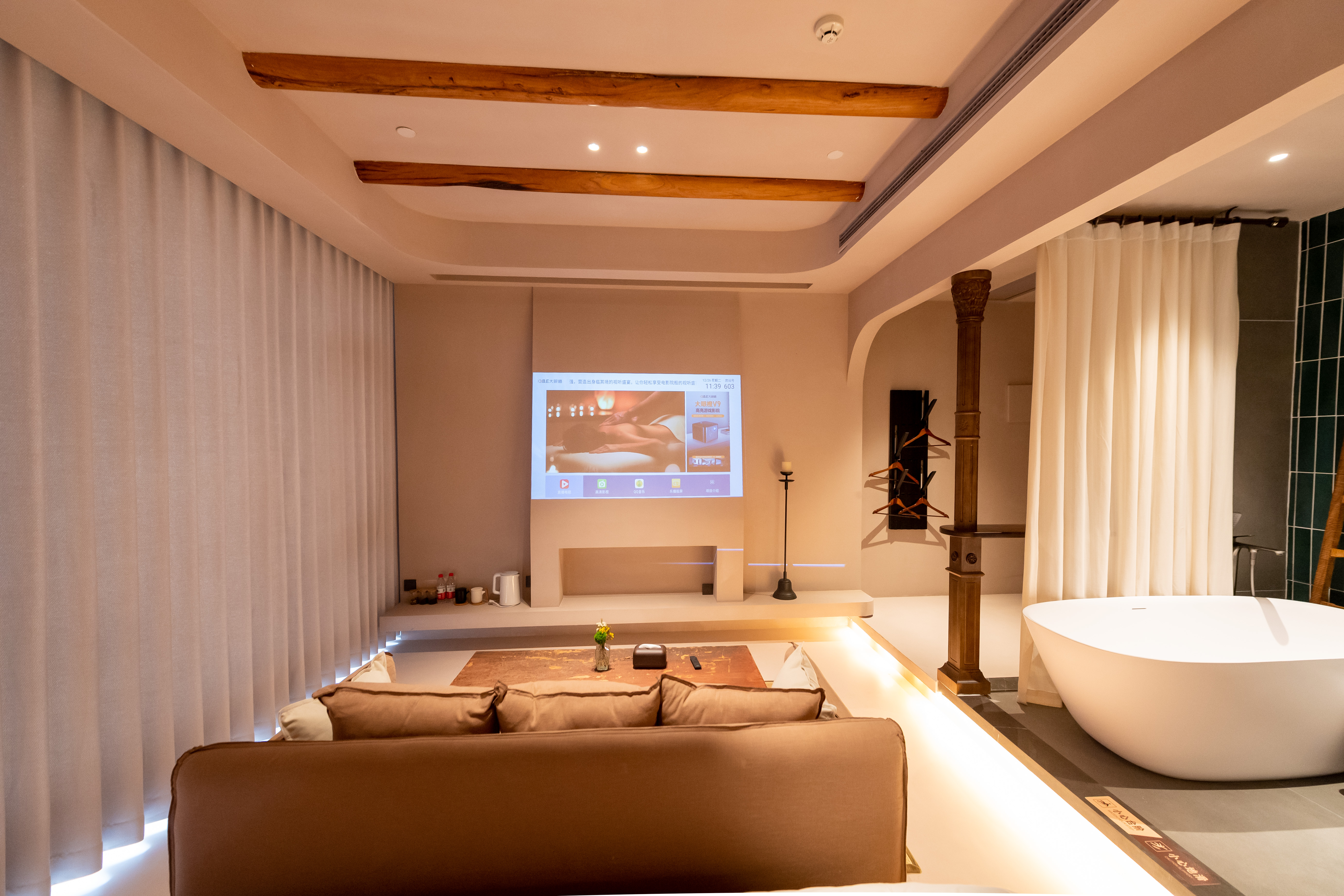 Light Luxury Double Bed Room With Full Smart Home, Tub, Large Screen, And Tea Lounge