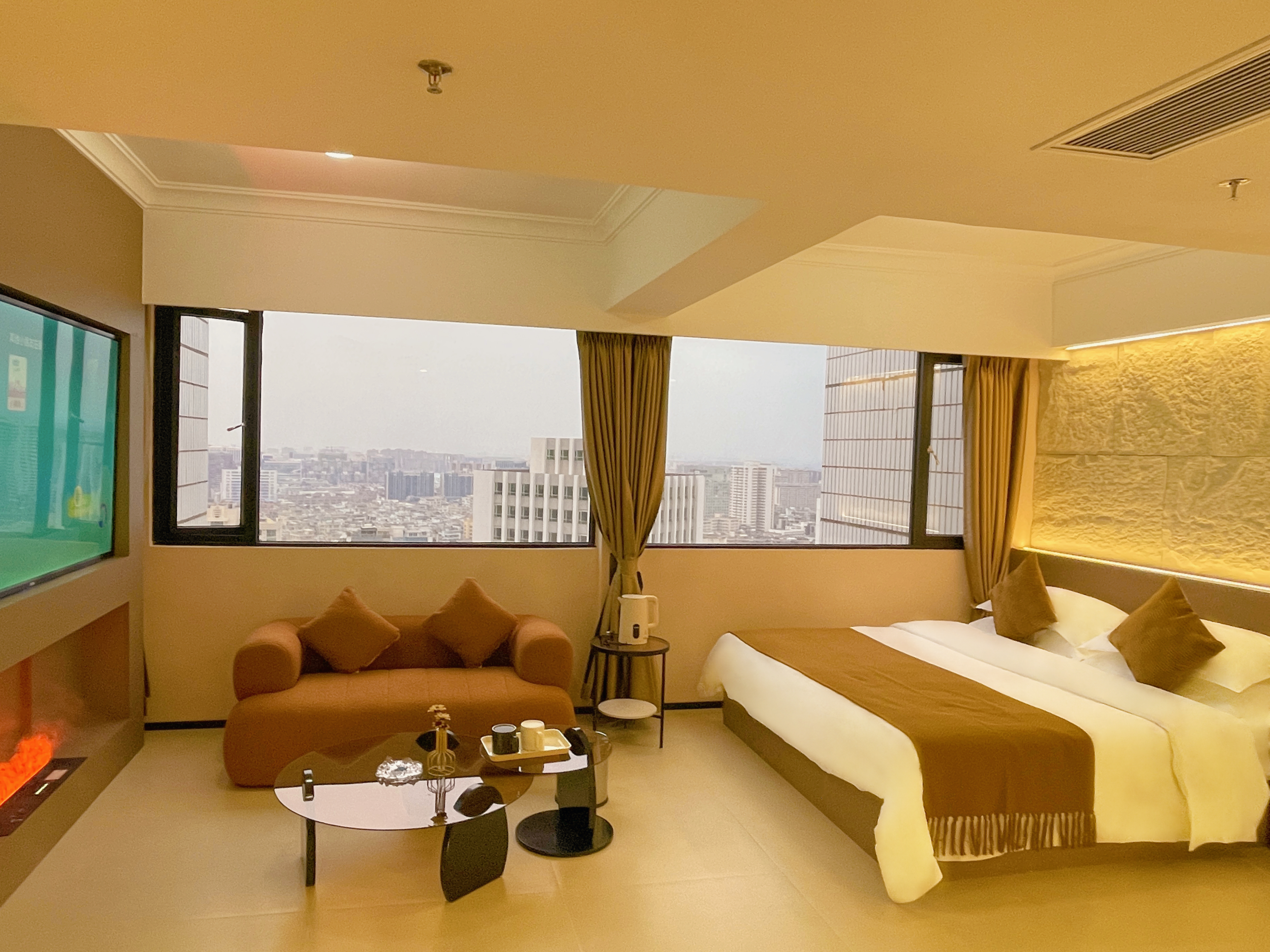 雲端丨超享城景大床房(暖氣+高空觀景+豪華浴缸+3d霧化壁爐加濕器)