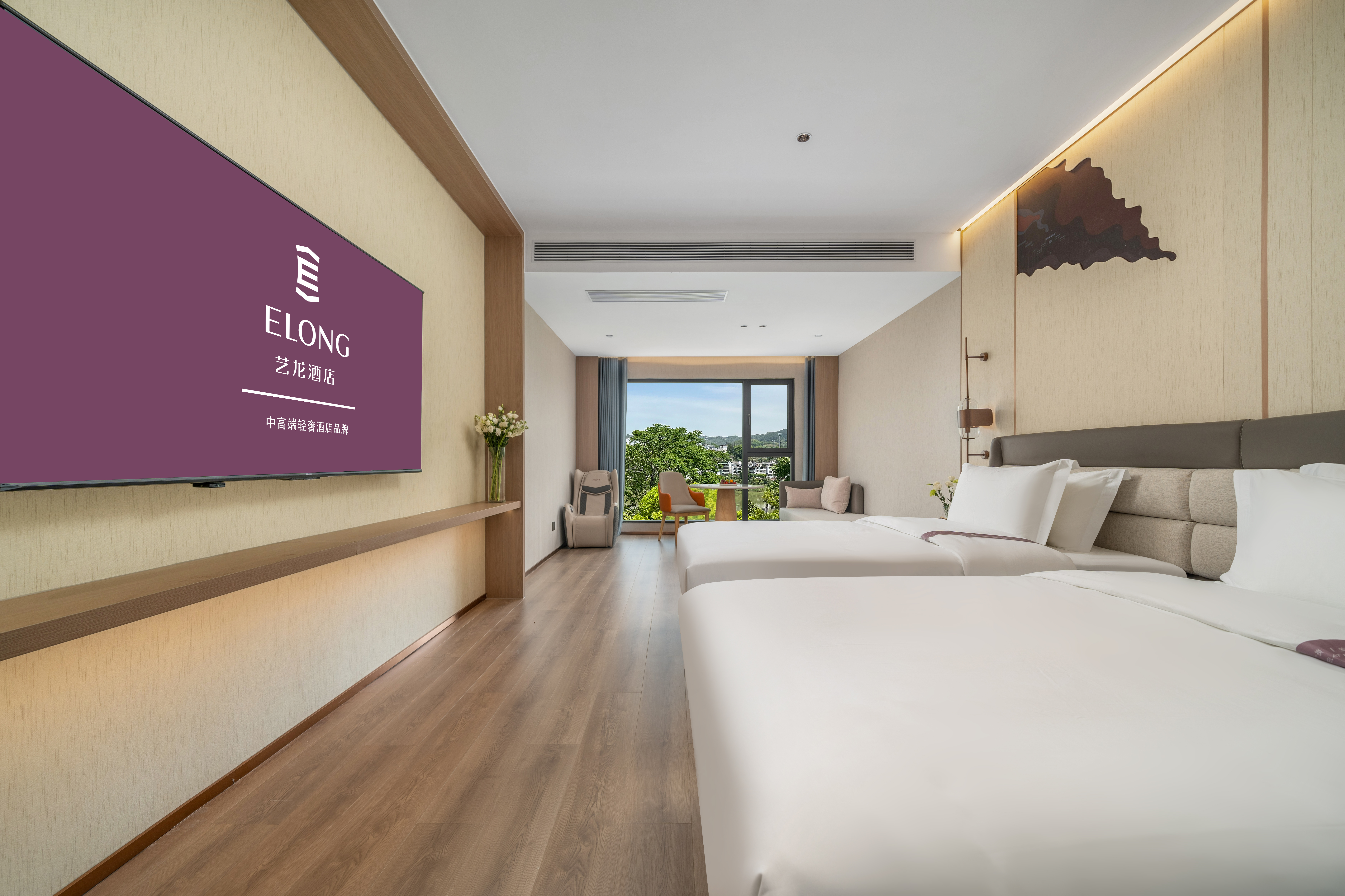 艺心?180度临江双大床房|梦百合床垫+智能声控