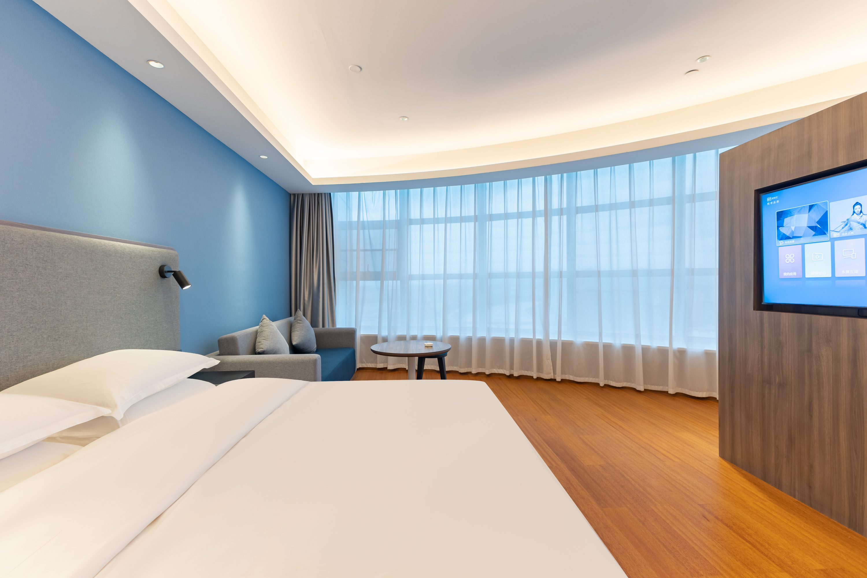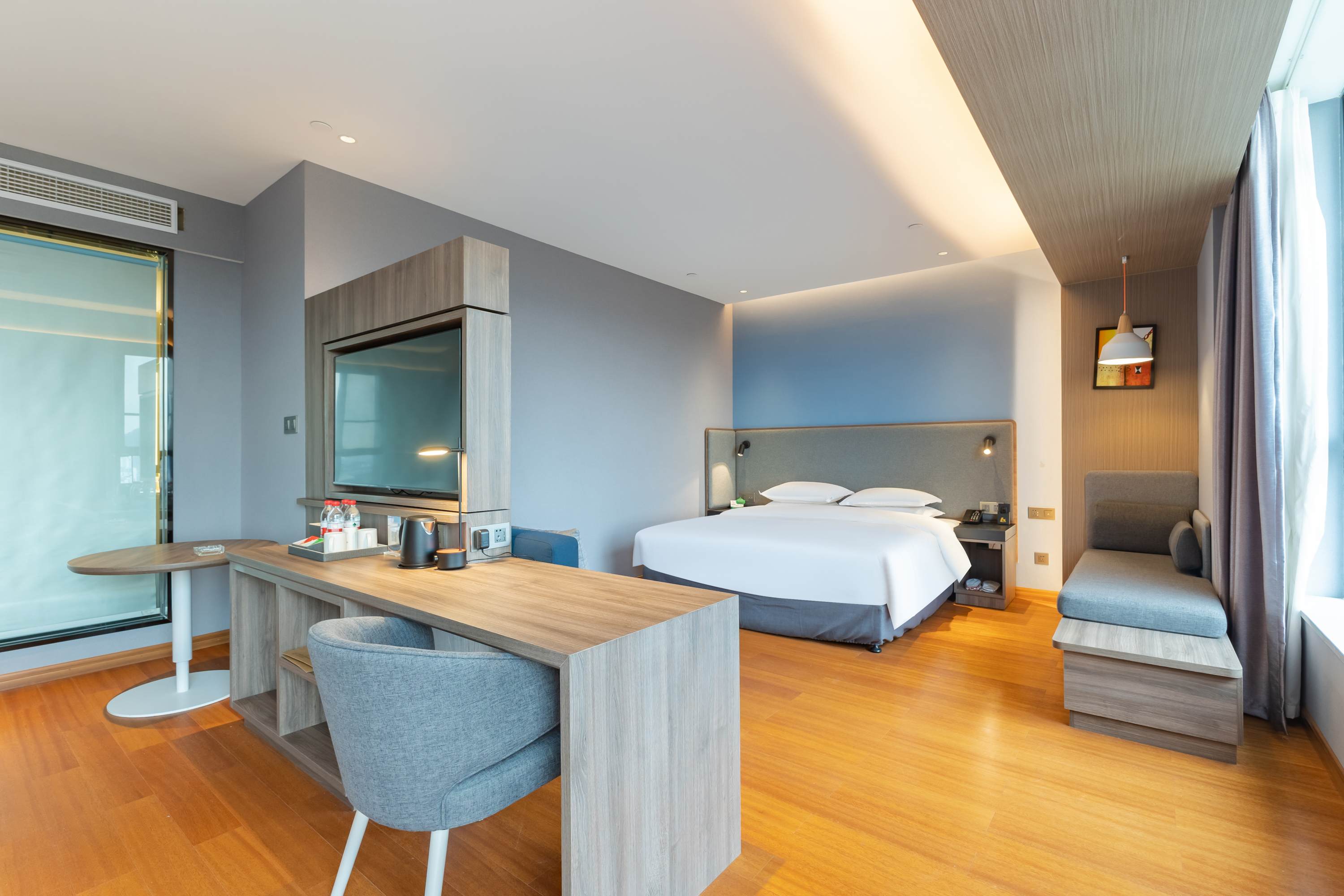 江景高级大床房【高清电视+亲肤床品+休闲桌椅沙发】