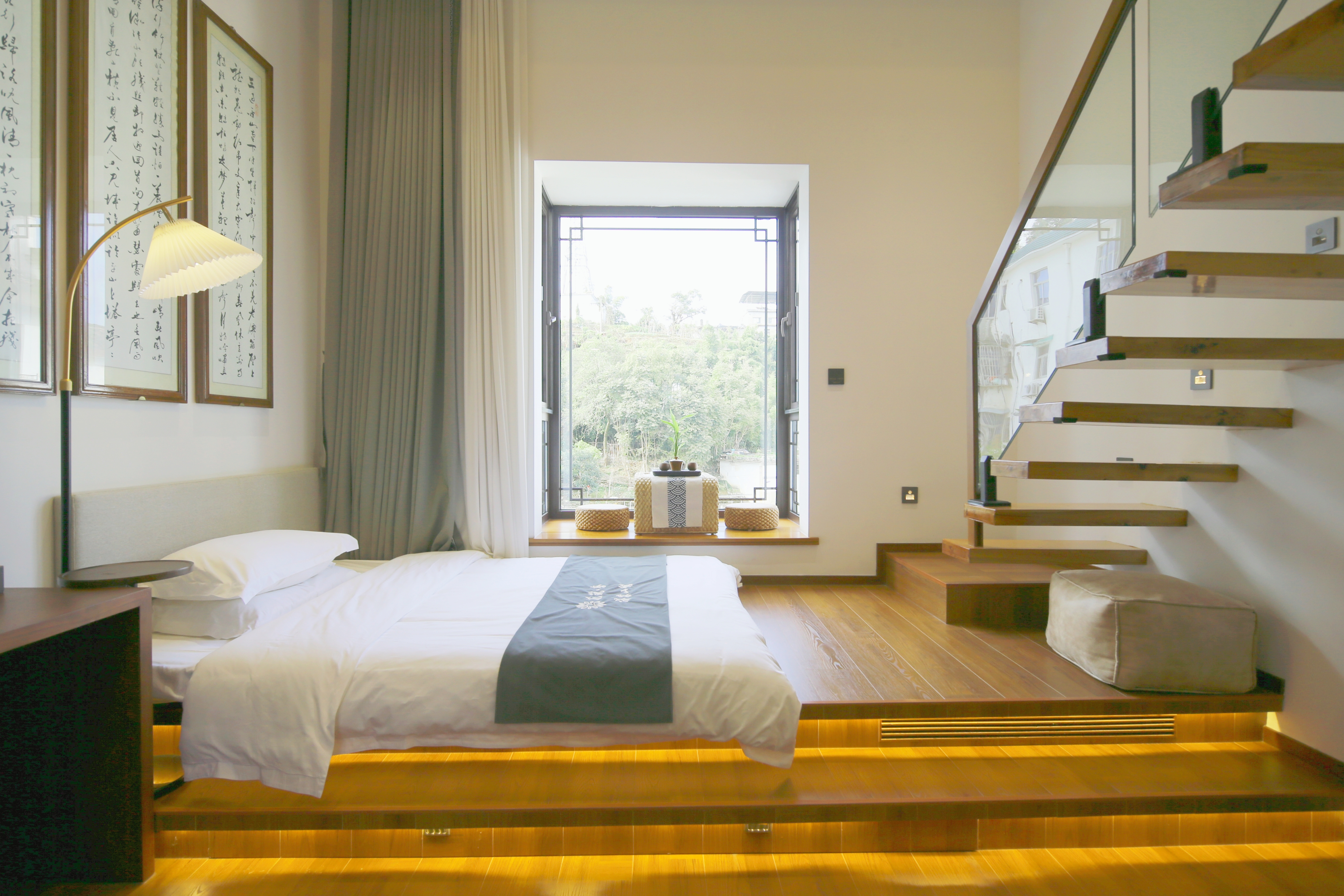 问山·天井听雨大床房丨全屋地暖+米家智能+戴森+高清投影