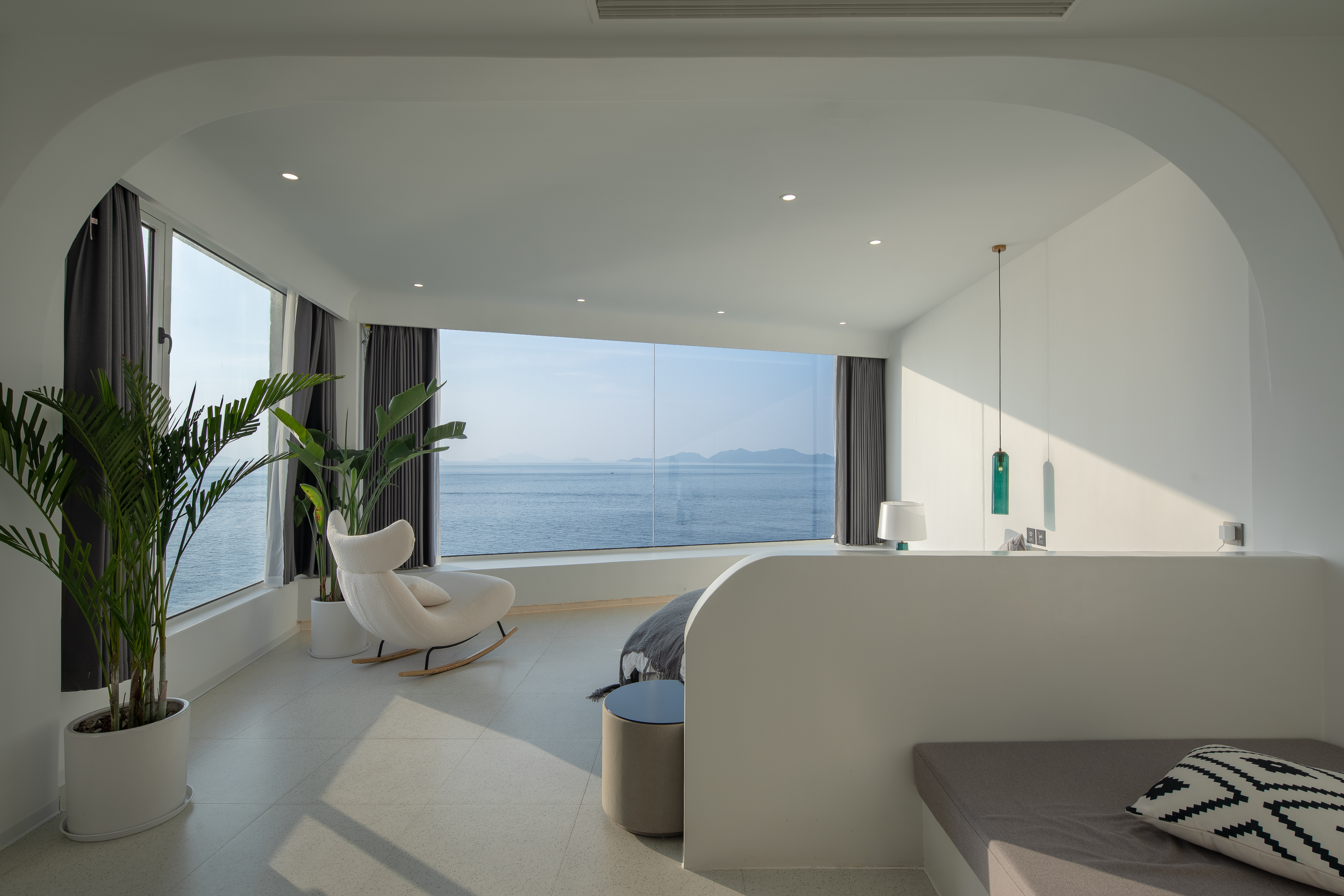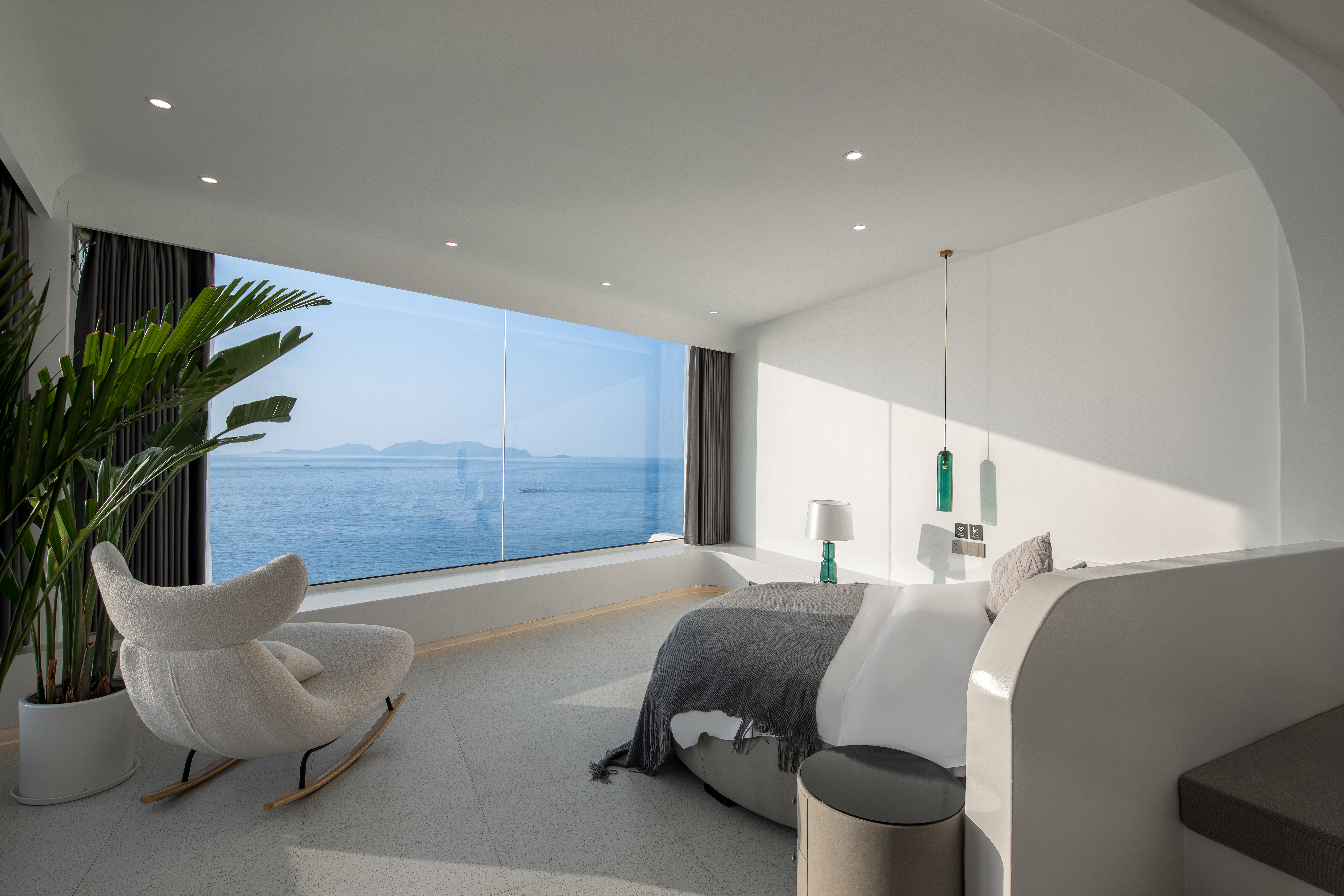 落日泳池海景圆床房带庭院