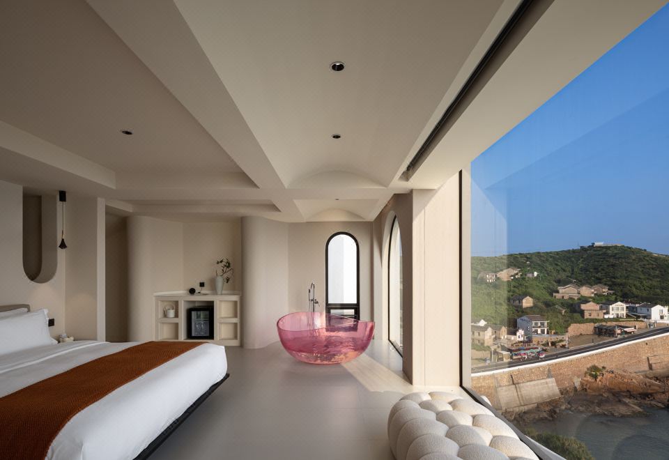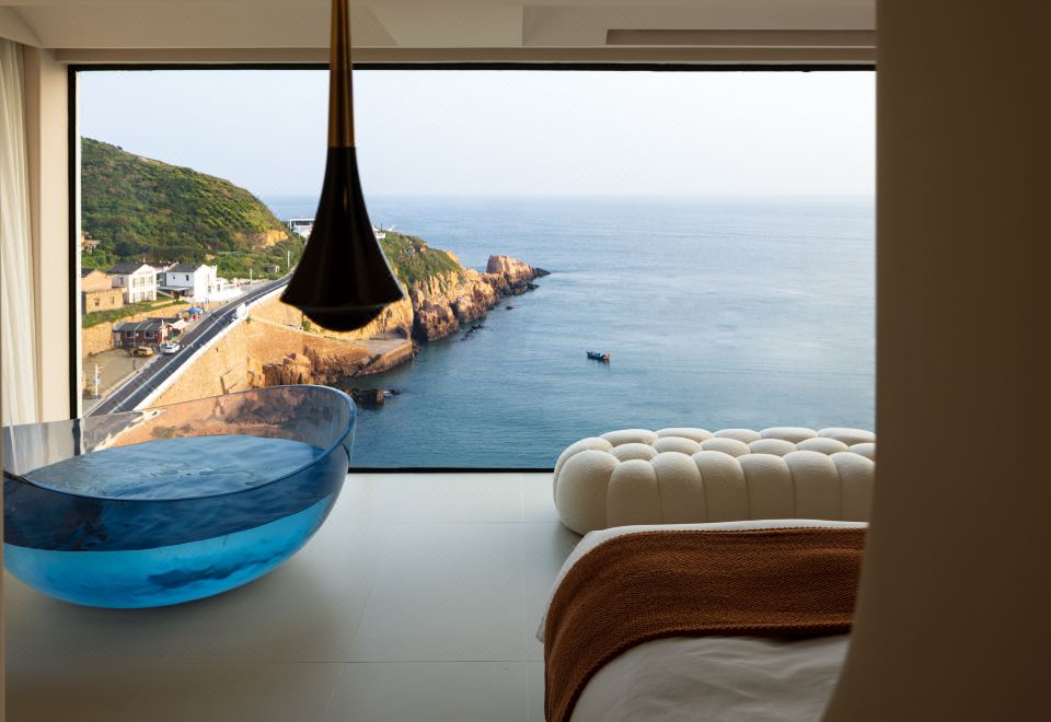 忆海·复式花园泡池大床房【蓝色浴缸+落地海景】