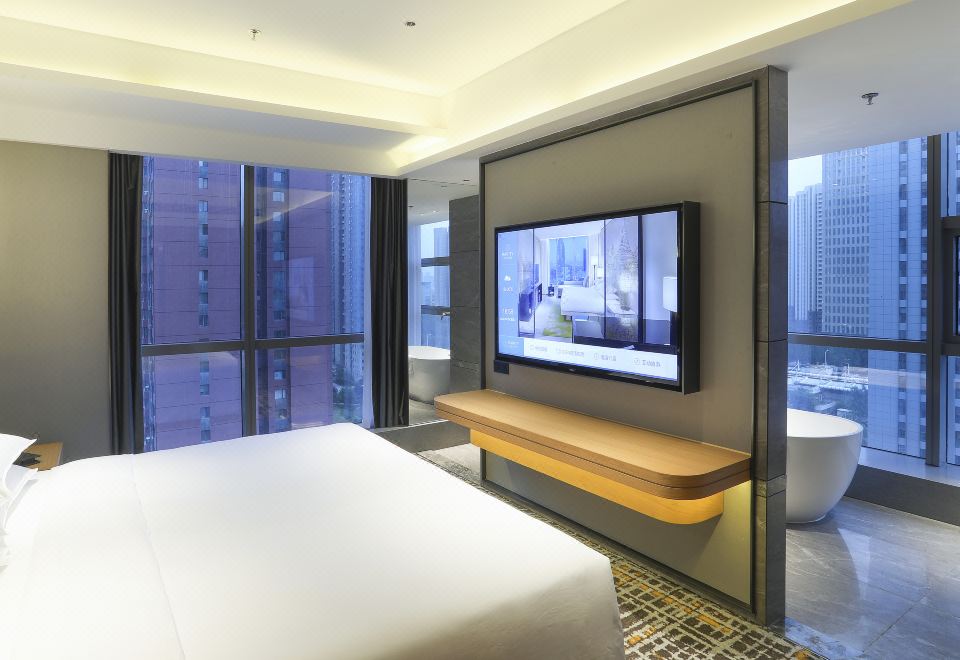 Party-Perfect Queen Bed Suite (Business Lounge + Party Table + Multipurpose Space + Bluetooth Speaker + Smart Toilet)