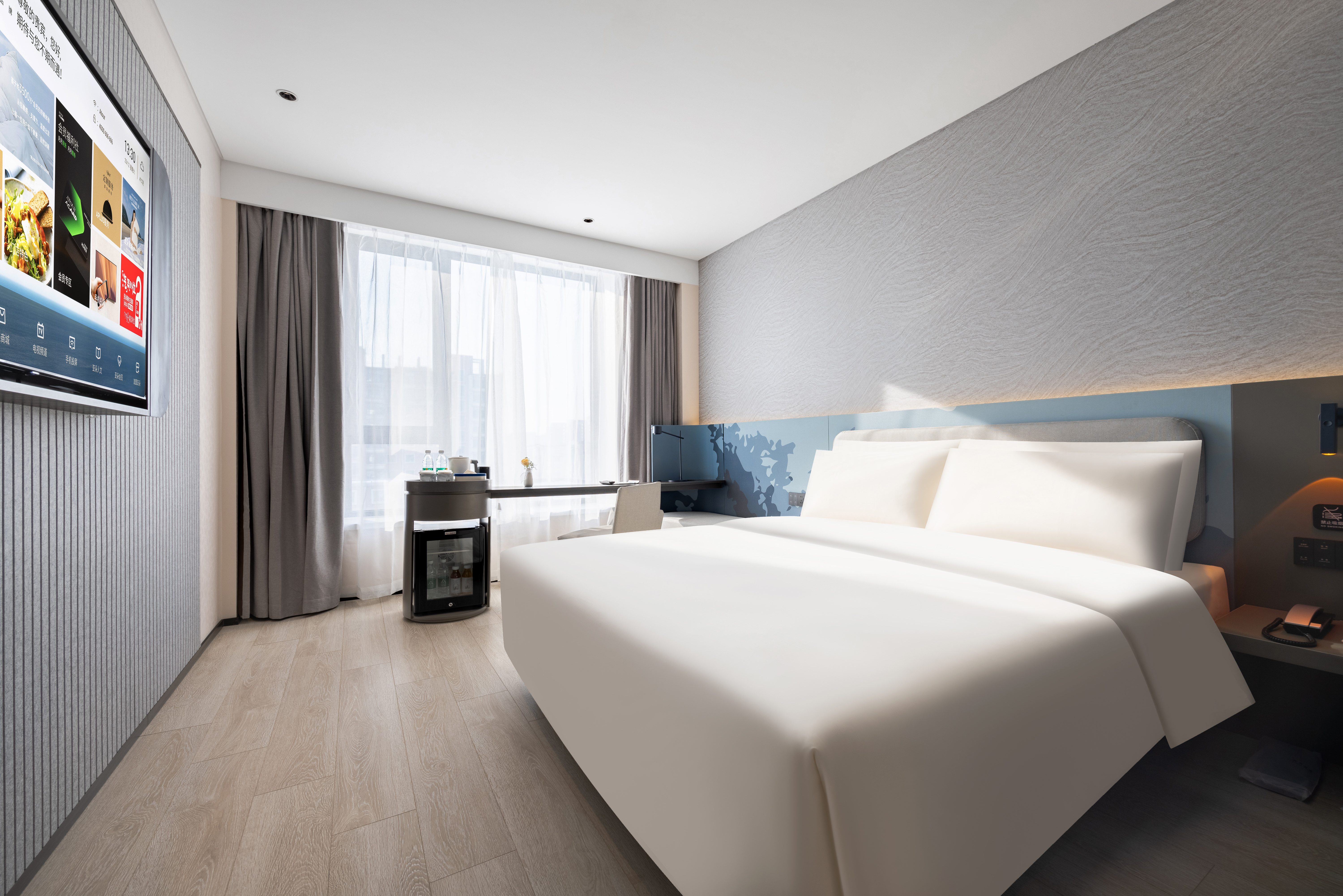 Guestroom (Double bed)small refrigerator+mobile phone screen