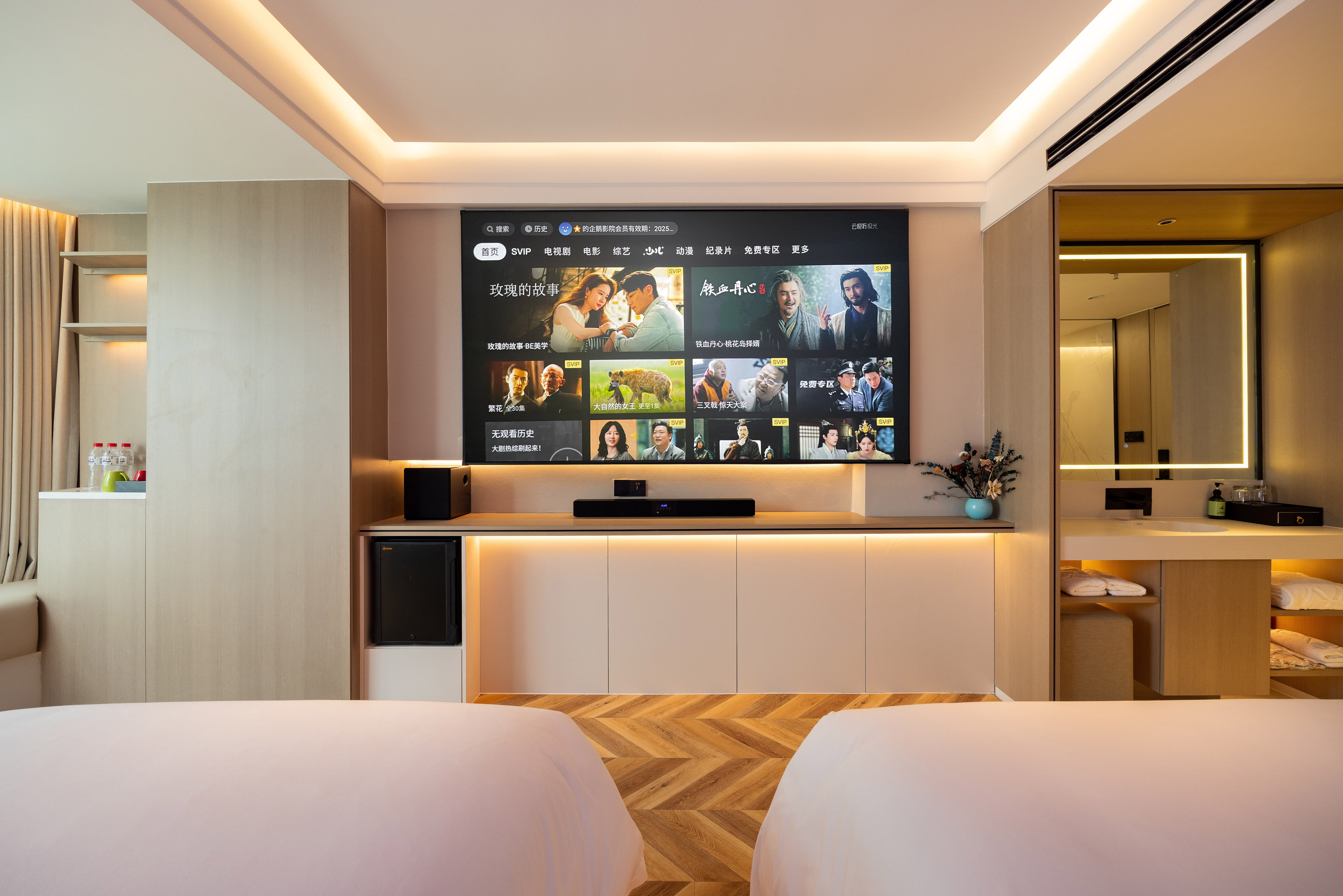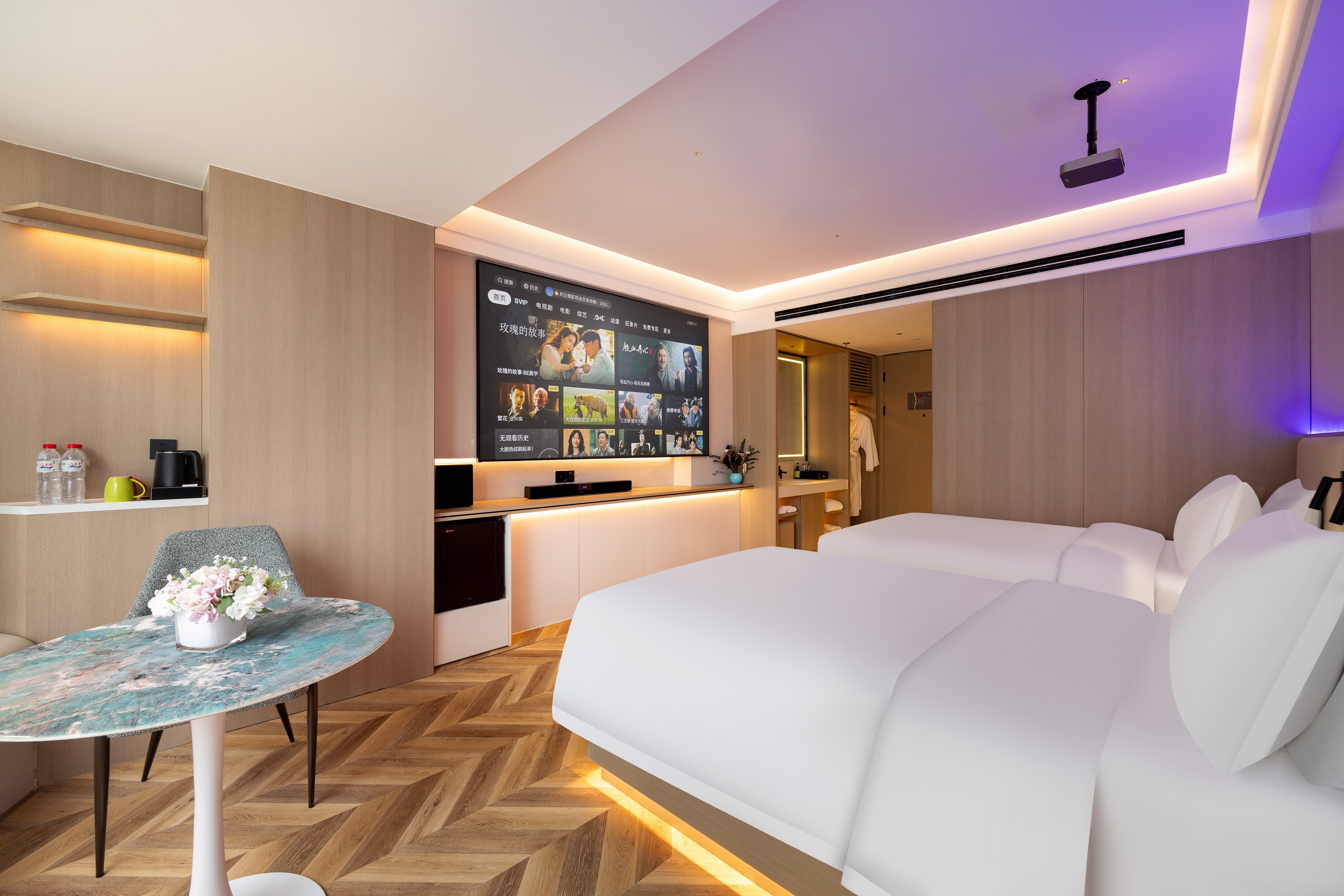 光影祕境雙床房(極米投影手機投屏+極光雲視聽會員+智能客控+小冰箱)