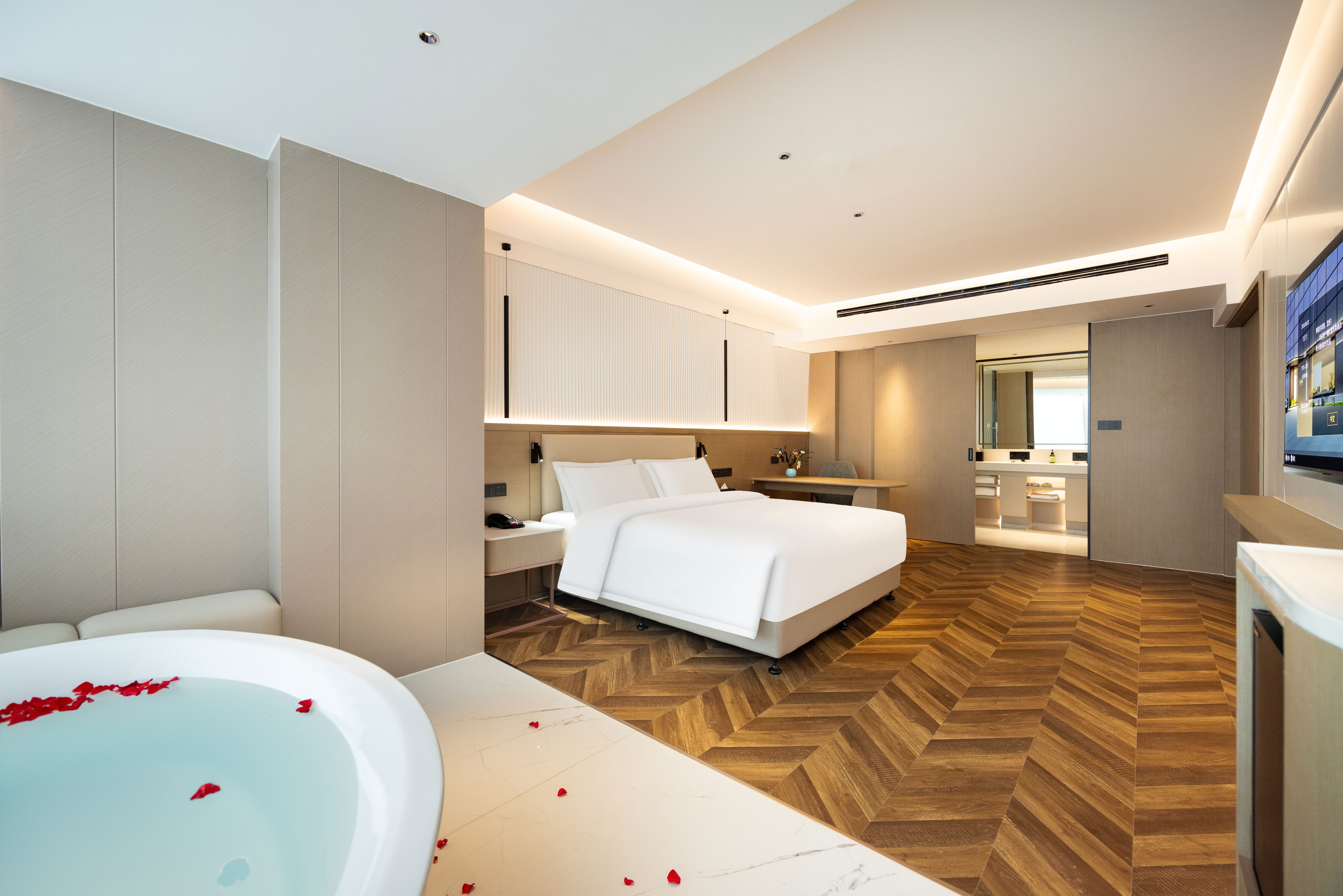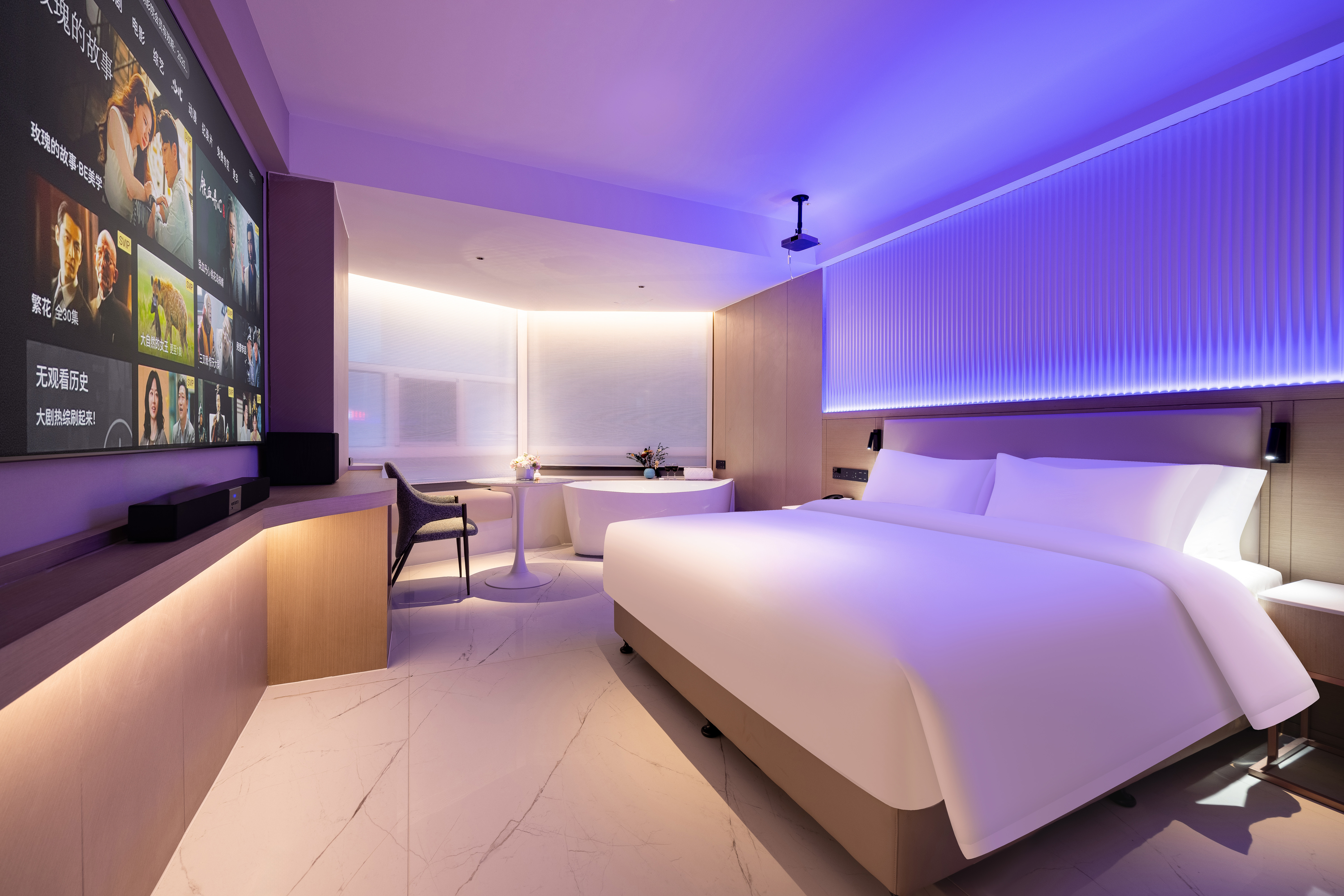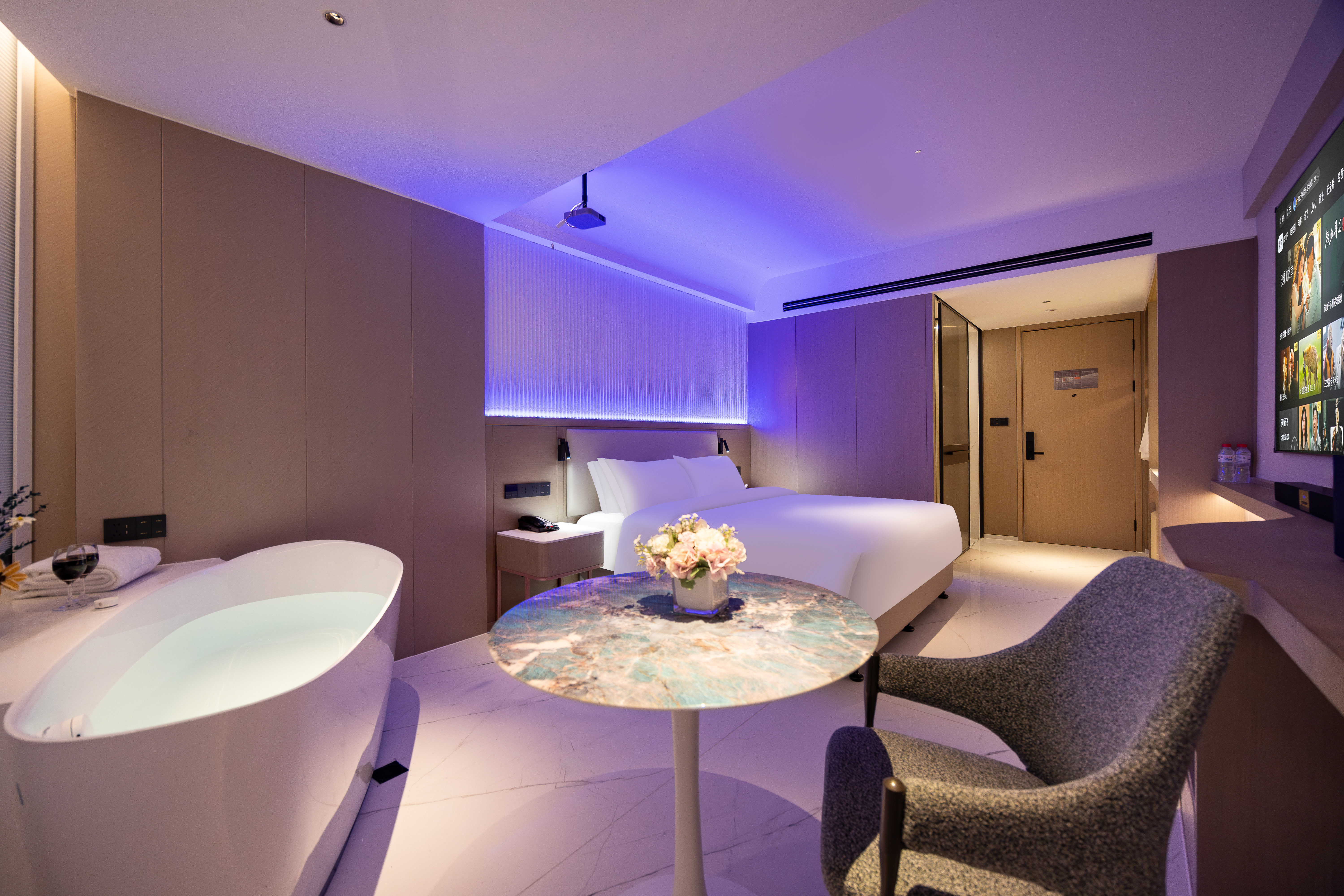 原湯浴缸極米多媒體大床房(極米投影手機投屏+極光雲視聽會員+小冰箱)