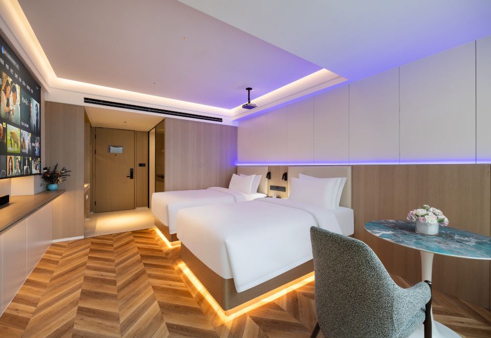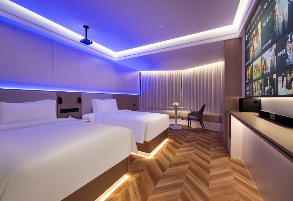 光影祕境雙床房(極米投影手機投屏+極光雲視聽會員+智能客控+小冰箱)