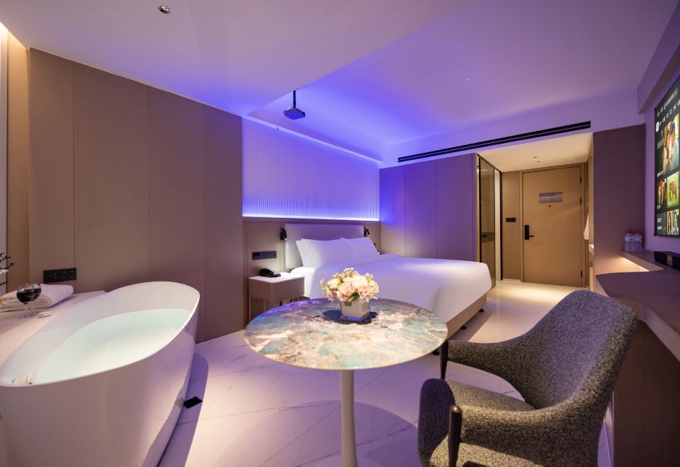 原湯浴缸極米多媒體大床房(極米投影手機投屏+極光雲視聽會員+小冰箱)