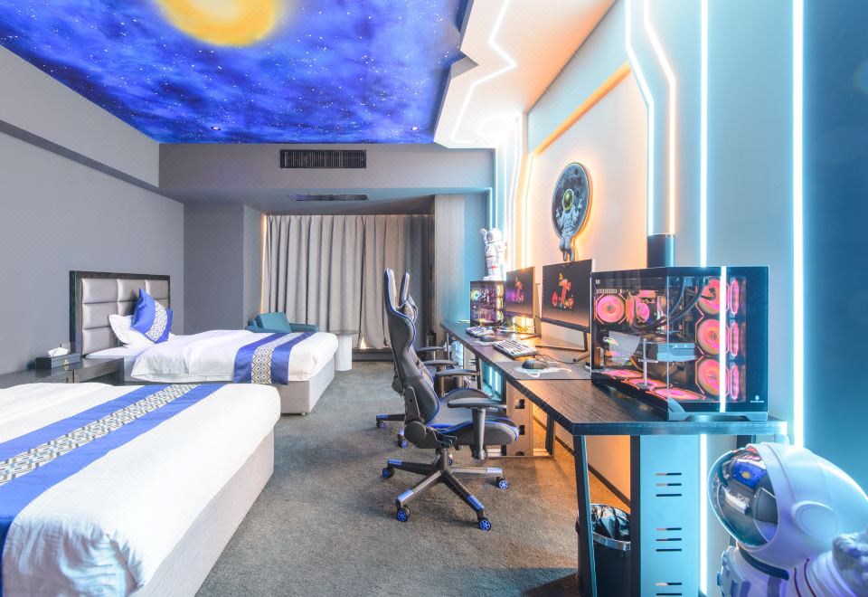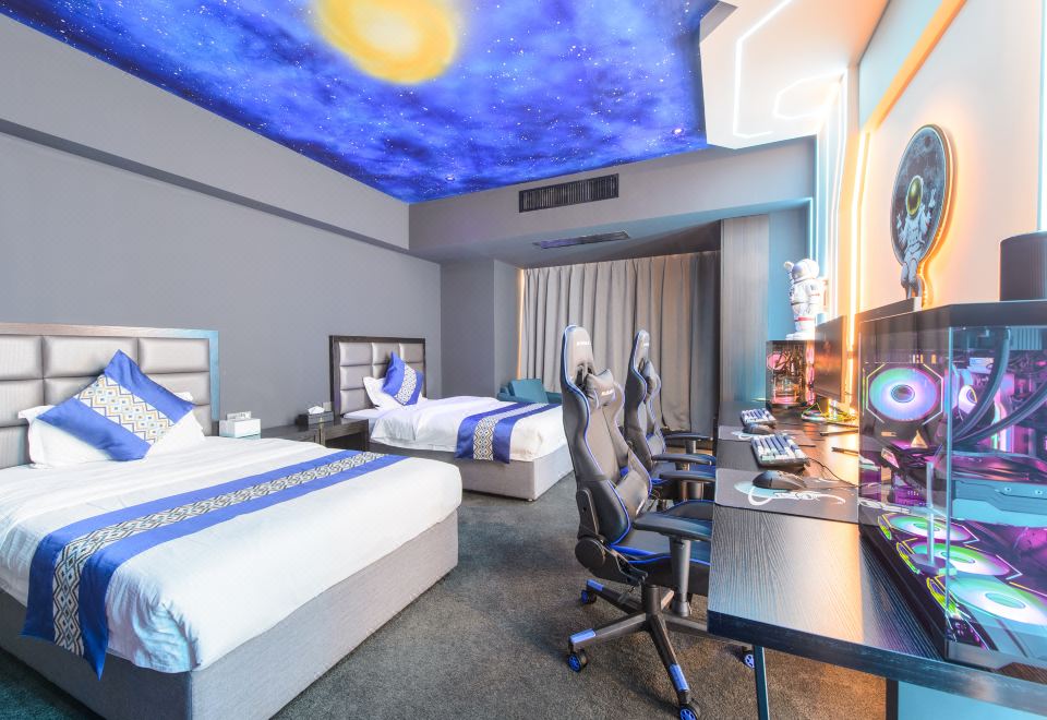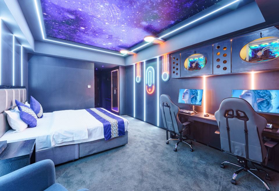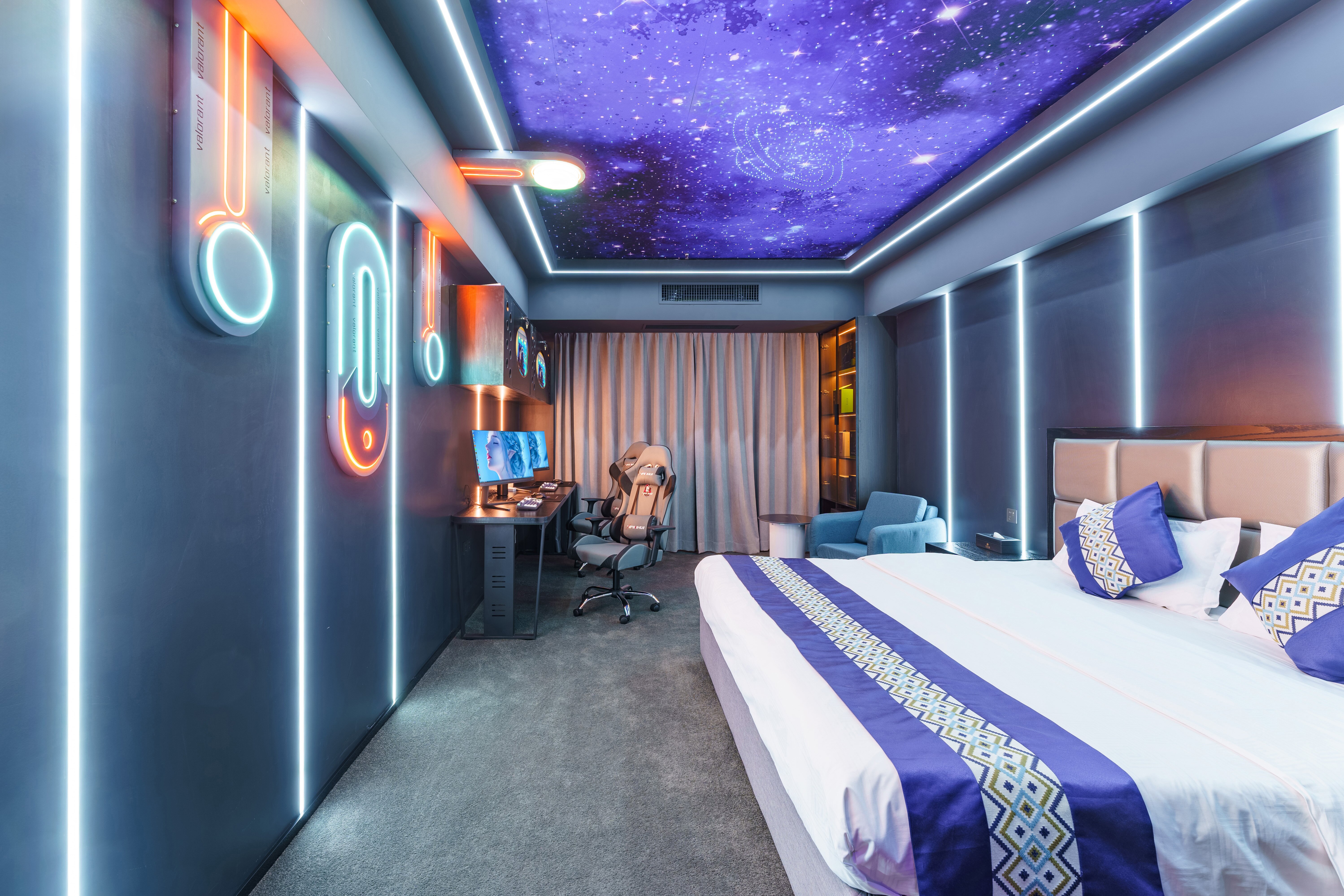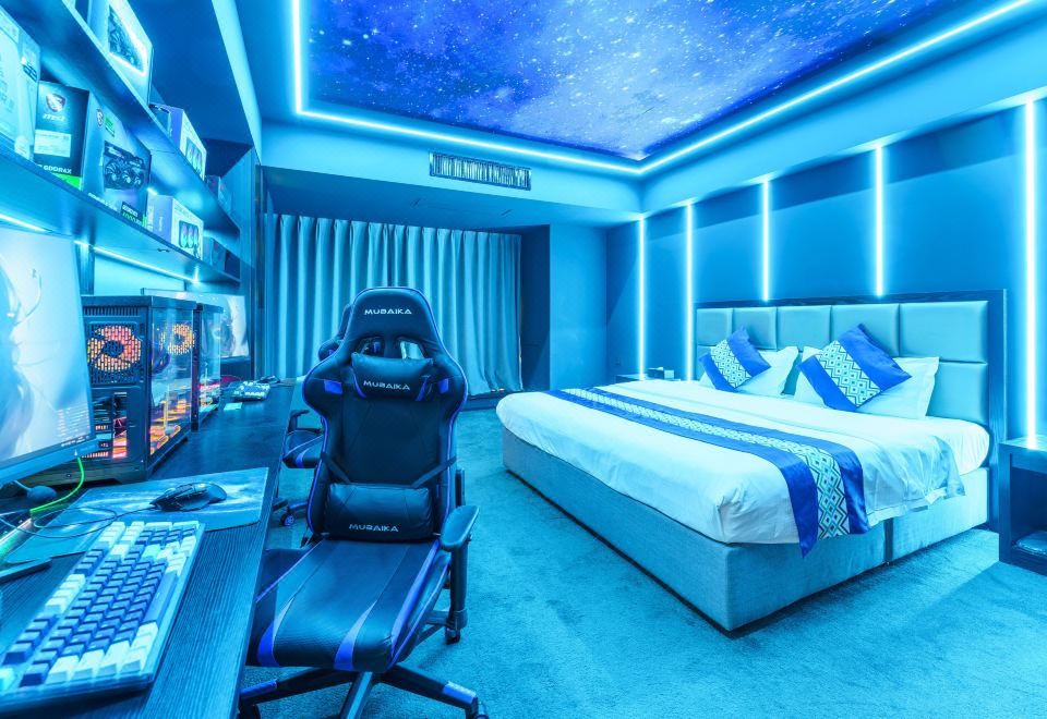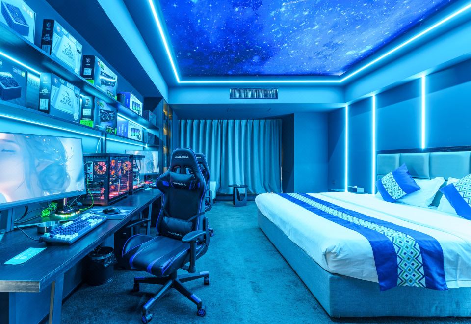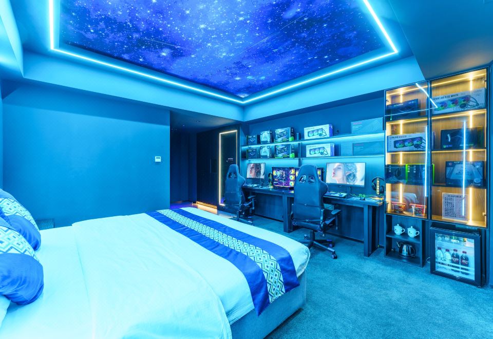 情侶星空探祕大床電競房(RTX4080S顯卡+i7-13700KF處理器+27寸飛利浦2K240Hz顯示器+32G內存+腹靈光魔980鍵盤+羅技鼠標+雷蛇耳麥)
