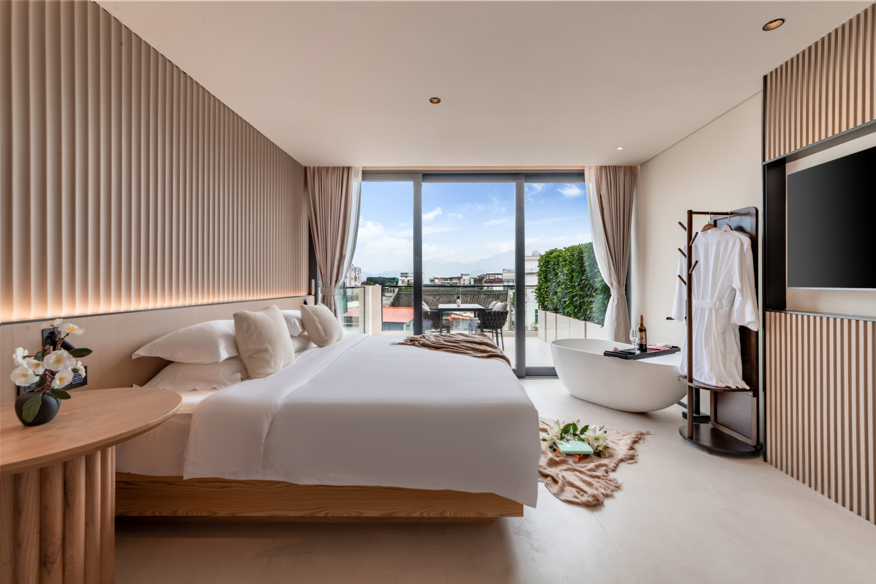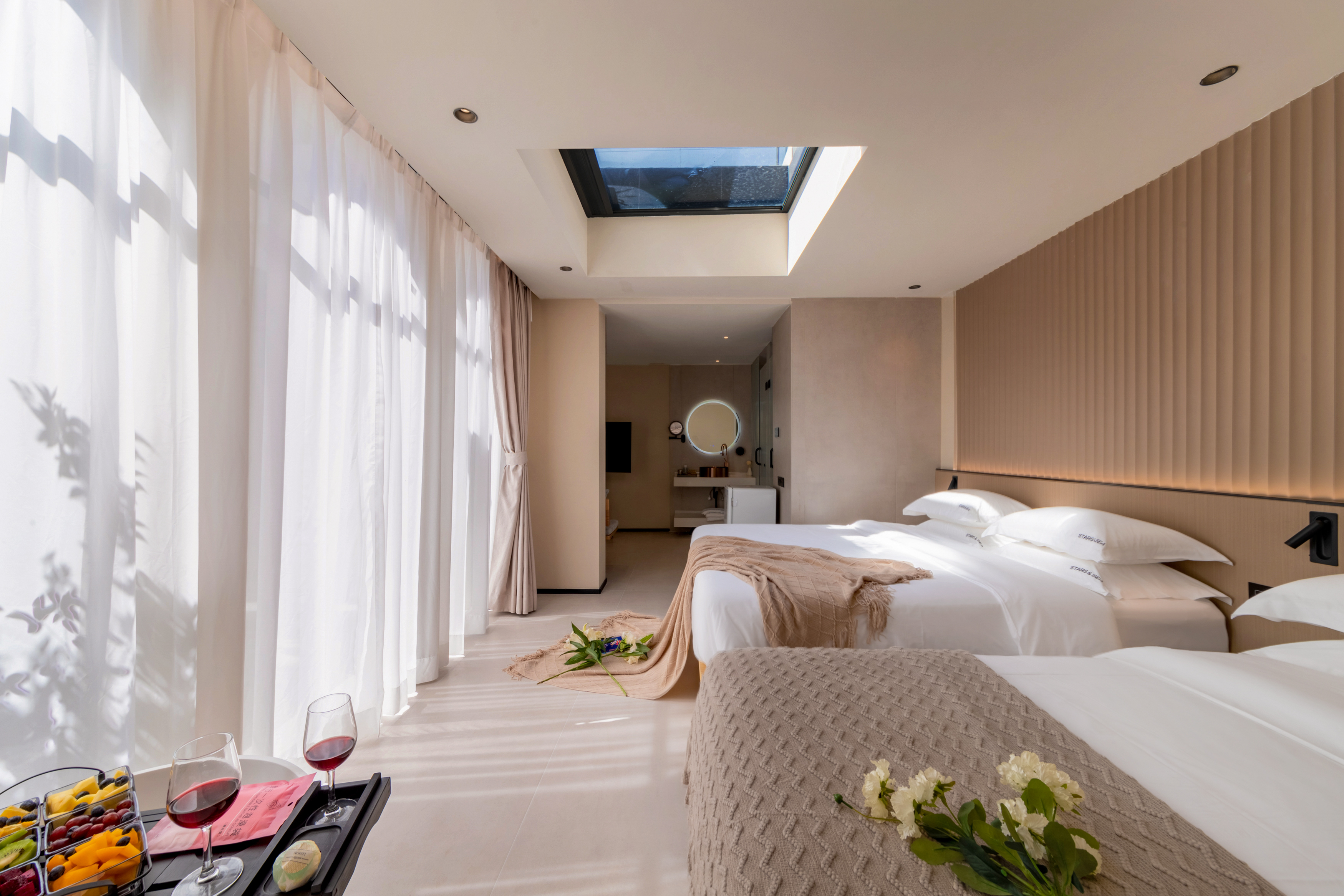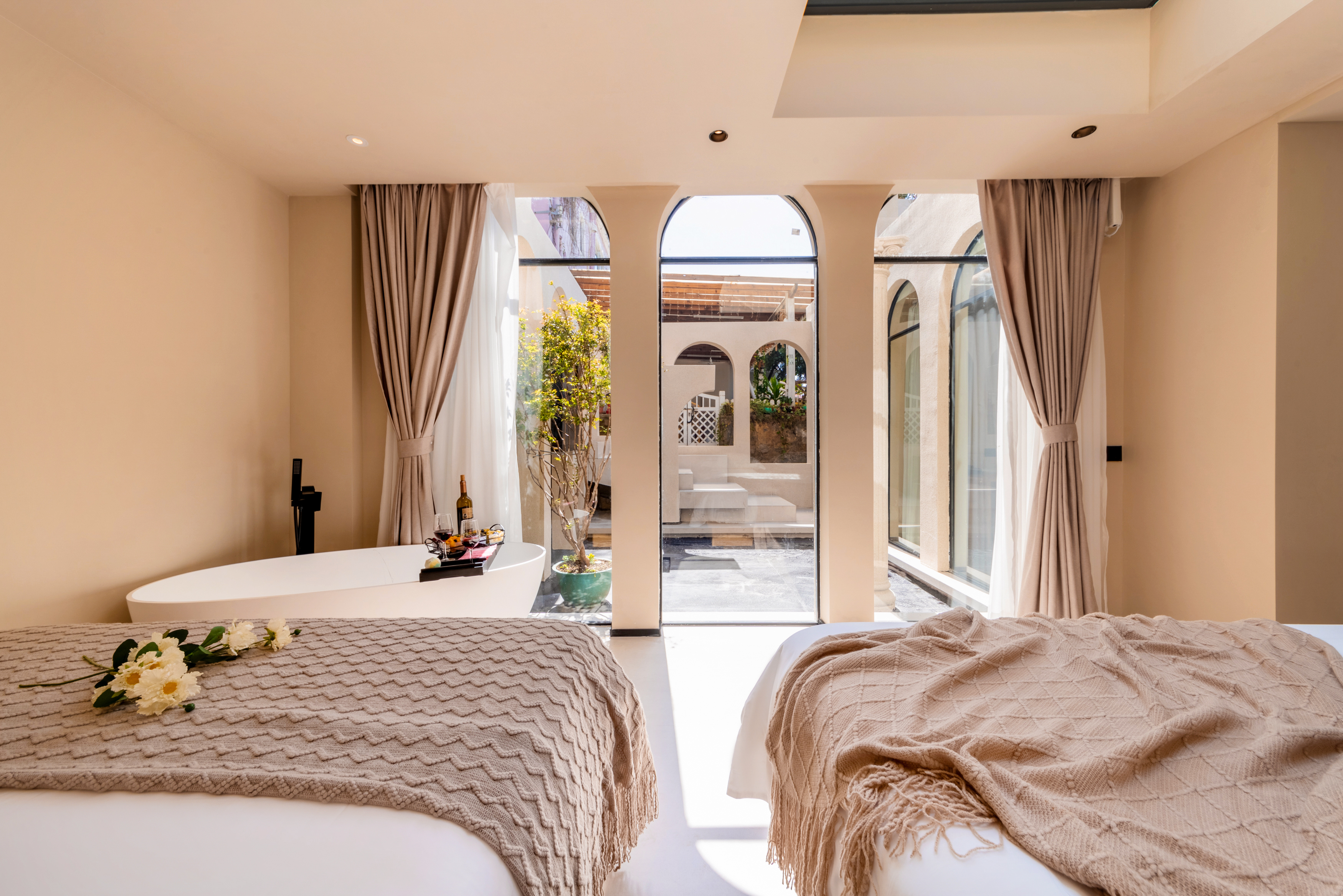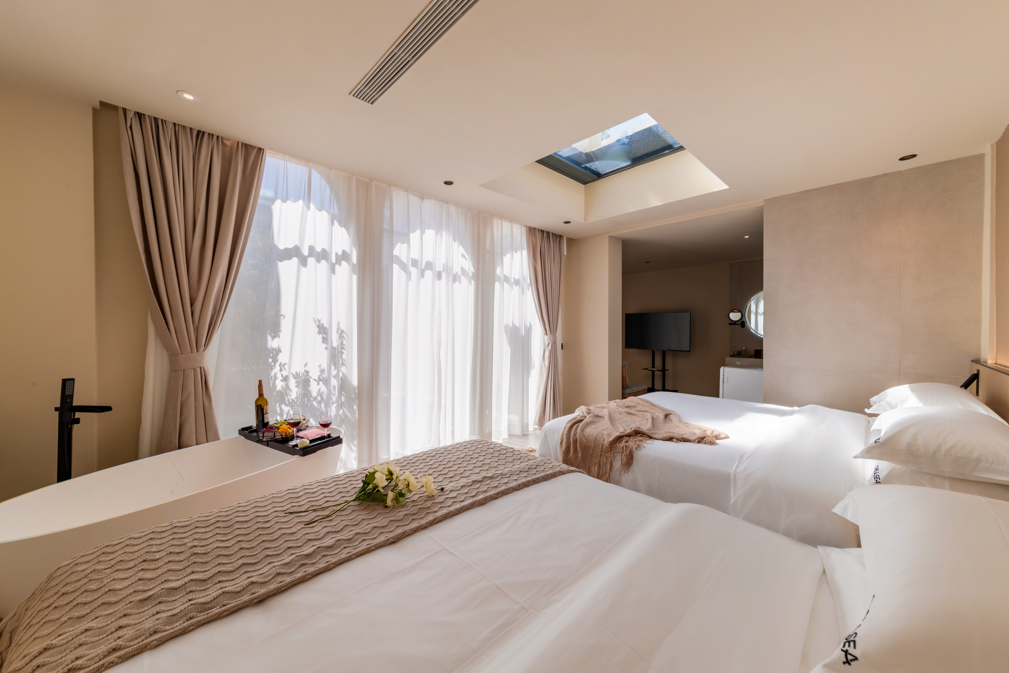 私家庭院浴缸麻将大双床房(侘寂风+小度音响+私享空间