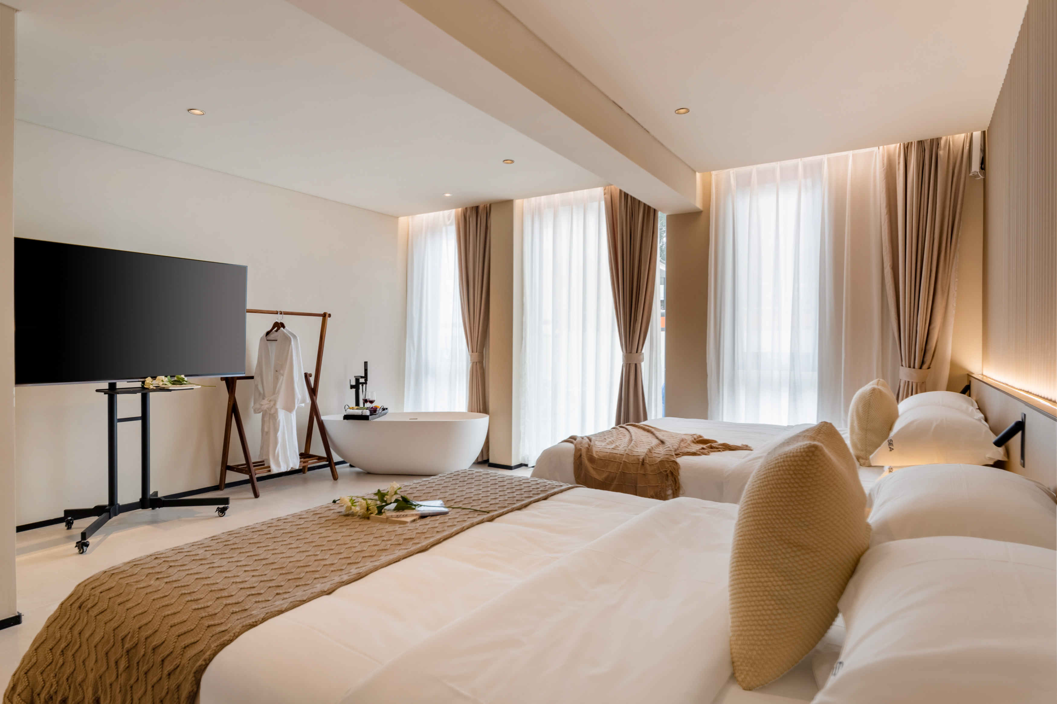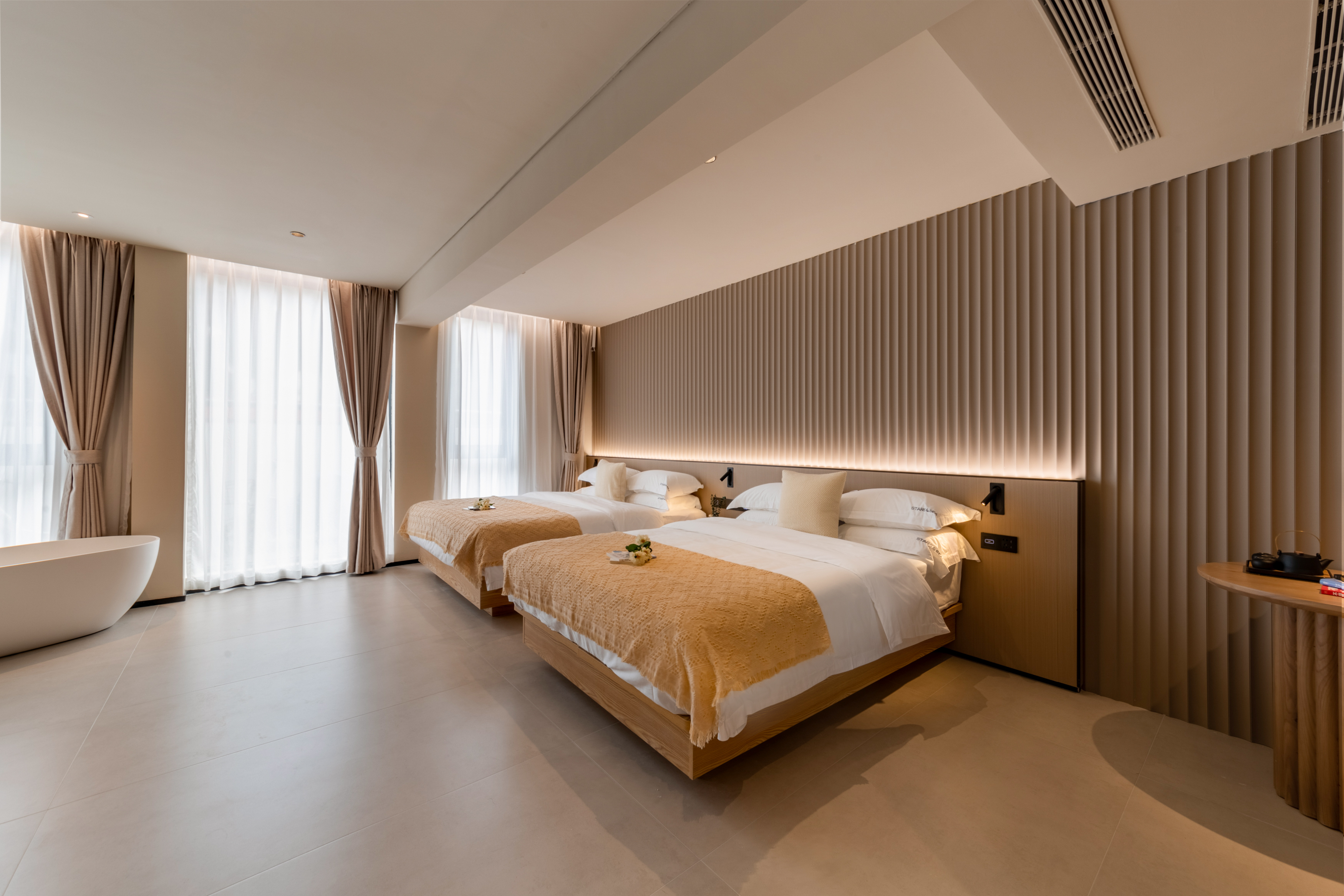 私家庭院浴缸麻将大双床房(侘寂风+小度音响+私享空间