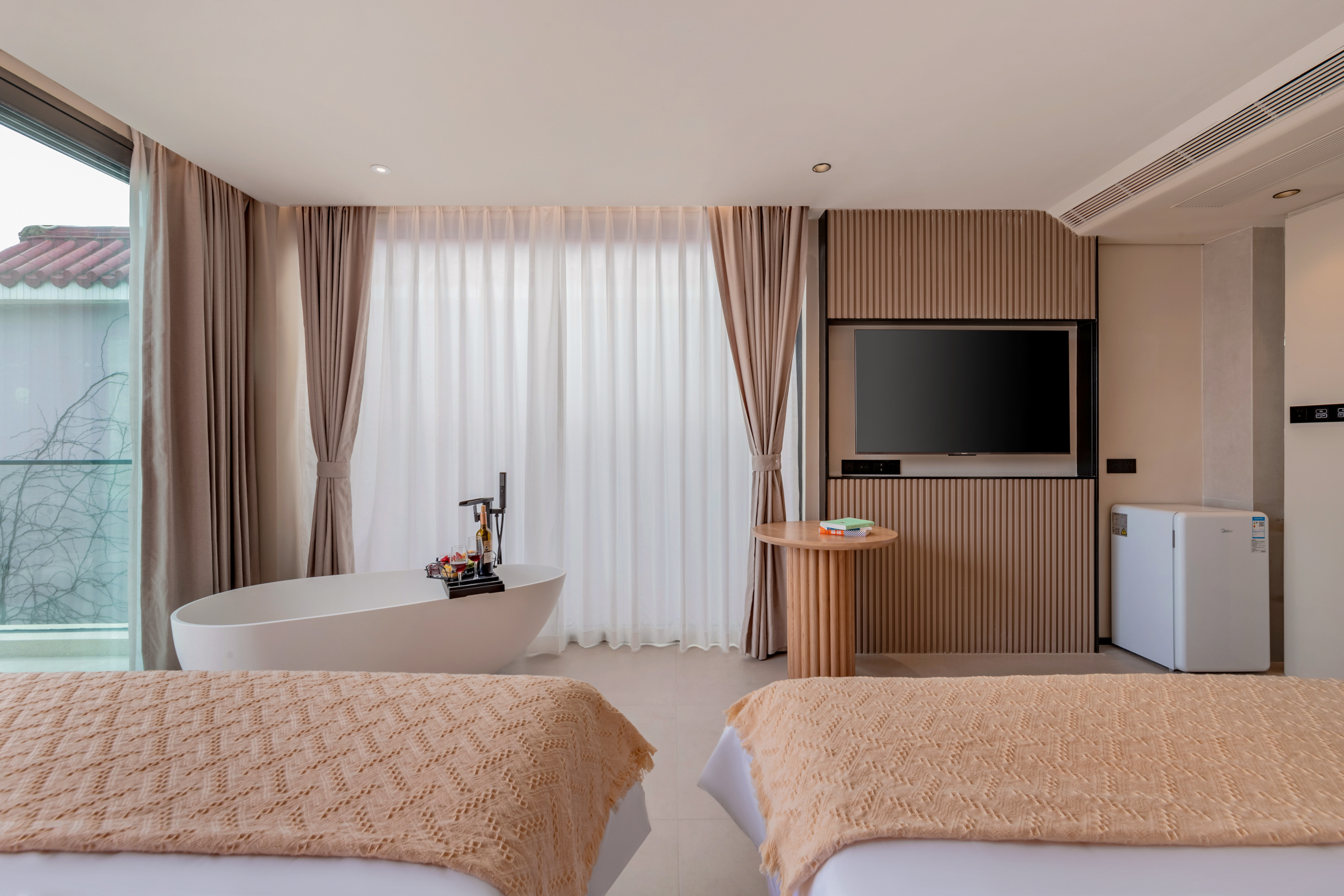 超大露台观景浴缸大双床房(小度音响+烧烤)
